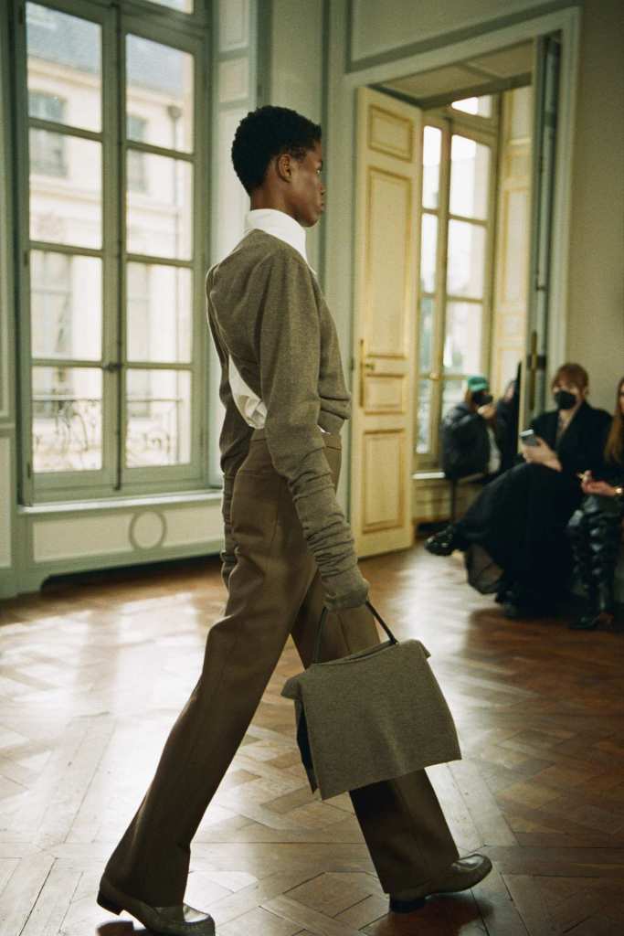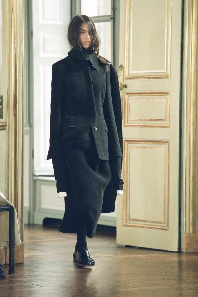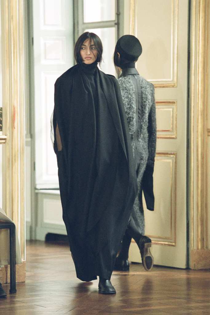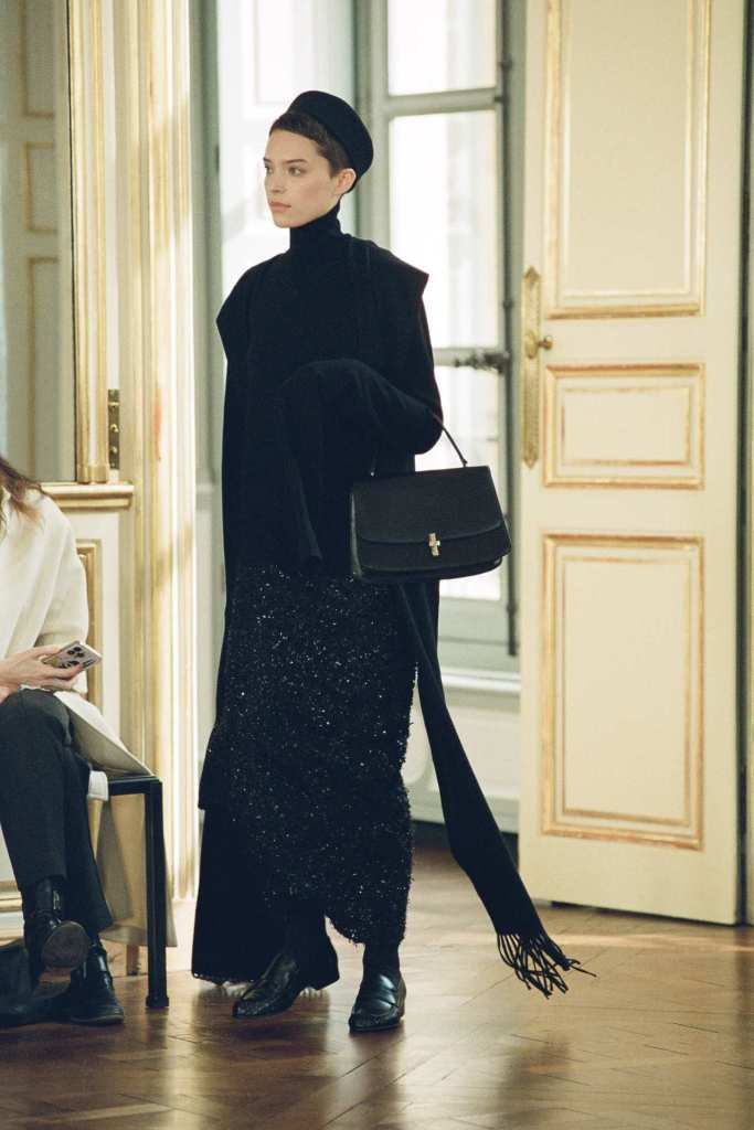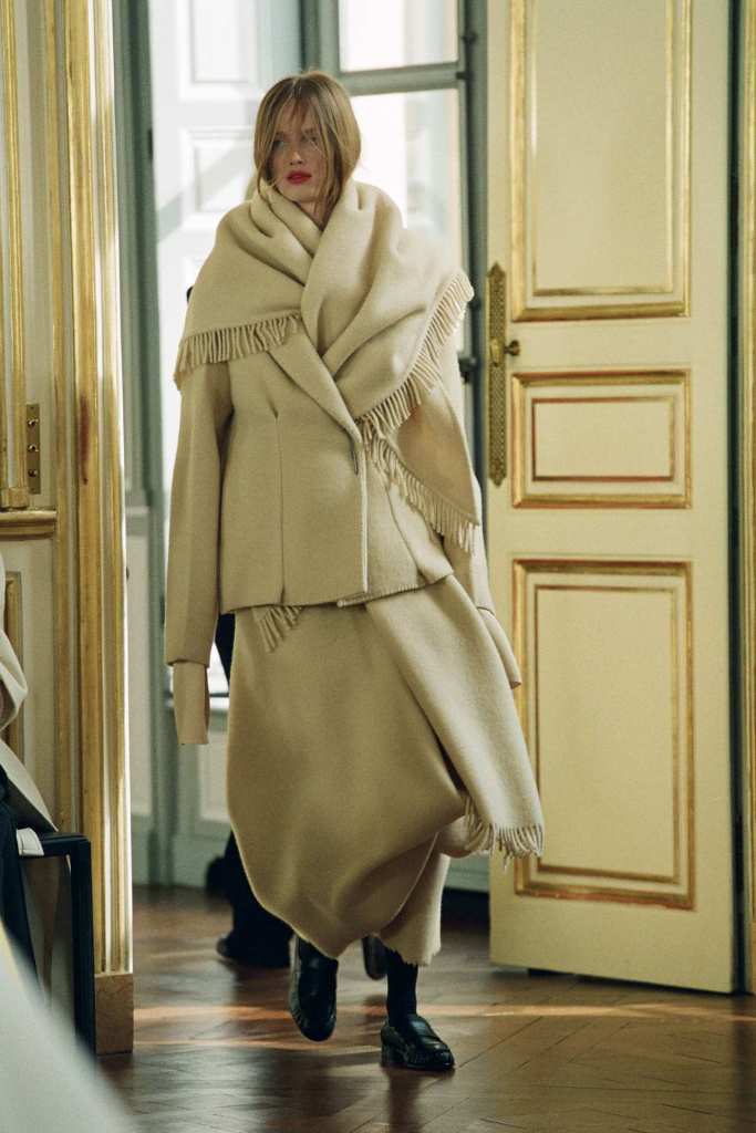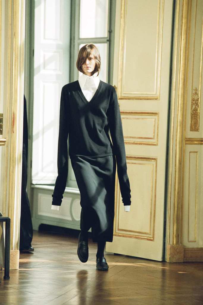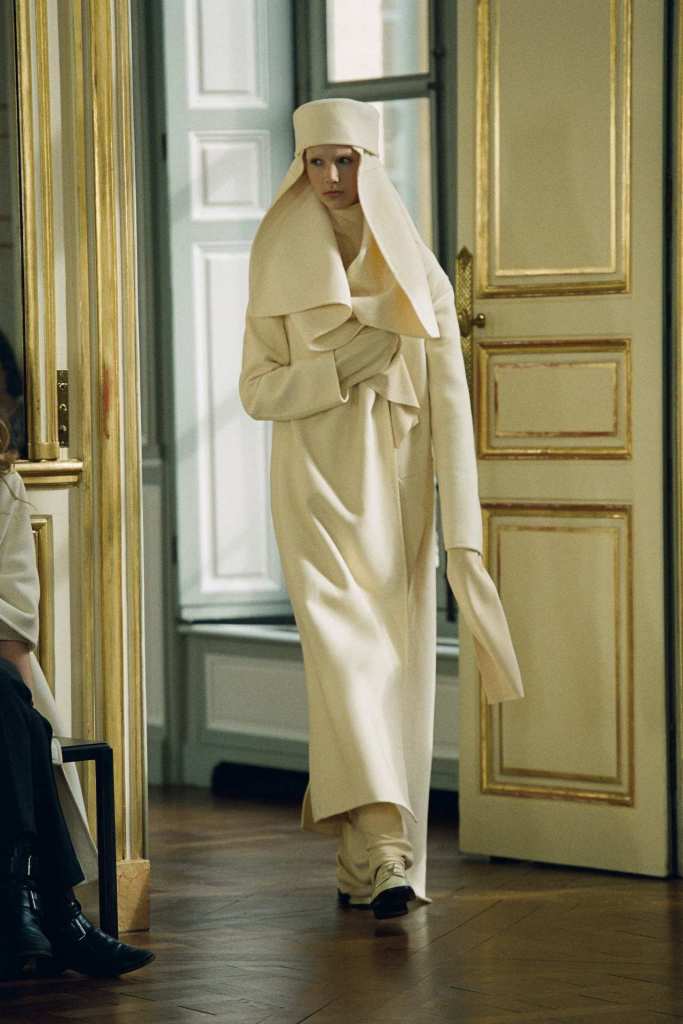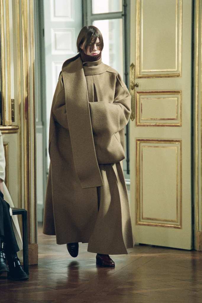 Super long sleeves, dramatic pointy collars, luscious wool, softy tailored knits, strapless gowns and layered trenches were just some moments of note. All in neutrals with immaculate styling this collection has pieces one would cherish for a lifetime. A subtle sense of American comfort & style paired with the chicness of European luxury. Supremely rich fabrics and sophisticated silhouettes bring an avant-garde chic The Row has pioneered. The accessories were timeless leather loafers, statement hats and some very vintage-looking classic bags. A collection defining dramatic minimalism; a testament to the Ashley and Mary-Kate chic aesthetic.