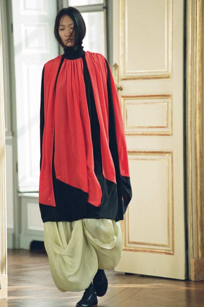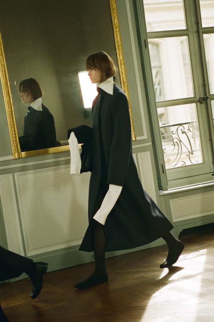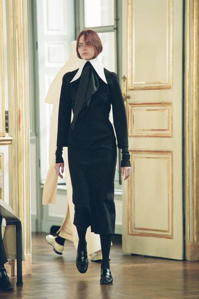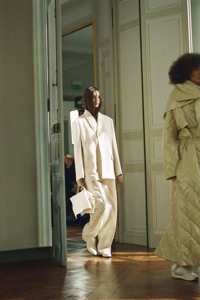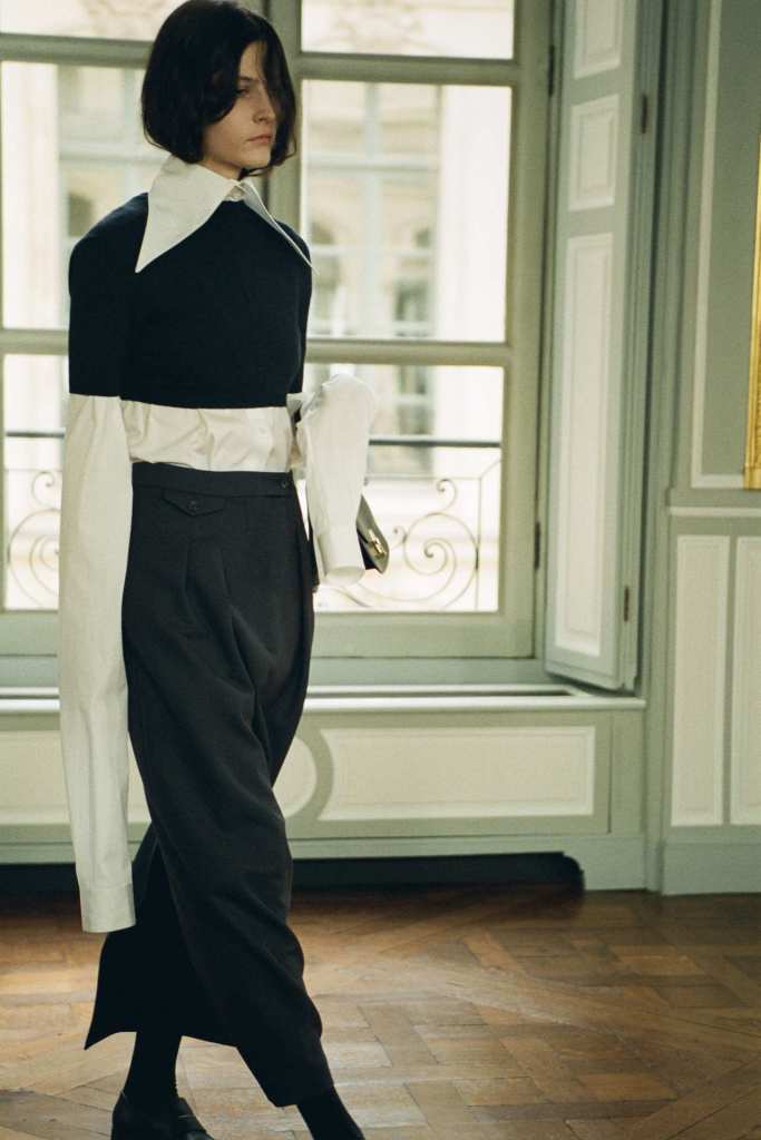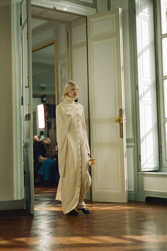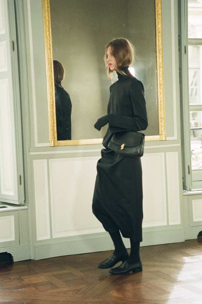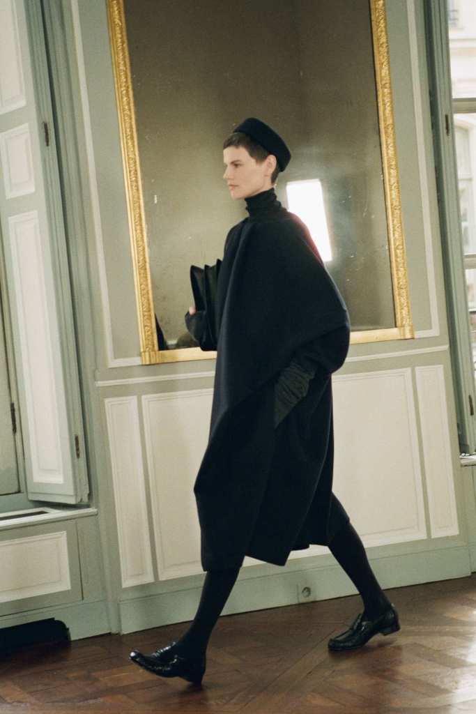 Super long sleeves, dramatic pointy collars, luscious wool, softy tailored knits, strapless gowns and layered trenches were just some moments of note. All in neutrals with immaculate styling this collection has pieces one would cherish for a lifetime. A subtle sense of American comfort & style paired with the chicness of European luxury. Supremely rich fabrics and sophisticated silhouettes bring an avant-garde chic The Row has pioneered. The accessories were timeless leather loafers, statement hats and some very vintage-looking classic bags. A collection defining dramatic minimalism; a testament to the Ashley and Mary-Kate chic aesthetic.