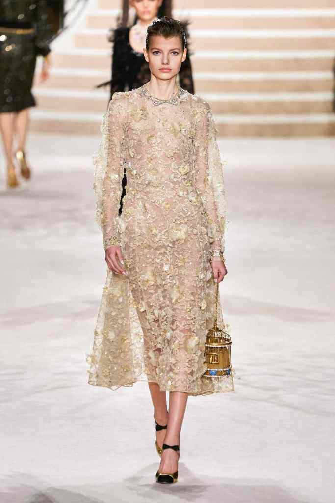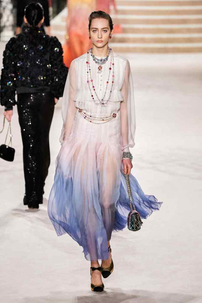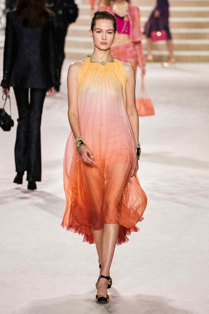 When I saw this collection Virginie was new to Chanel, this collection gave me hope that I carried on for seasons. I saw a glimmer of potential and newness here; that has been positively lost in every other lineup to this day. Viard is clearly focused on more timeless and wearable clothes but I do miss Karl’s lavish Chanel. Clothes reflected the unmatched mastery of the Chanel artists. Ombre chiffon dresses, all-white satin outfits, wide cut pants were some standout items in this collection. Interesting takes on the Chanel suits ranged from color-blocked to sheer gold to tie-dye. There is a satisfying amount of gold, lace & pearls. Every collection post this one has been simply forgettable and disappointing. Well, at least we got one decent collection from Virginie Viard.