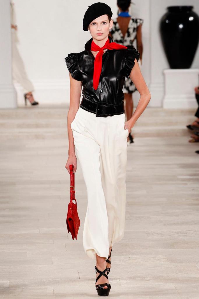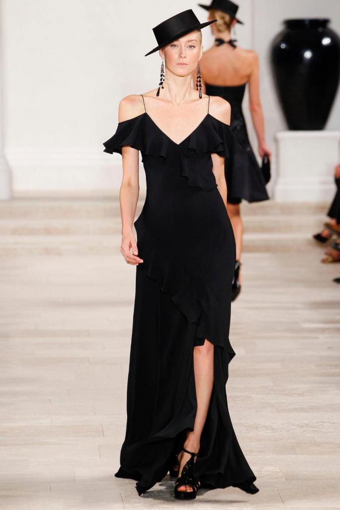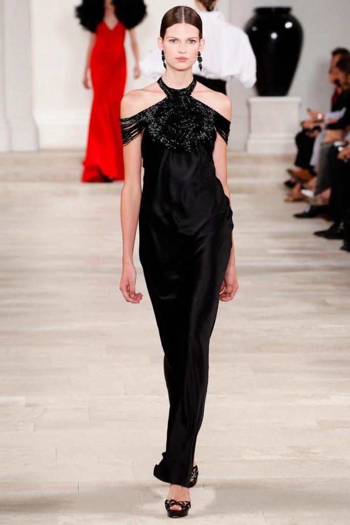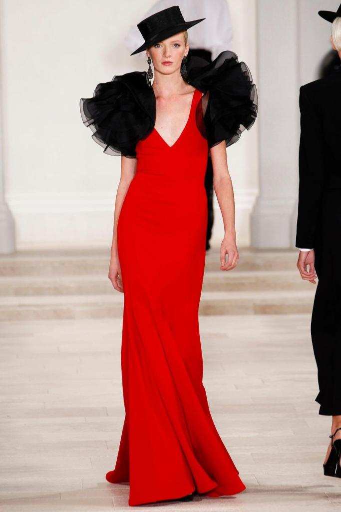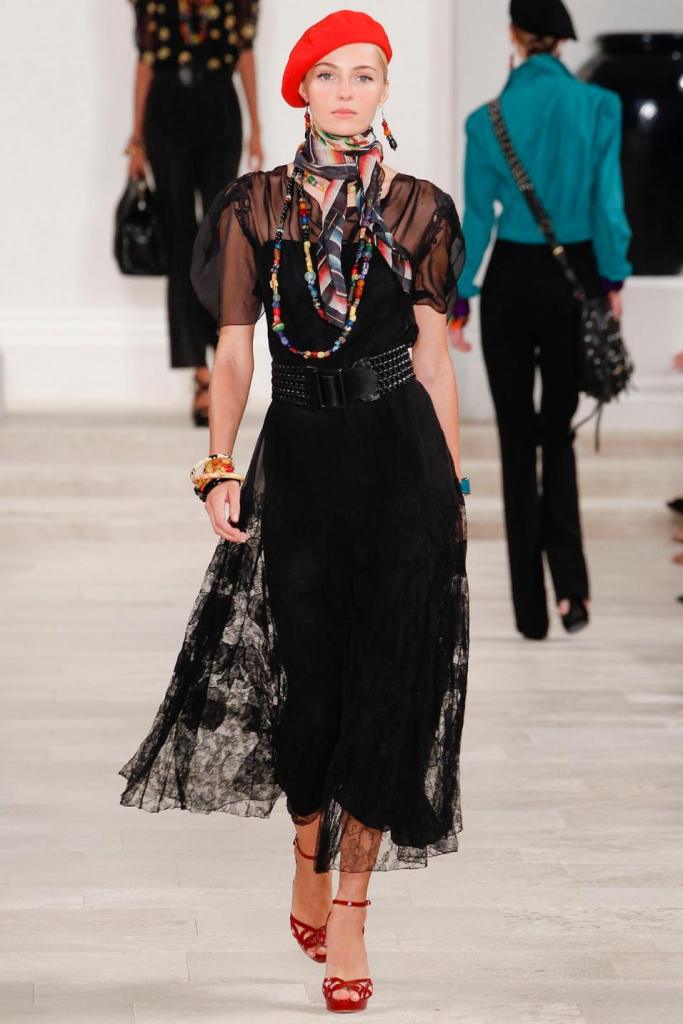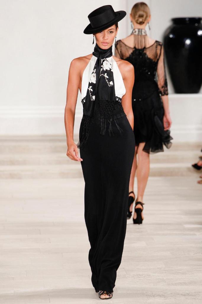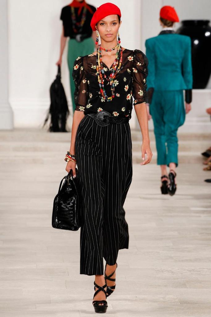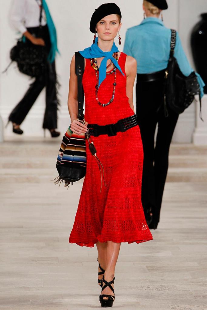 Rich references were taken from Latin America and Spain in this Ralph Lauren collection. Exquisite shades of red and turquoise complimented the classic black & white brought to life through relaxed tailoring. Crochet, embroidery, ruffles, beading, fringe and leather details made special appearances. Palazzo pants, ruffled tops, bolero jackets, vibrant dresses and floral maxis were some standouts here. Gorgeous Gorgeous slinky gowns ended the collection; models glided down the runway draped in classic American beauty.