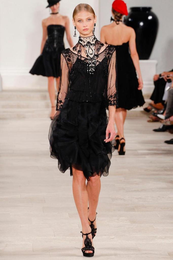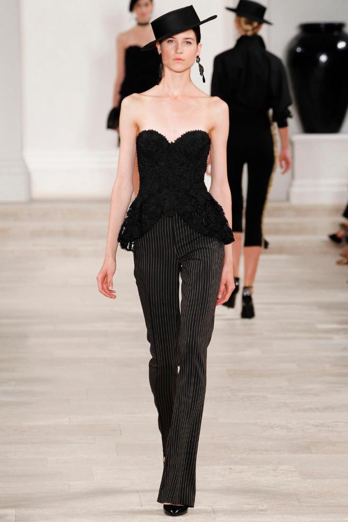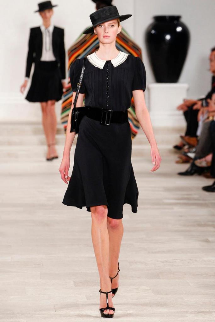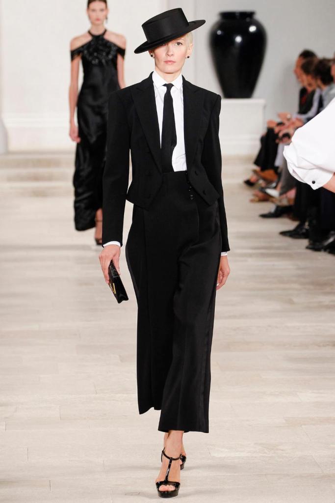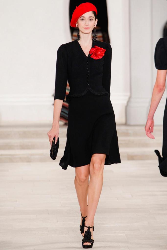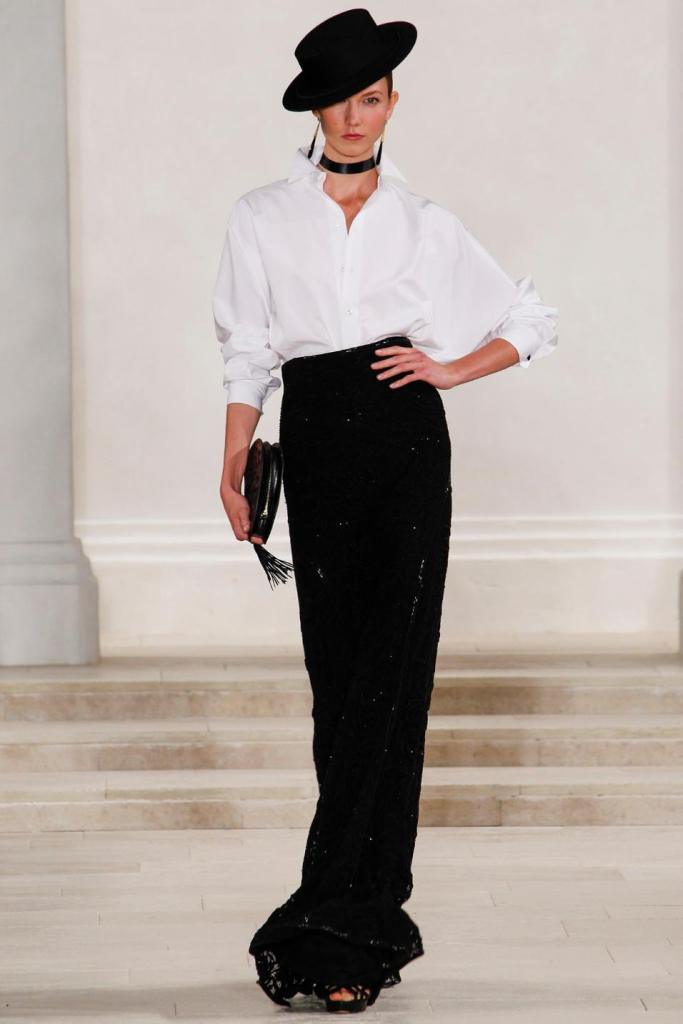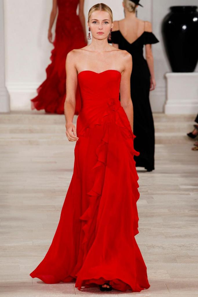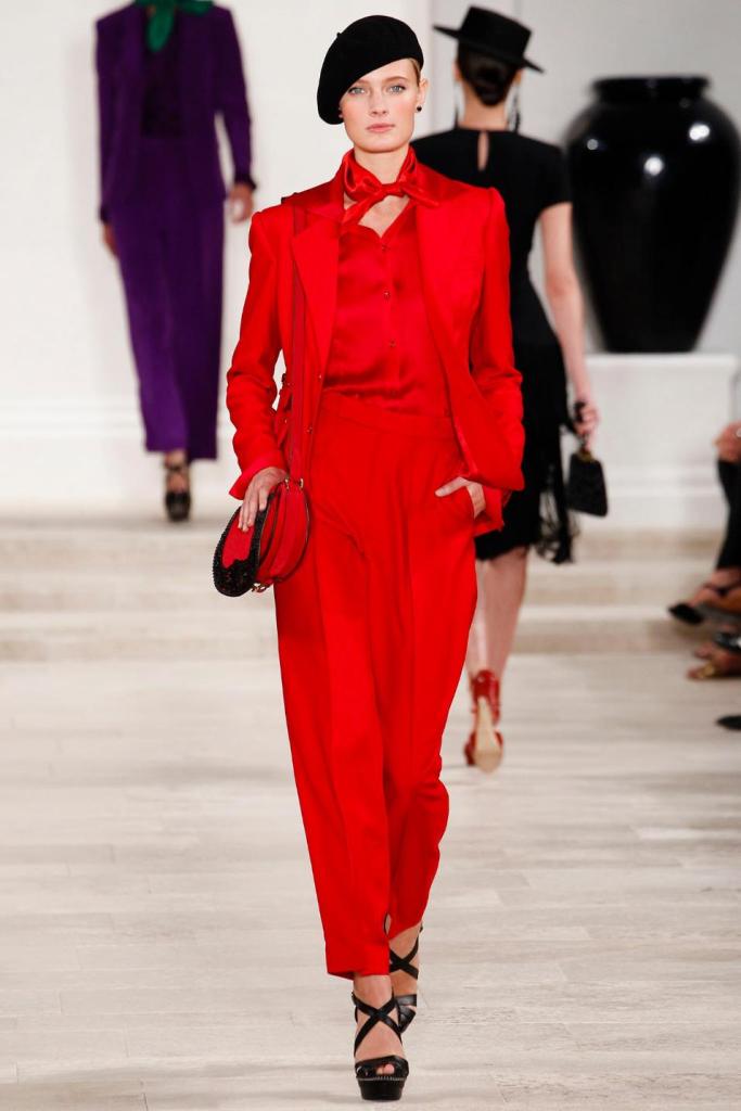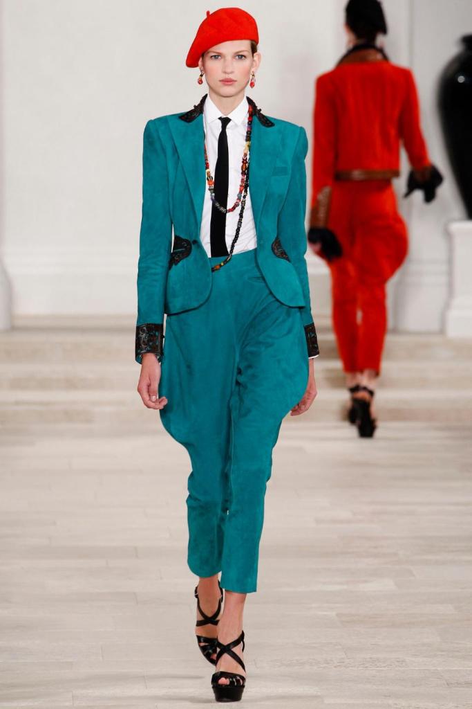 Rich references were taken from Latin America and Spain in this Ralph Lauren collection. Exquisite shades of red and turquoise complimented the classic black & white brought to life through relaxed tailoring. Crochet, embroidery, ruffles, beading, fringe and leather details made special appearances. Palazzo pants, ruffled tops, bolero jackets, vibrant dresses and floral maxis were some standouts here. Gorgeous Gorgeous slinky gowns ended the collection; models glided down the runway draped in classic American beauty.