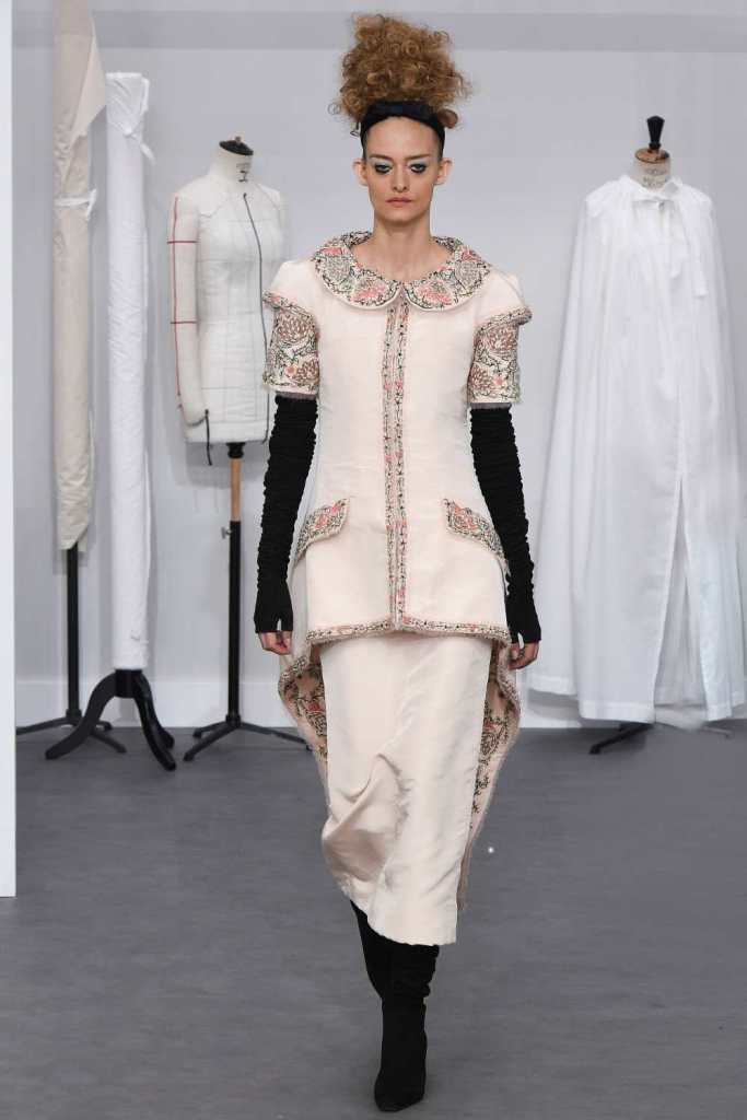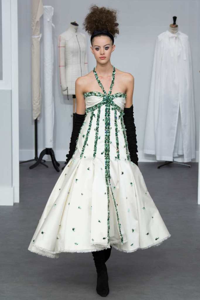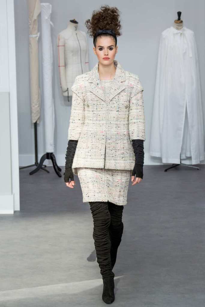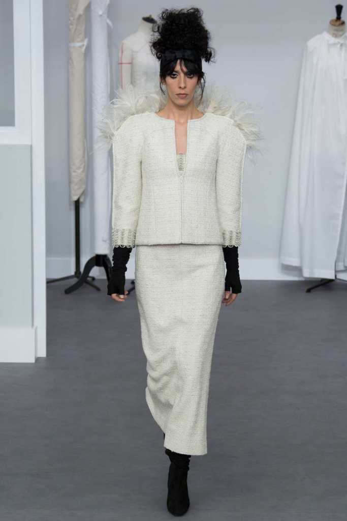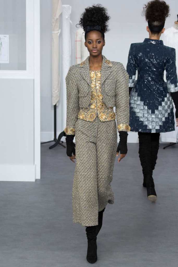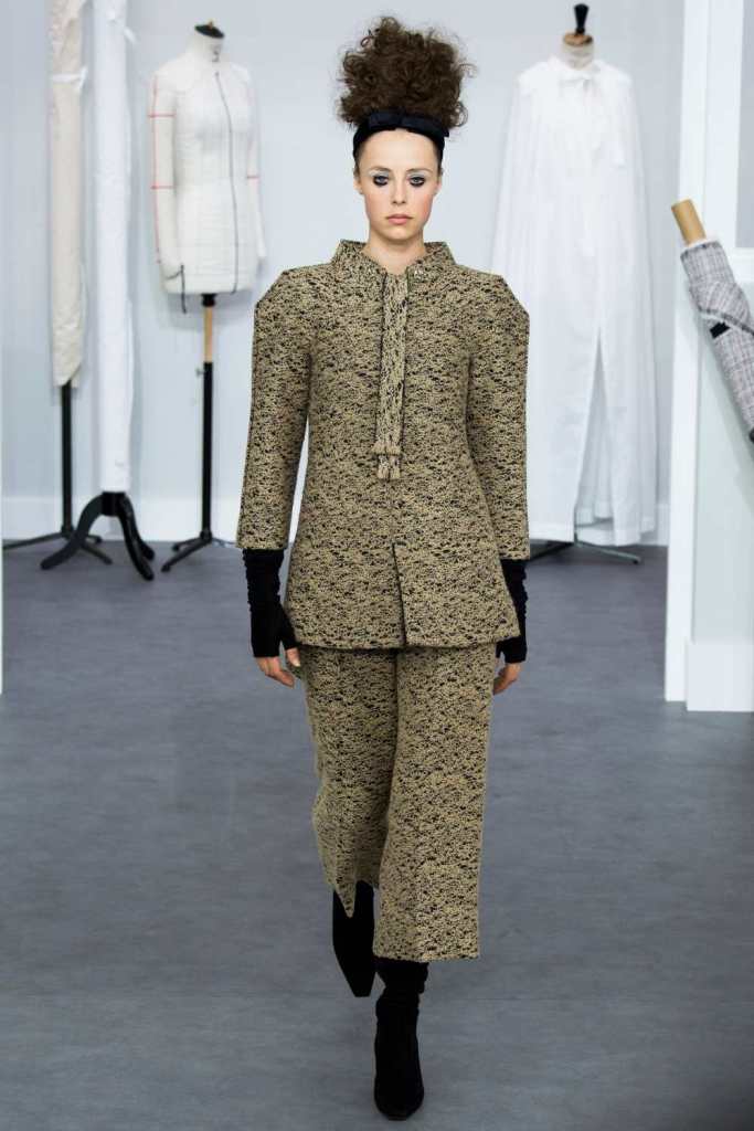 Three keywords in this collection – Silhouette, Texture and Tailoring. All three the crown jeweled skills of the hands behind Haute Couture. Chanel pays a tribute to it’s atelier and craftsmanship. In the Grand Palais, the set was the workshops with 78 artisans working in full swing. An intimate insight into the Chanel mystique.