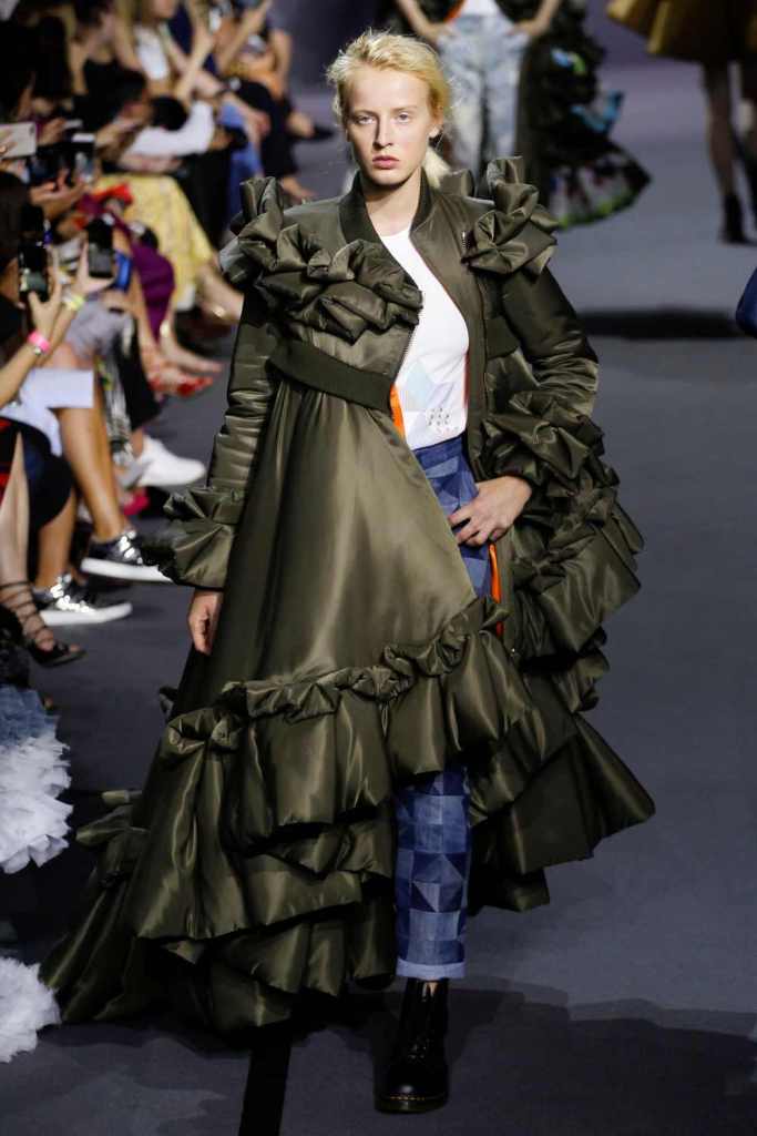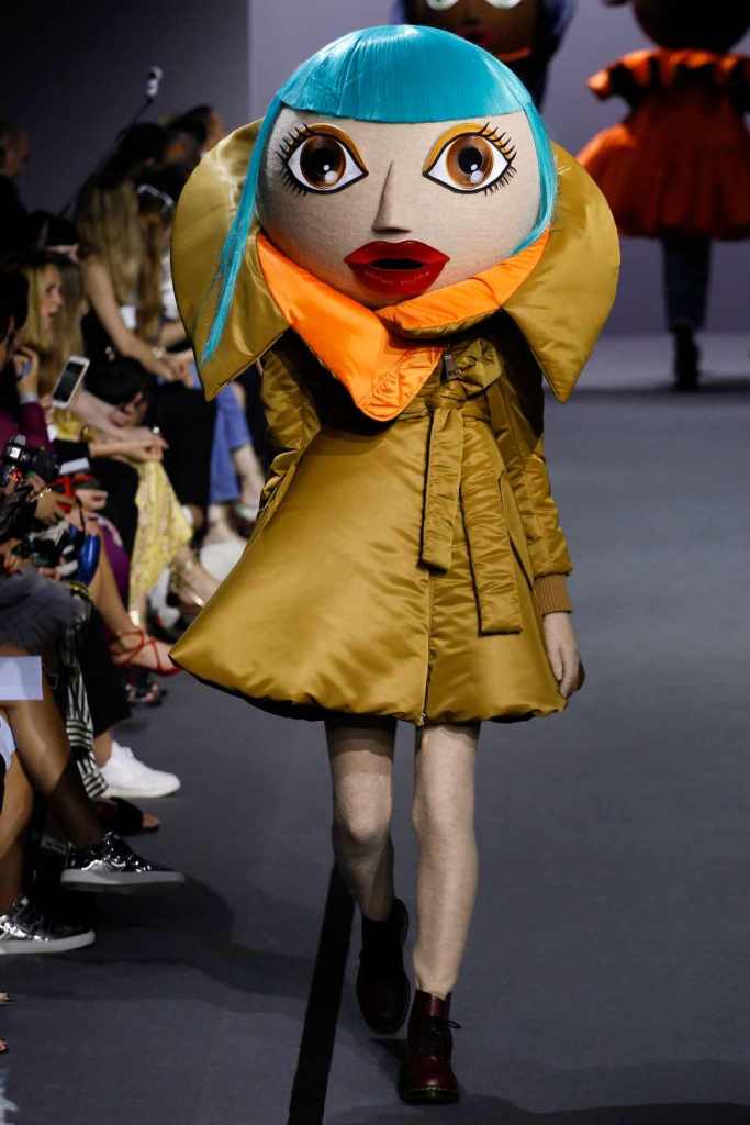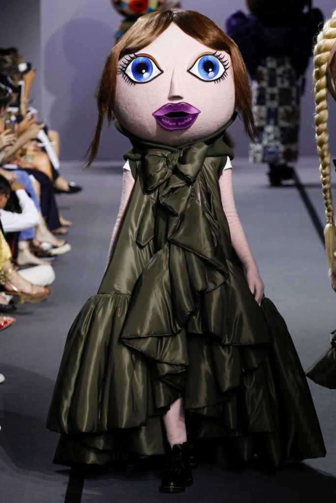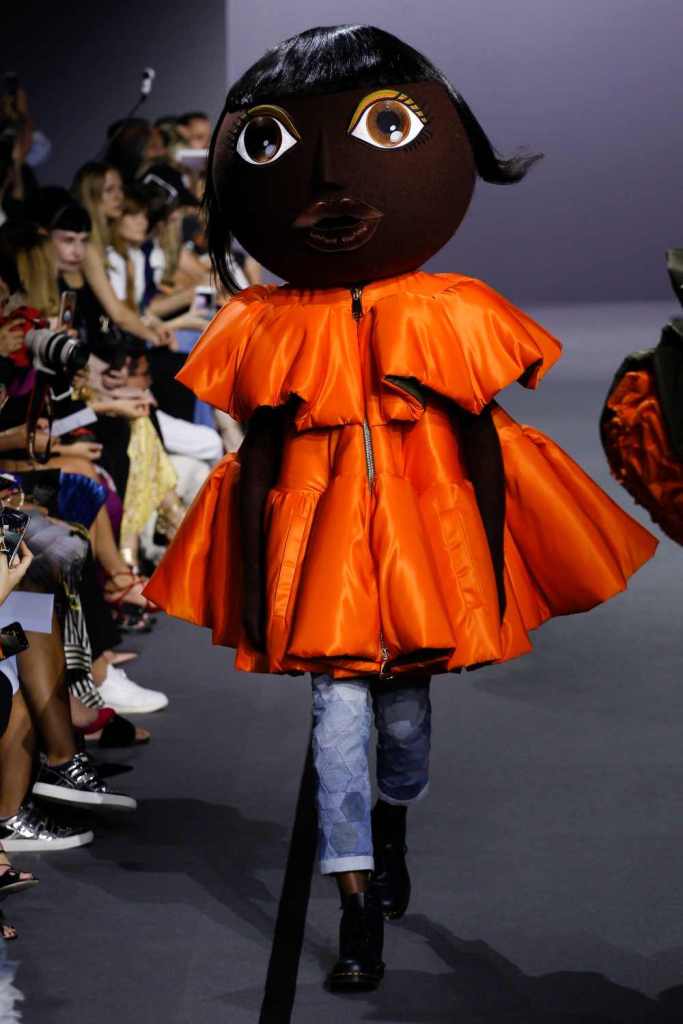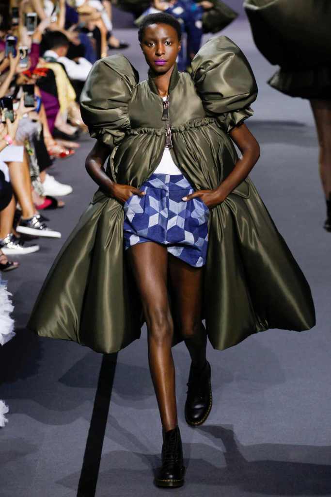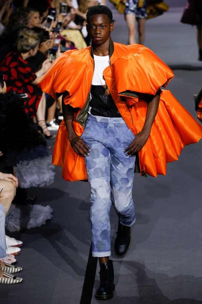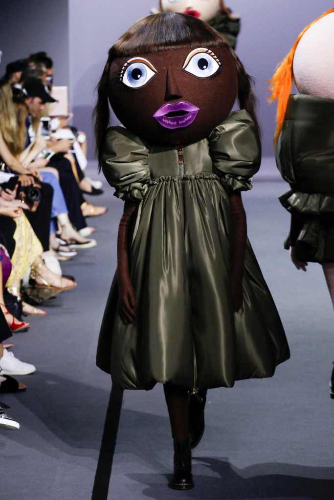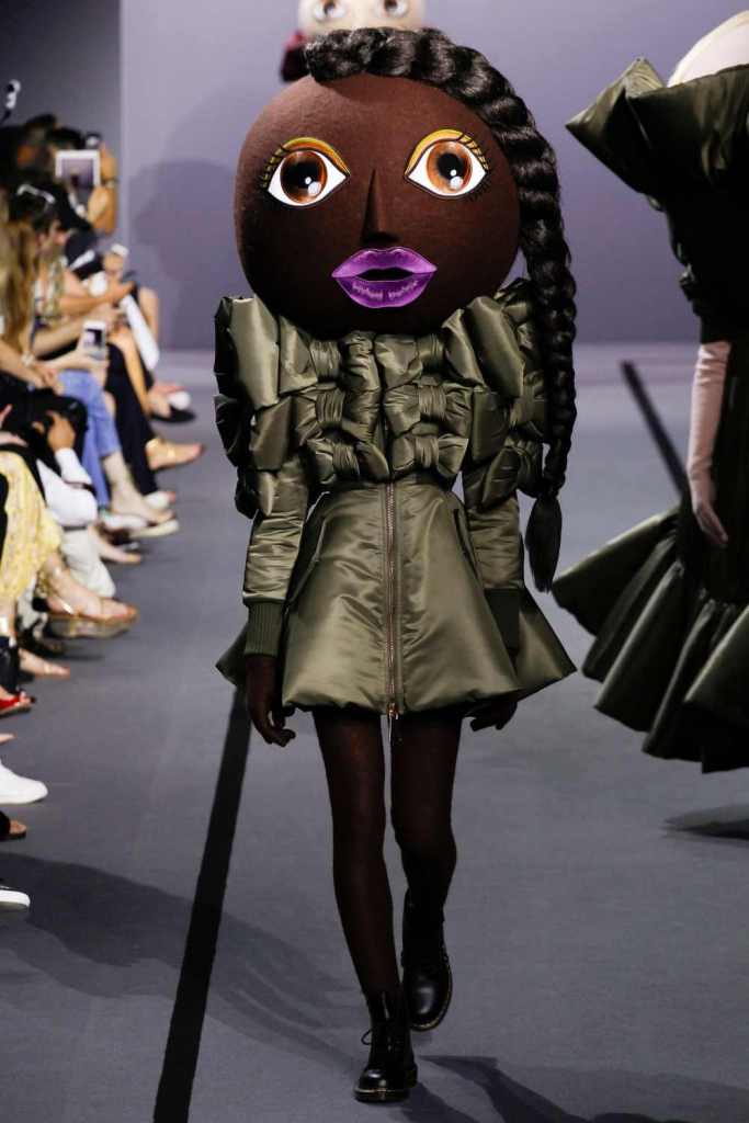 Viktor & Rolf, known for their extreme, whimsy, avant-grade designs put their clothes on life-size dolls for the first half of the collection. Their power is that they don’t take themselves too seriously. Almost creepy, very cute this collection can incite nightmares in people but only dreams in V&R stans. Original contemporary silhouettes with a sporty edge lead this collection. Geometric patchwork denim adds on to the distressed apocalyptic energy. Mostly made in khaki and olive and pops of orange the collection featured. Jackets ranged from bombers to capes; all with delicate additions of ruffles, bows and puffed sleeves. This collection could be a masterclass in Parka Couture. Oversized collars, asymmetric high-low gowns, rose motifs, colorful patchwork and poofy skater skirts were some favorites. Floor-sweeping ruffled -padded gowns took over the collection towards the end. Viktor & Rolf rarely disappoint.
