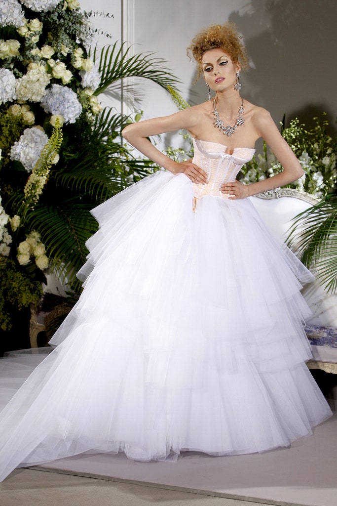 Inspired by the Christian Dior backstage back in the 50s; the clothes were classic in style and brazen in execution. Chic and daring; John Galliano presented us with clothes that make one seem uninhibited all made in vibrant lively colors. From seductresses to brides to barbies the collection presented range at its best. Intimates were reinterpreted as elegant outwear; Statement jackets and crinoline tulle gowns being the highlights. This collection manages to be ‘extra’ even with half-dressed models! Set in the Dior headquarters, this collection had fewer frills than most Galliano shows. The looks were topped off with dramatic hats and loaded with pearls; it was all very 50s and vampy!