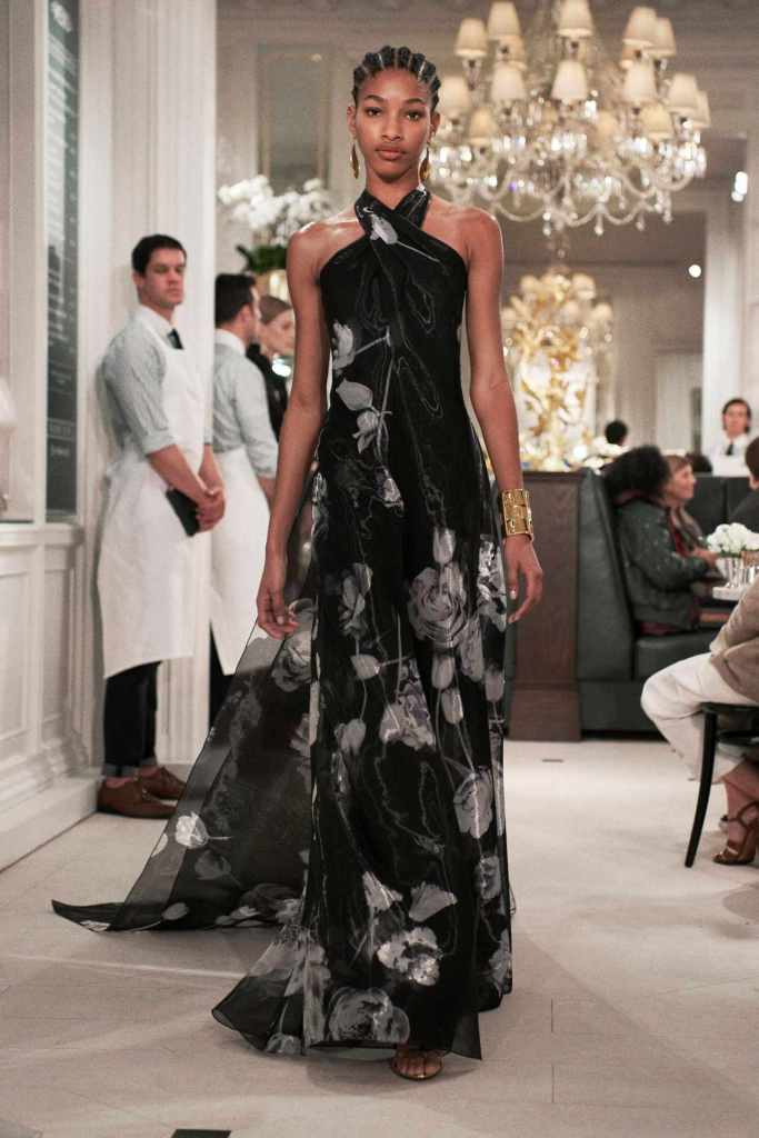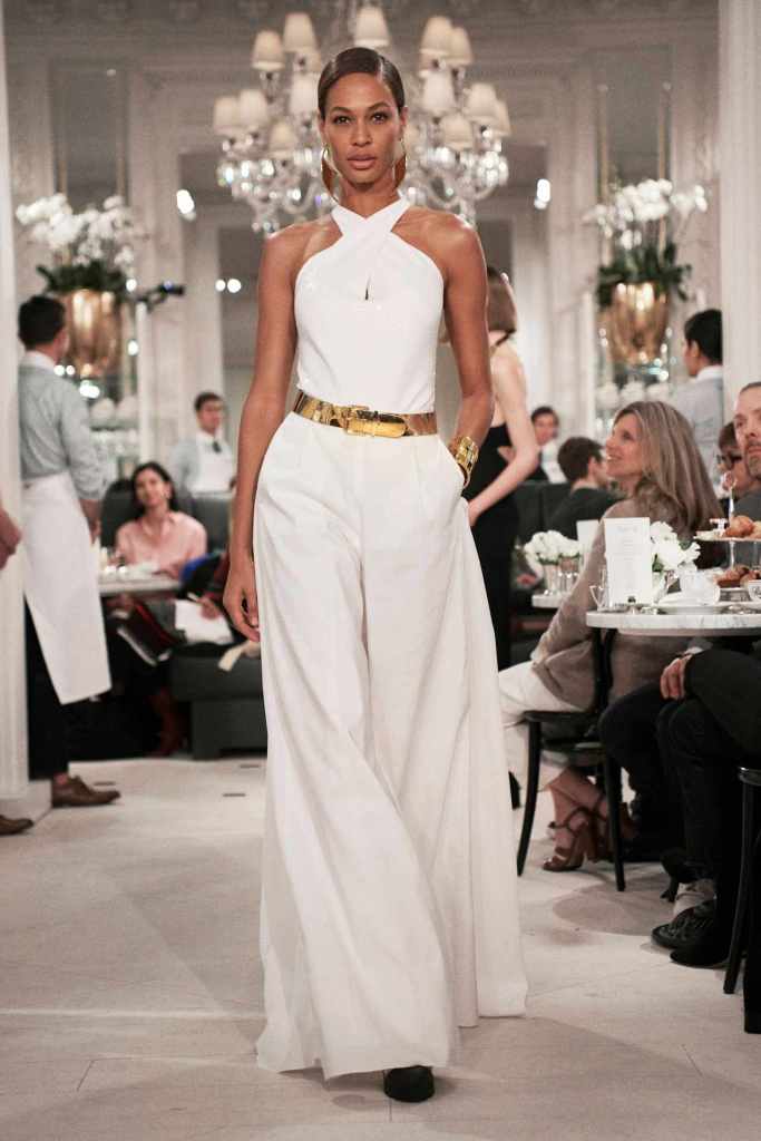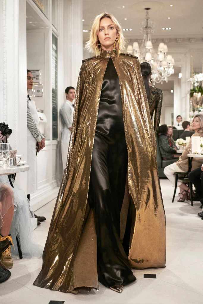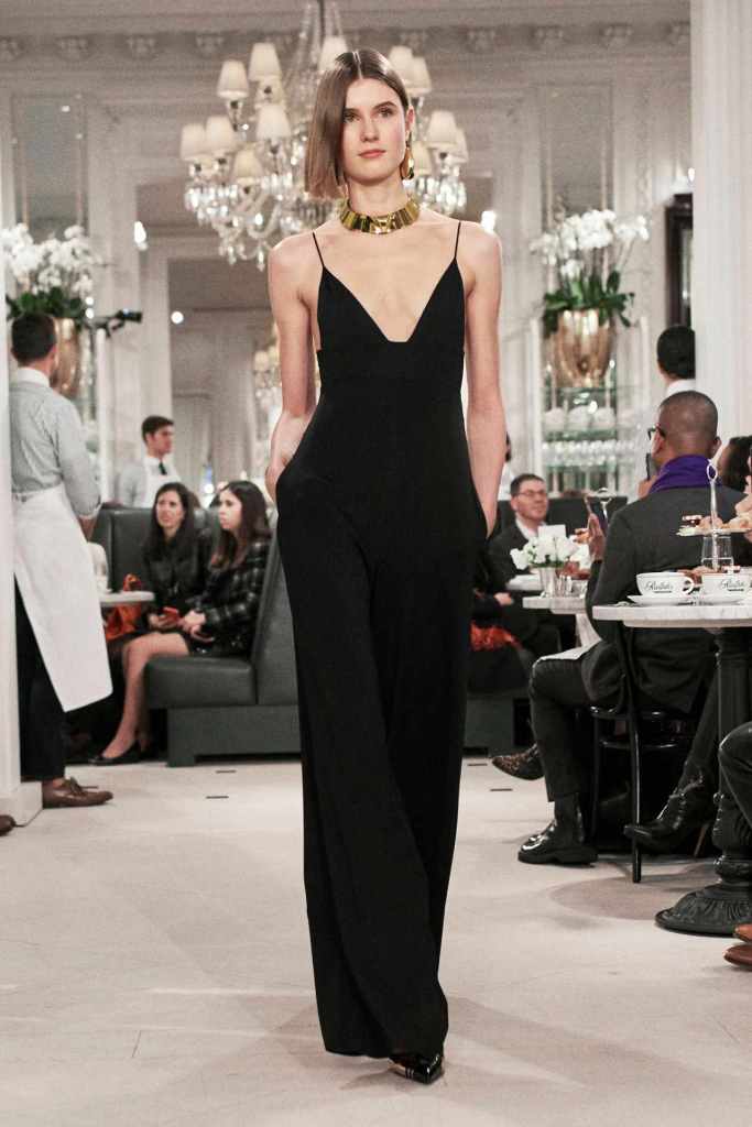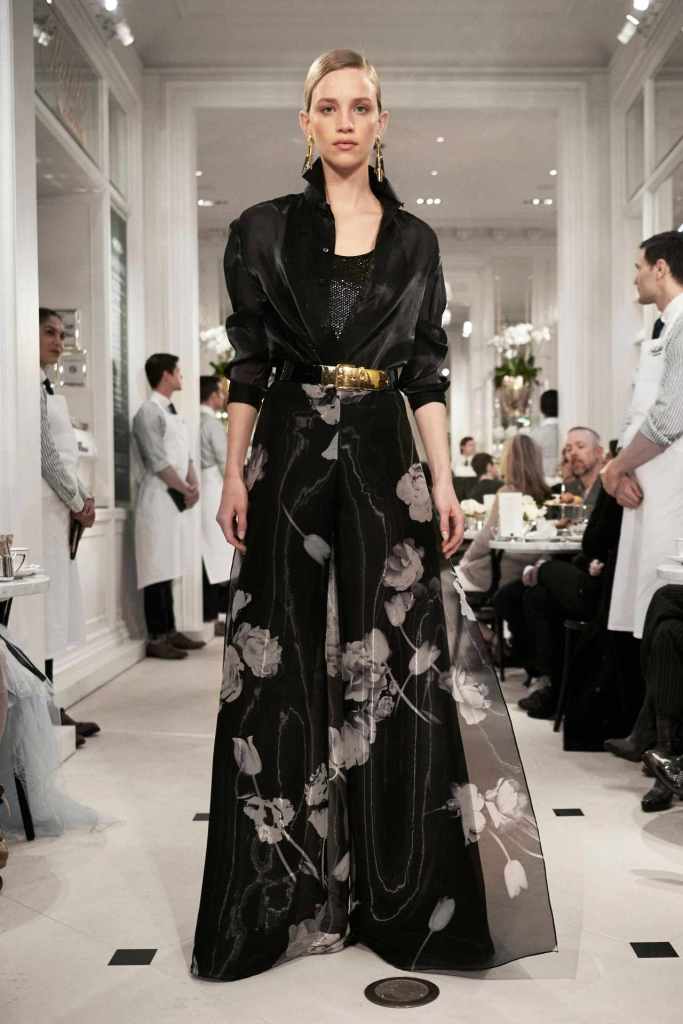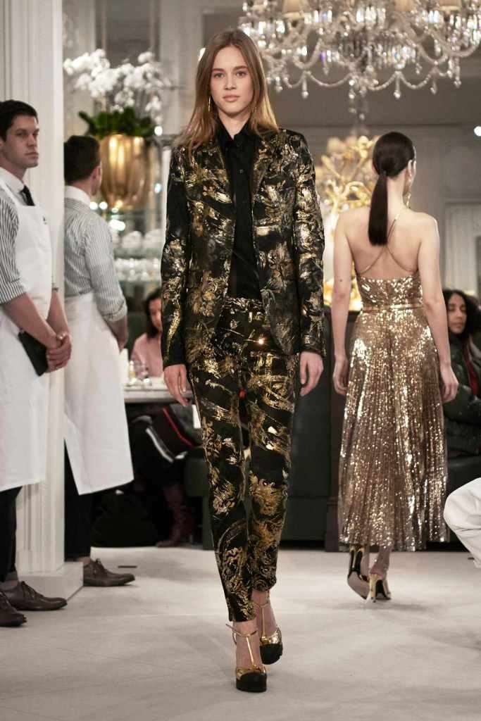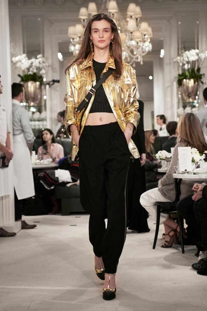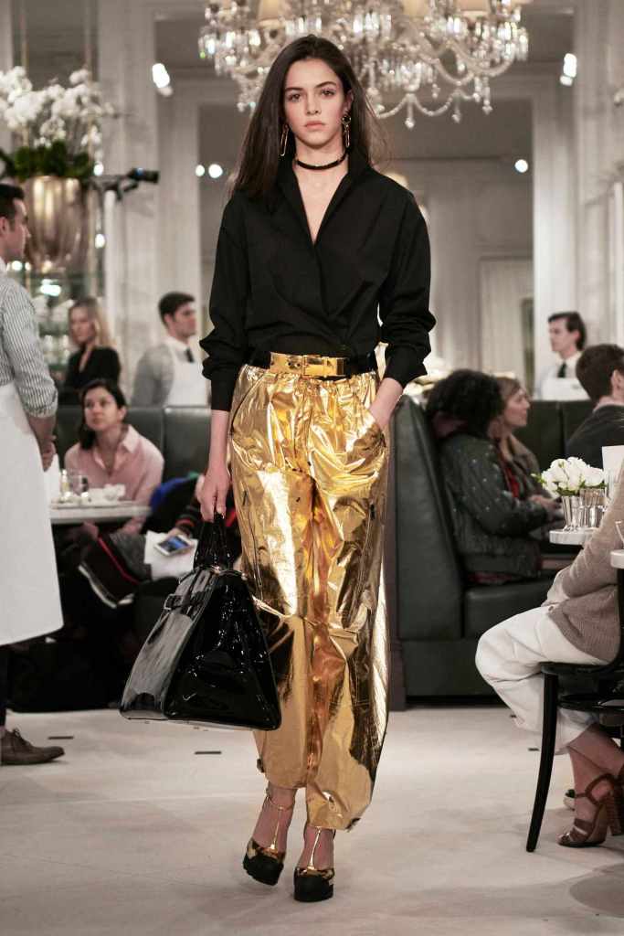 Models glided down the stairs at the Madison Avenue flagship store which was turned into Ralph’s Café where the guests were served an intimate breakfast. The girls walking with some smiles would remind one of the shows back in the 50s. Relaxed classic tailoring was a constant along with soft shapes and feminine silhouettes. This collection was a simple case of Classic Meets Contemporary. Though Ralph Lauren fans will immediately spot the sweet little references. Limited to black, gold and white; this collection reflects unspoken luxury. Mega wide trousers, military-style jackets, clean jumpsuits, sleek red carpet gowns and gold midi dresses were some statement pieces. The Ralph Lauren bar was set high here.