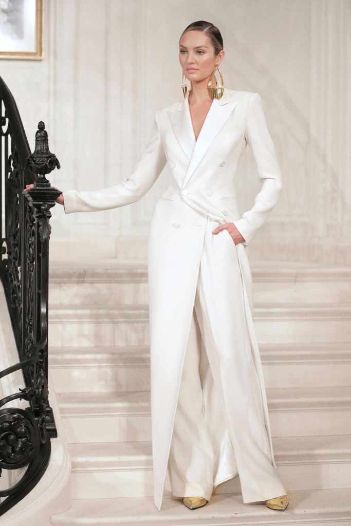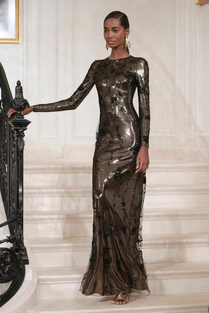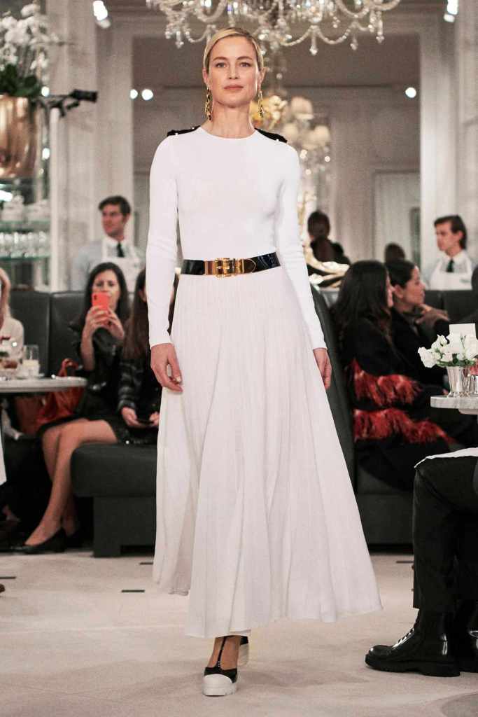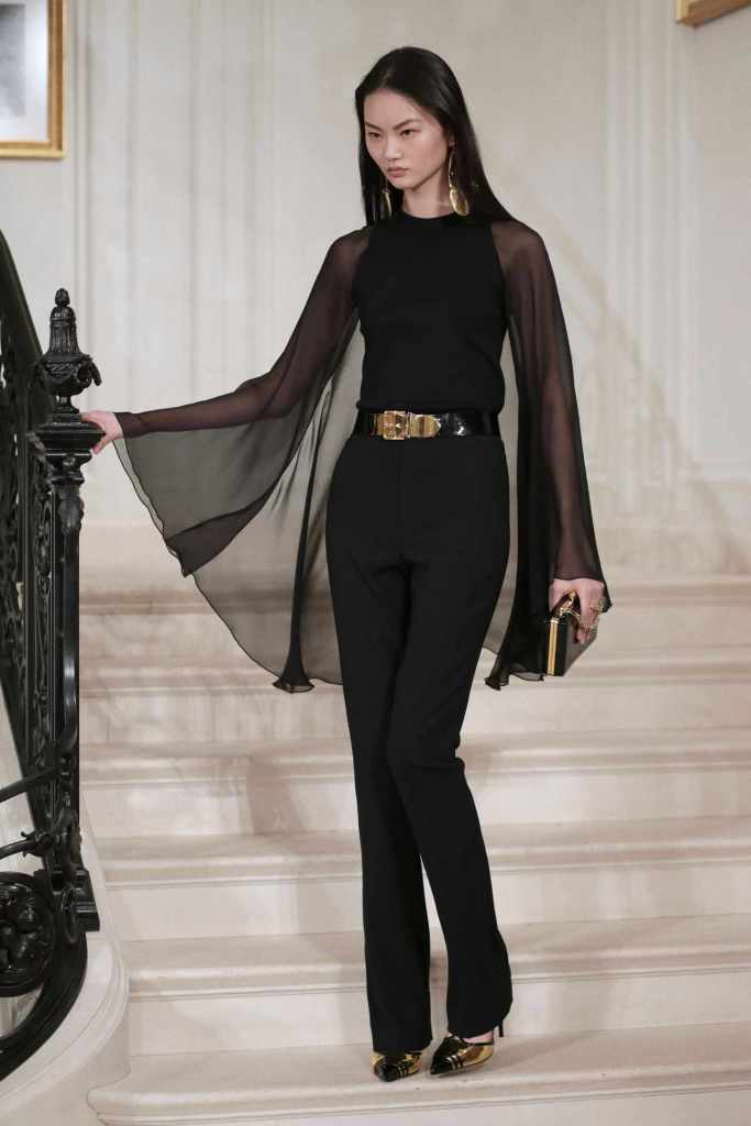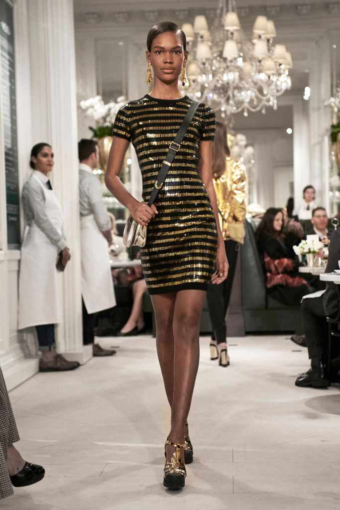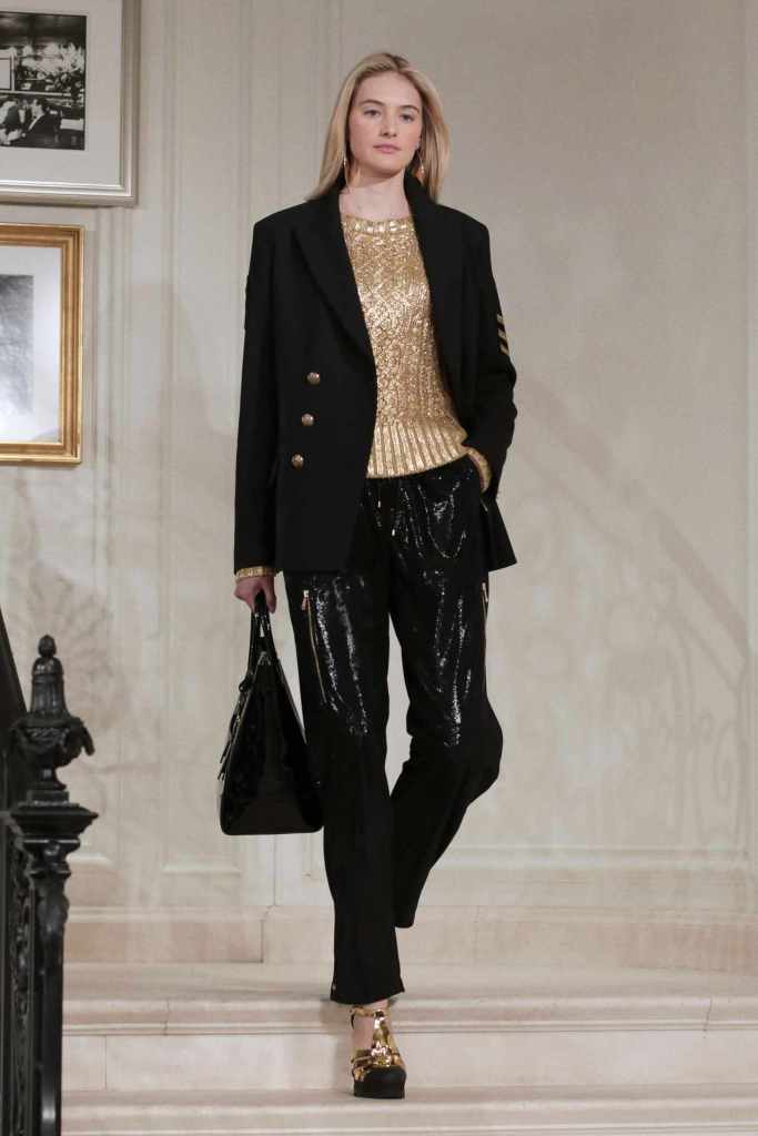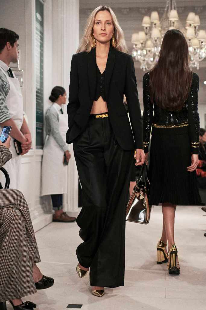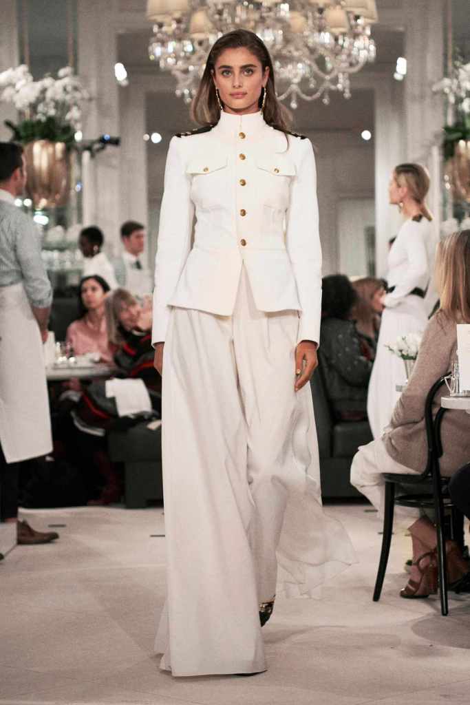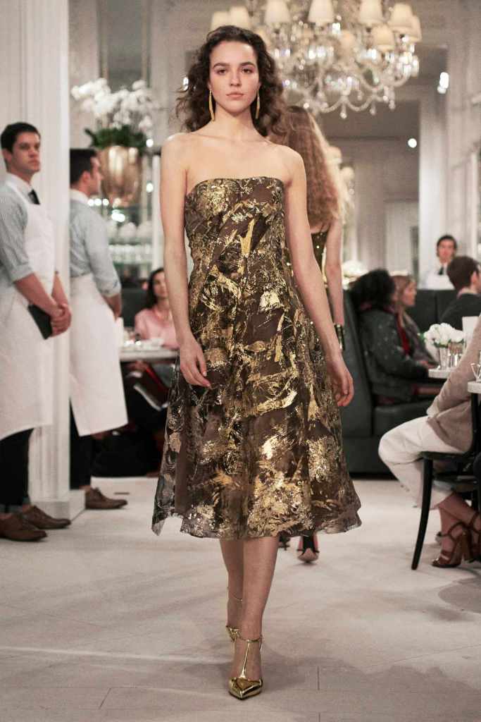 Models glided down the stairs at the Madison Avenue flagship store which was turned into Ralph’s Café where the guests were served an intimate breakfast. The girls walking with some smiles would remind one of the shows back in the 50s. Relaxed classic tailoring was a constant along with soft shapes and feminine silhouettes. This collection was a simple case of Classic Meets Contemporary. Though Ralph Lauren fans will immediately spot the sweet little references. Limited to black, gold and white; this collection reflects unspoken luxury. Mega wide trousers, military-style jackets, clean jumpsuits, sleek red carpet gowns and gold midi dresses were some statement pieces. The Ralph Lauren bar was set high here.