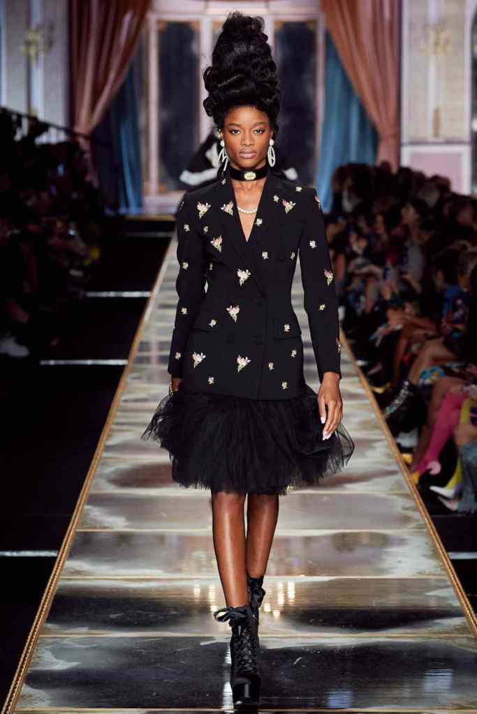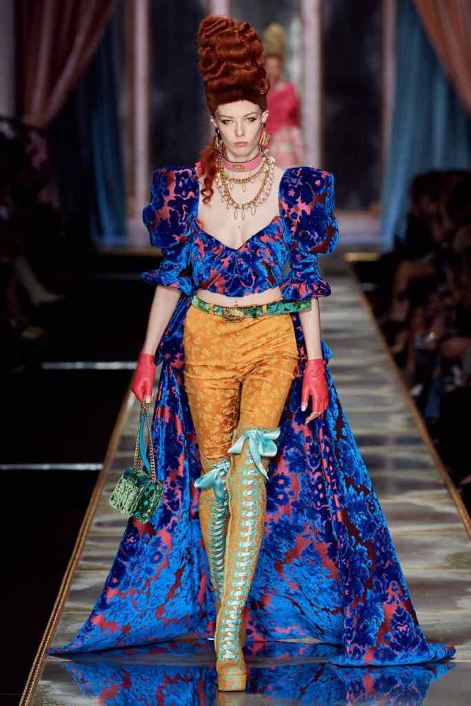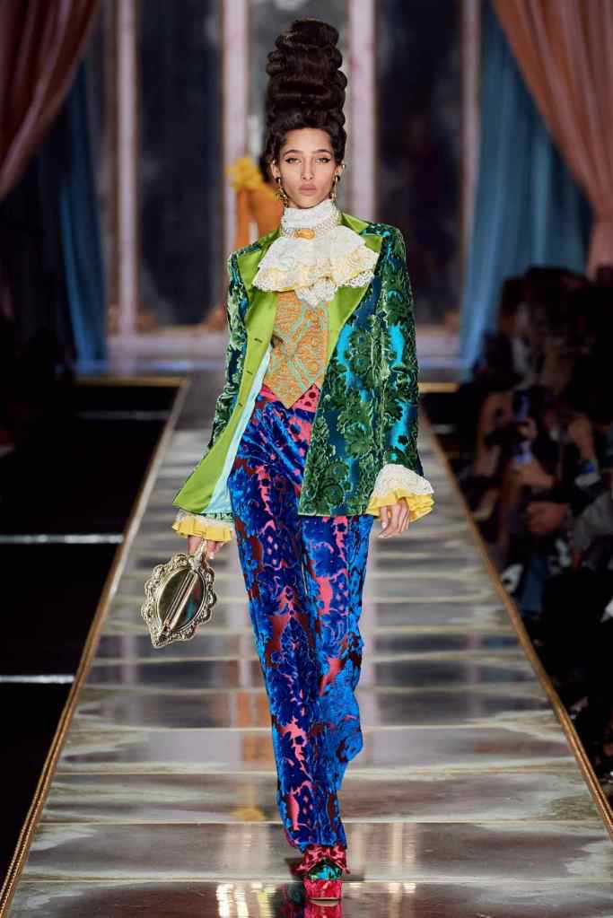 Jeremey Scott was struck with the parallels between the French Revolution and 2020’s world political scenario. While most brands are bust recreating the 80s Scott goes back to the 1780s this season. Jeremey Scott has been unapologetically creative and fun; this collection is a testament to his brilliant delightful humor. Subversion was blended well with theatre here.