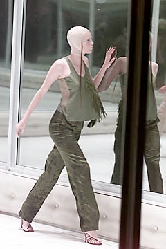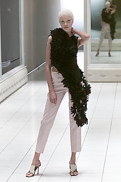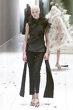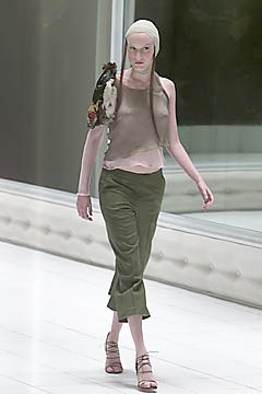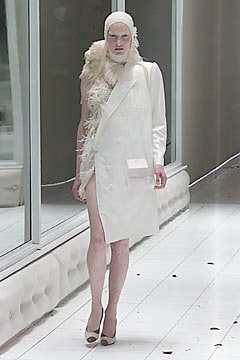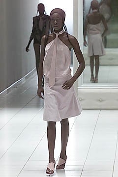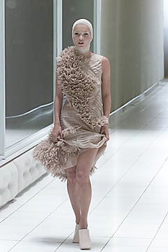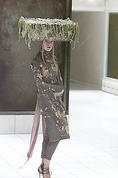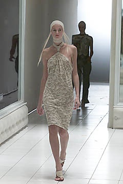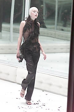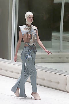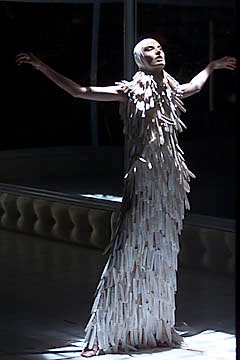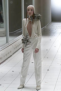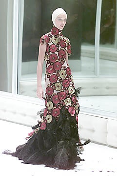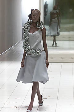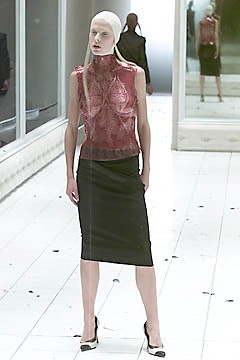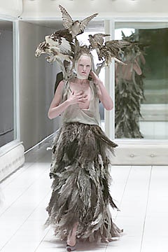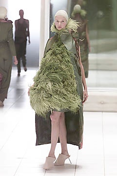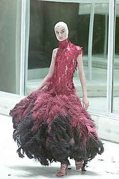 To say that this was a legendary show is not enough, the dictionary might run out while I try to put words to describe Alexander McQueen’s Spring 2001 collection ‘Voss’. One of his most celebrated works, it is a perfect reflection of his vision. The beauty at McQueen is uncomfortable and almost disturbing but it is also real and powerful. McQueen had the ability to transport you to his dark magnificent world. Held inside an enormous empty glass box representing a psychiatric hospital ward. Models not just walked but acted inside the box; they couldn’t see outside the box. The clothes aka art pieces were theatrical and enigmatic. Erin O’Connor’s dress made up of razor clam shells that she started breaking off or her red ensemble created with microscope slides and ostrich feathers – iconic moments in fashion history performed to perfection by the ace model. The show ends with a naked woman on a respirator with moths flying around her – a directed interpretation of ‘Sanitarium’ by Joel-Peter Witkin.