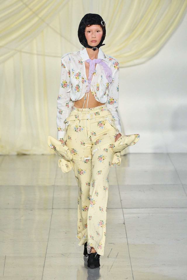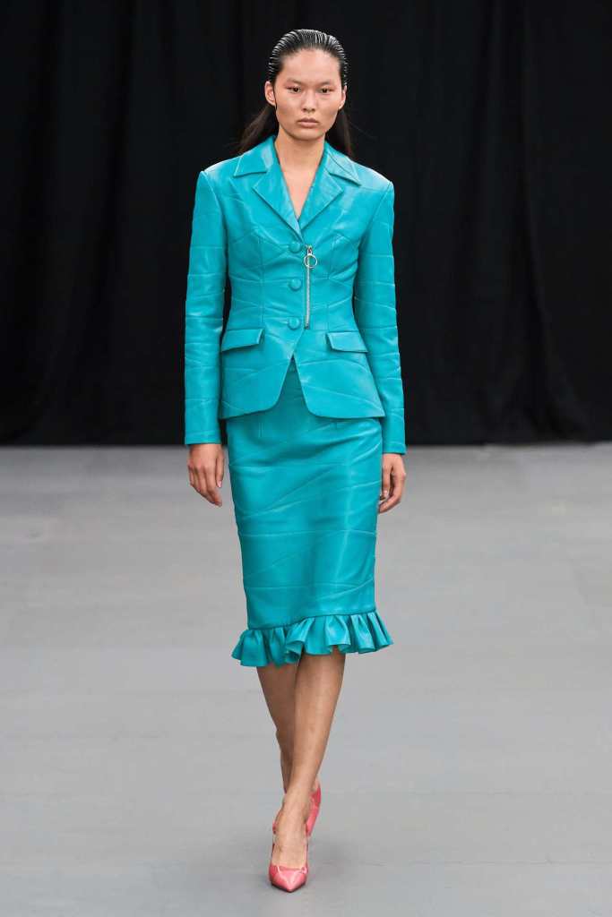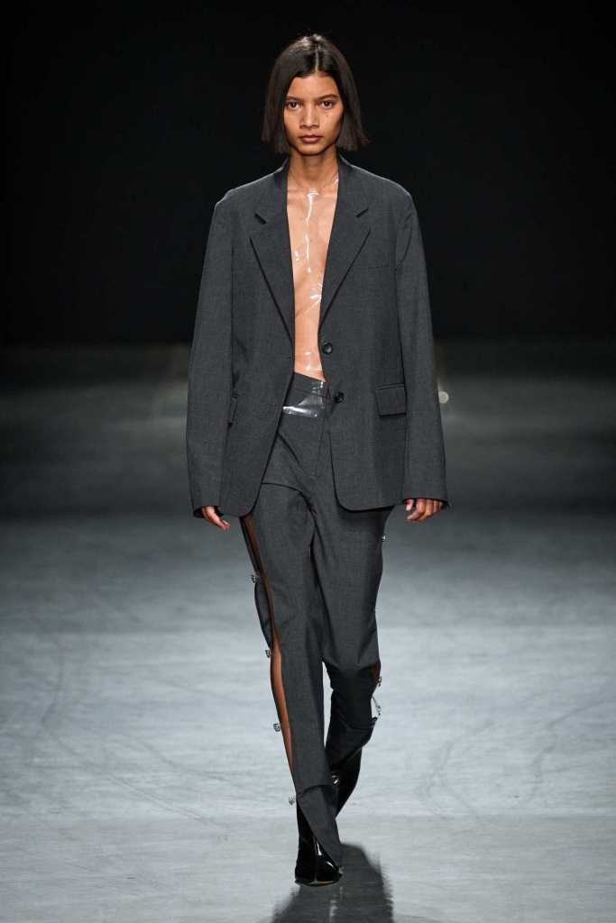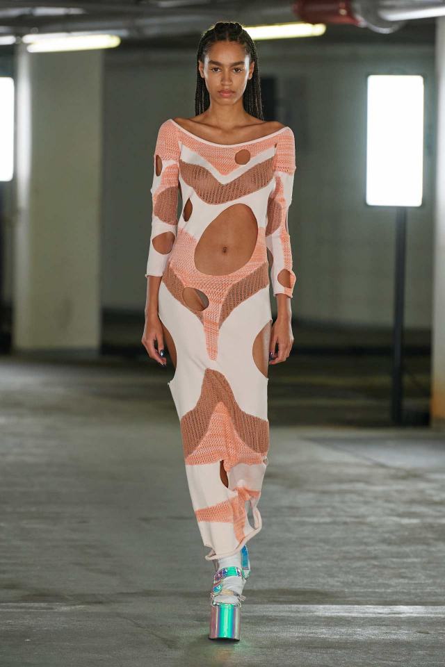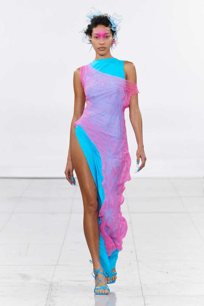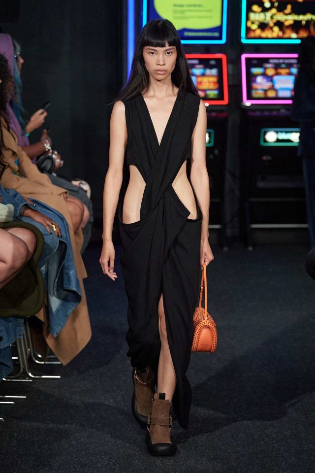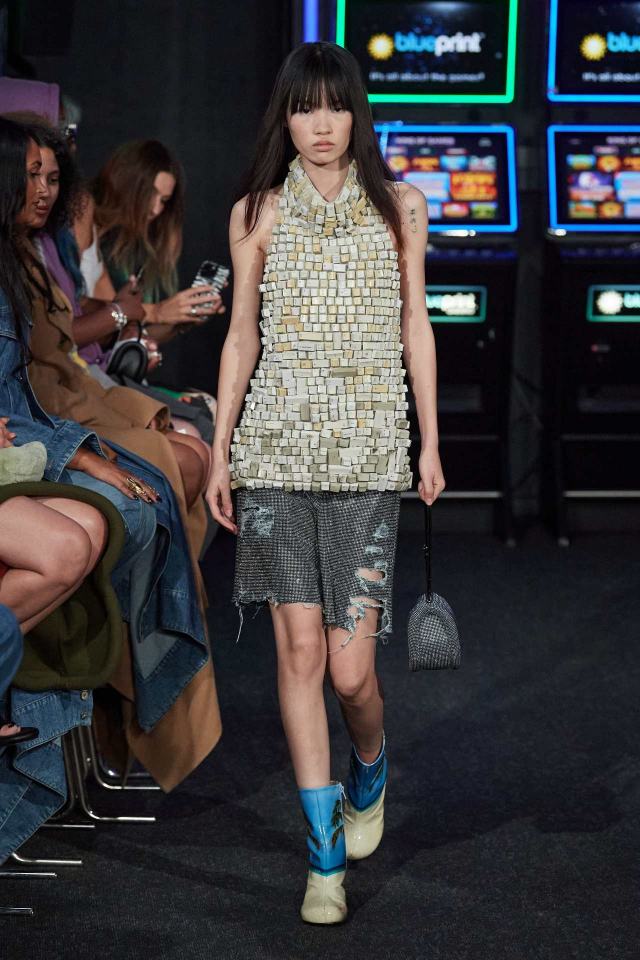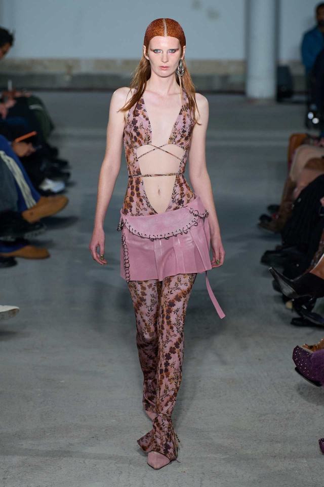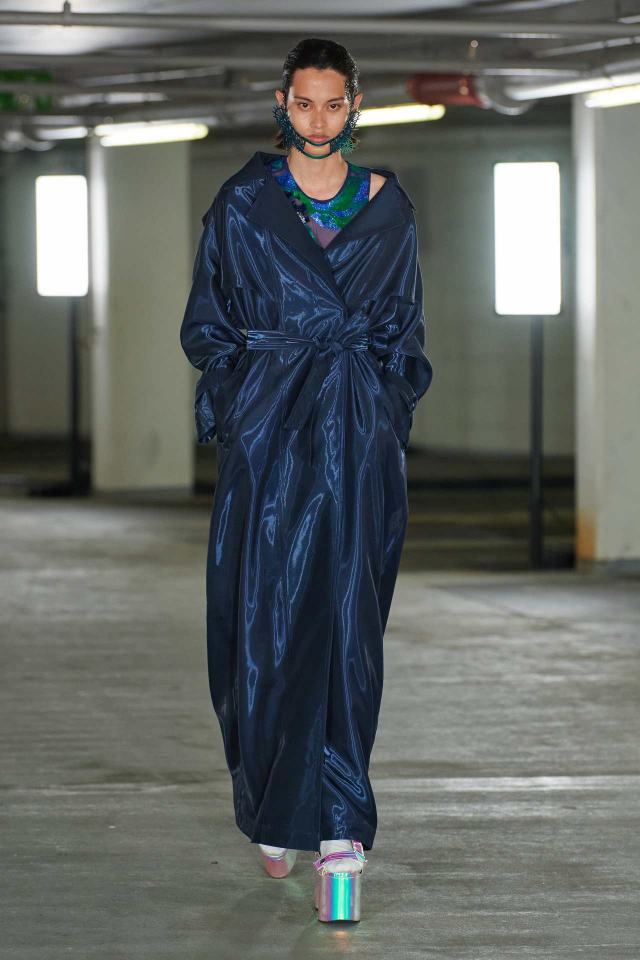 Knwls: Crafted with the now brand signatures this collection featured all that we love and expect from KNWLS. The designer is riding hard on the Y2K nostalgia the only question is how long will this last, as is with any trend-focused brand. Even though it was titled ‘glimmer’ the collection reflected a very tough apocalyptic aesthetic. There were plated micro-minis, statement jackets, slinky dresses and ultra sexy cutout tops. Nevertheless, this collection did have some very desirable pieces. The brand is losing its USP because everyone from fast fashion retailers to heritage brands are opting for the early 2000s aesthetic; maybe it’s time for KNWLS to diversify and rule.