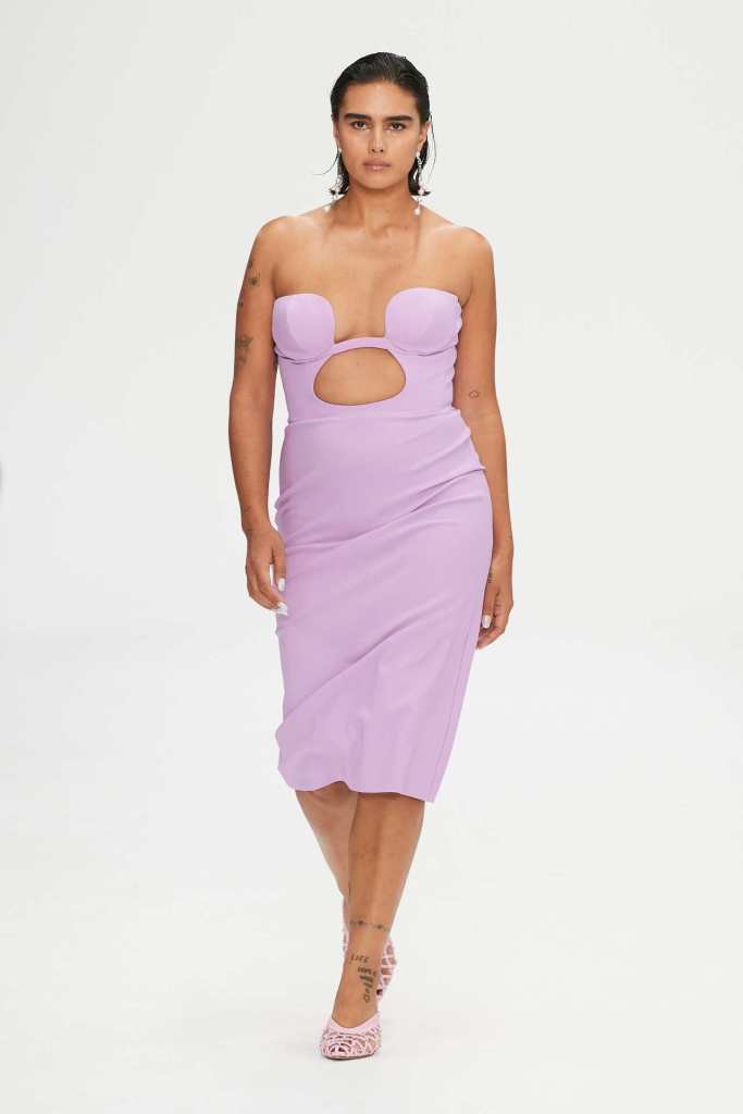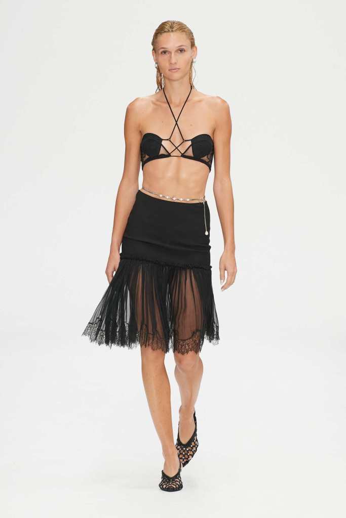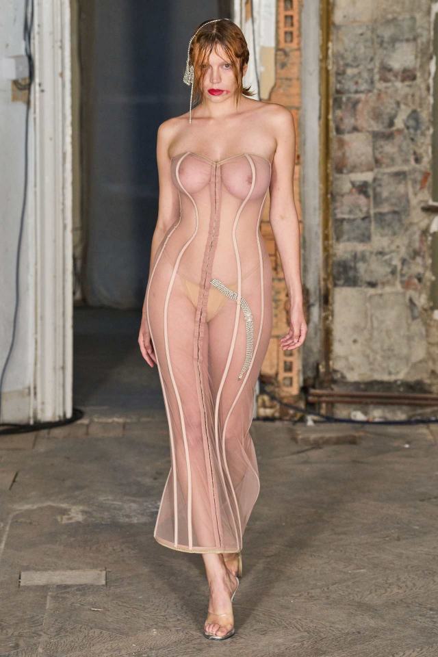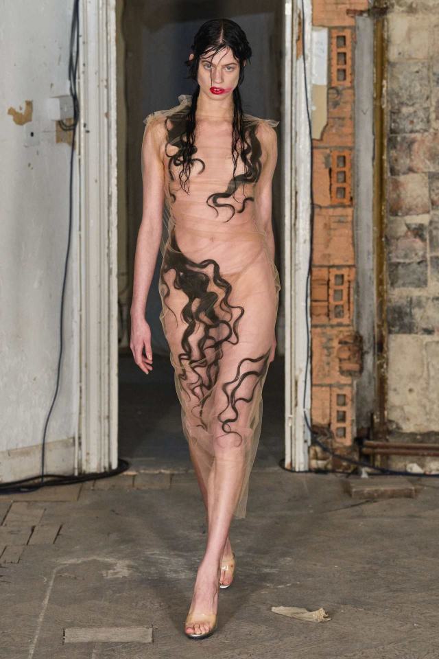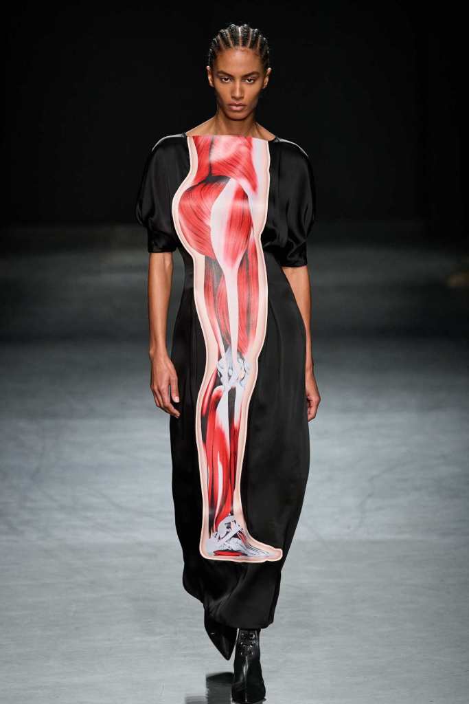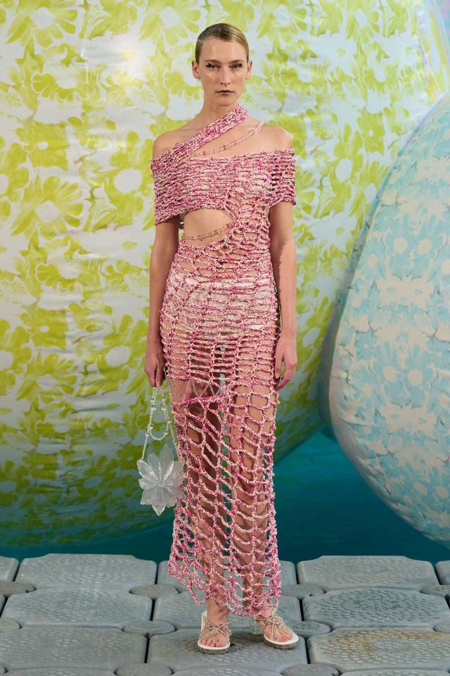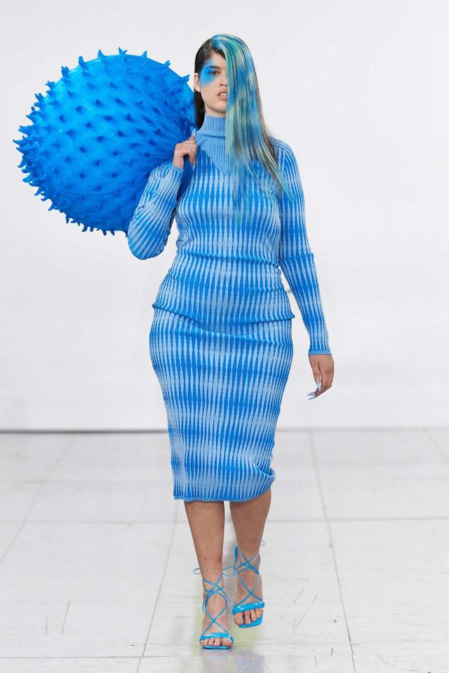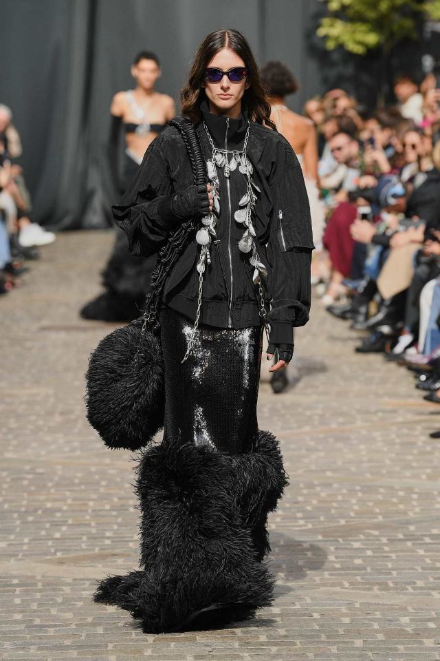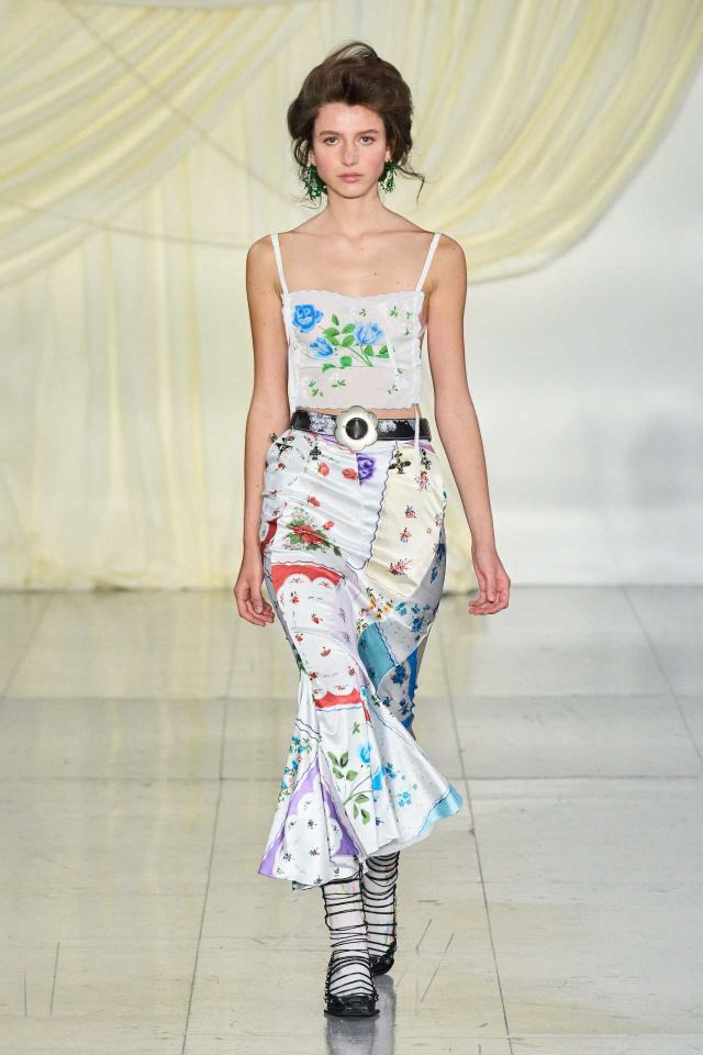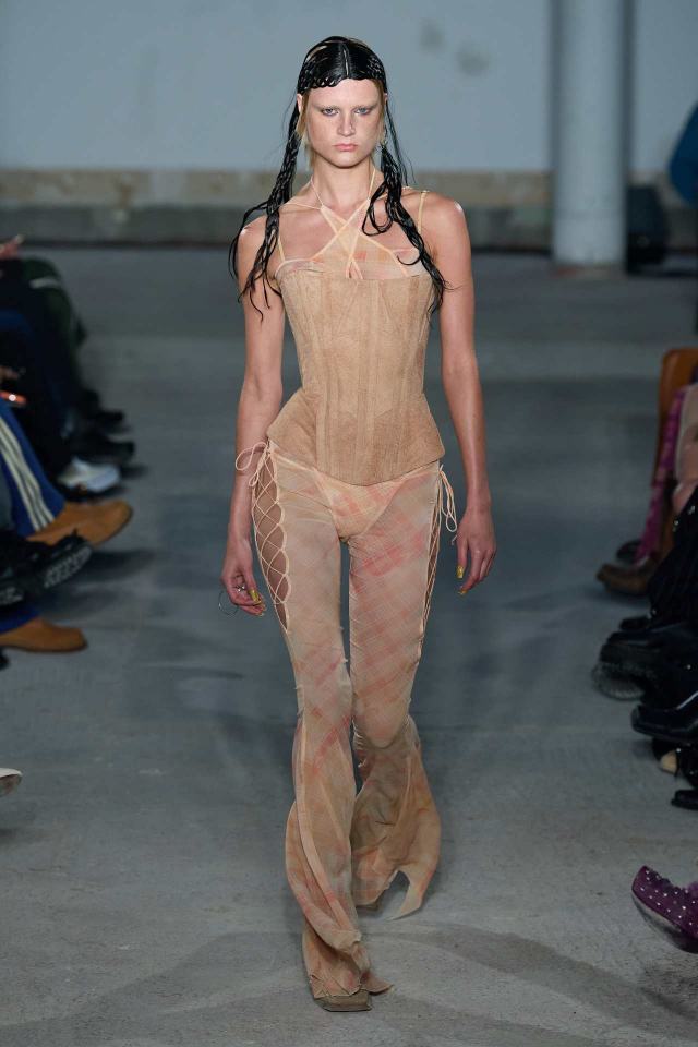 Knwls: Crafted with the now brand signatures this collection featured all that we love and expect from KNWLS. The designer is riding hard on the Y2K nostalgia the only question is how long will this last, as is with any trend-focused brand. Even though it was titled ‘glimmer’ the collection reflected a very tough apocalyptic aesthetic. There were plated micro-minis, statement jackets, slinky dresses and ultra sexy cutout tops. Nevertheless, this collection did have some very desirable pieces. The brand is losing its USP because everyone from fast fashion retailers to heritage brands are opting for the early 2000s aesthetic; maybe it’s time for KNWLS to diversify and rule.