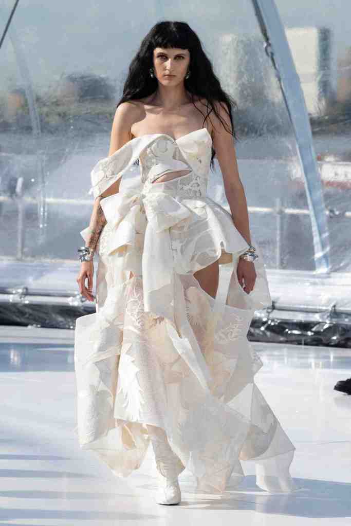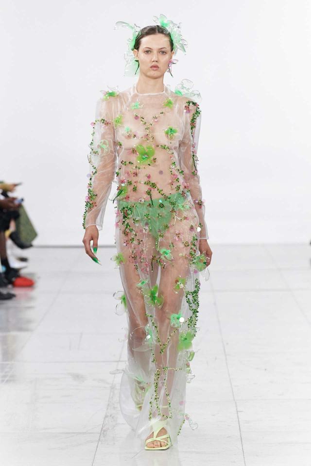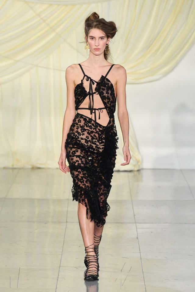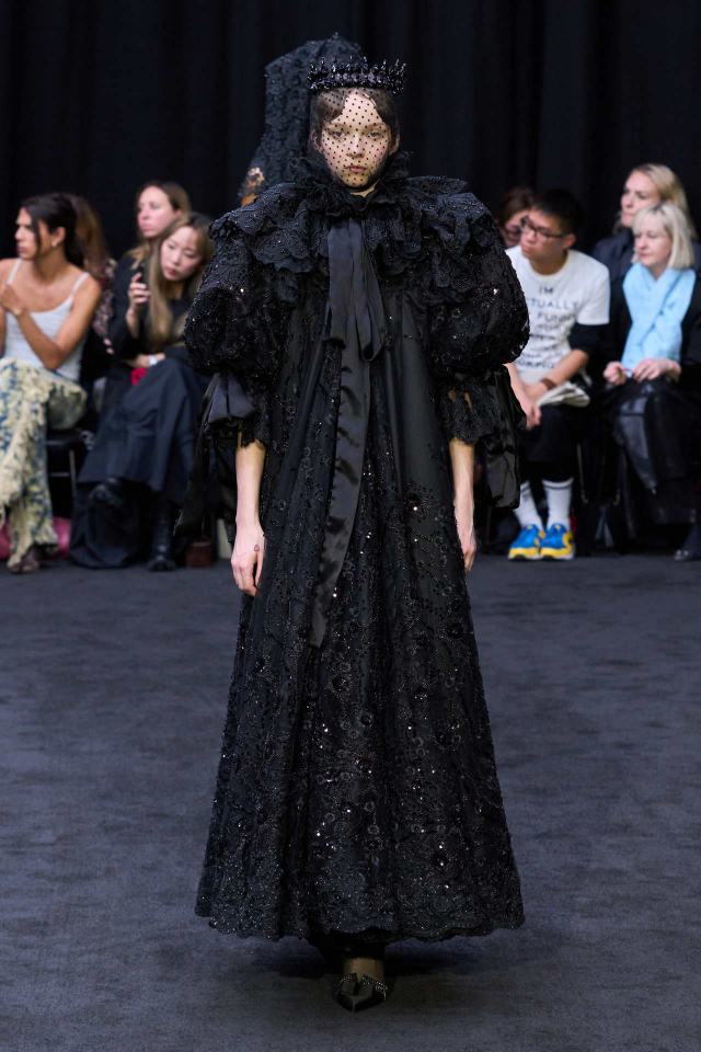 Dilara Findikoglu: One of the most remarkable collections this season, Dilara Findikoglu truly killed it. Dark, desirable and sensuous – There aren’t enough words to describe the magnificence of this collection. It was actually quite a surprise, Dilara Findikoglu just unleashed her unmistakable potential. The clothes combine elegance and eerie to showcase some masterfully crafted clothes. Each look carried a raw sensual magnetism while playing around with traditionally feminine and historic clothing motifs. Each look loaded with drama and dark grunge aims to captivate the viewer. There was a bit of cottagecore blended with some intense witchcore among countless other references. It was hauntingly beautiful.