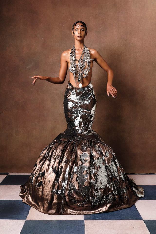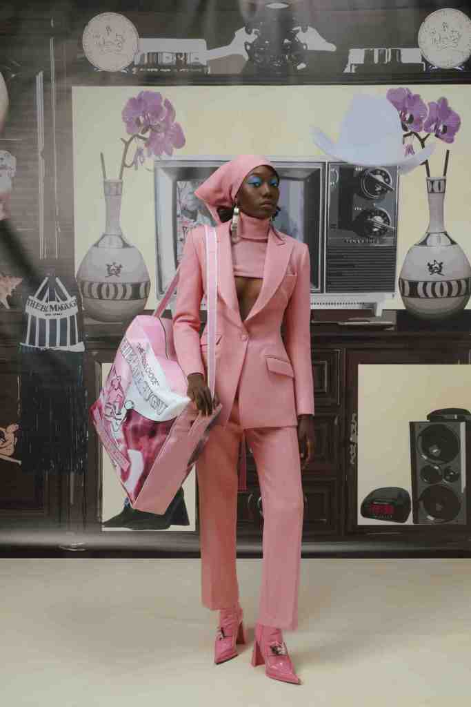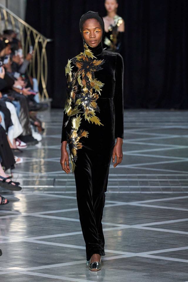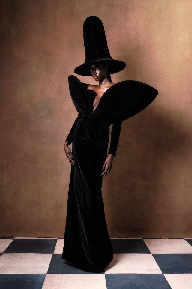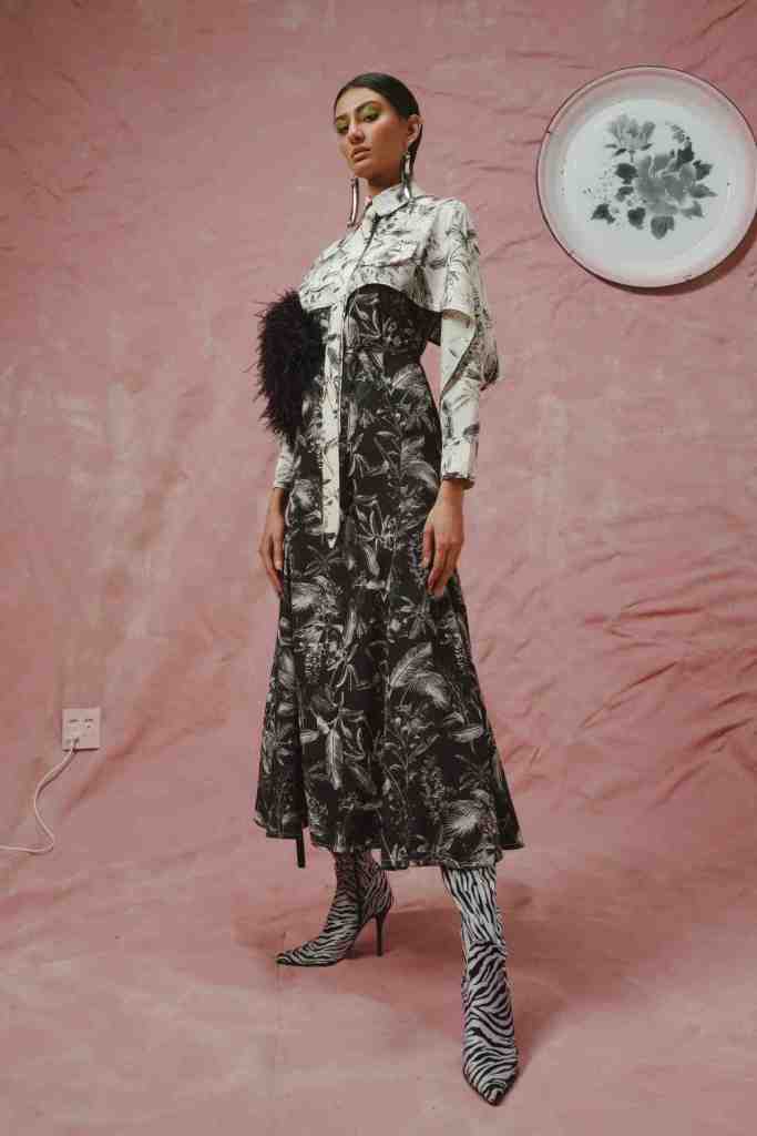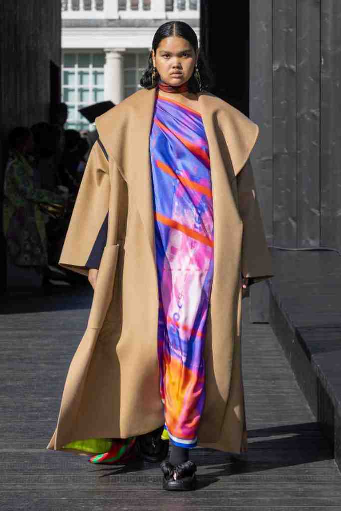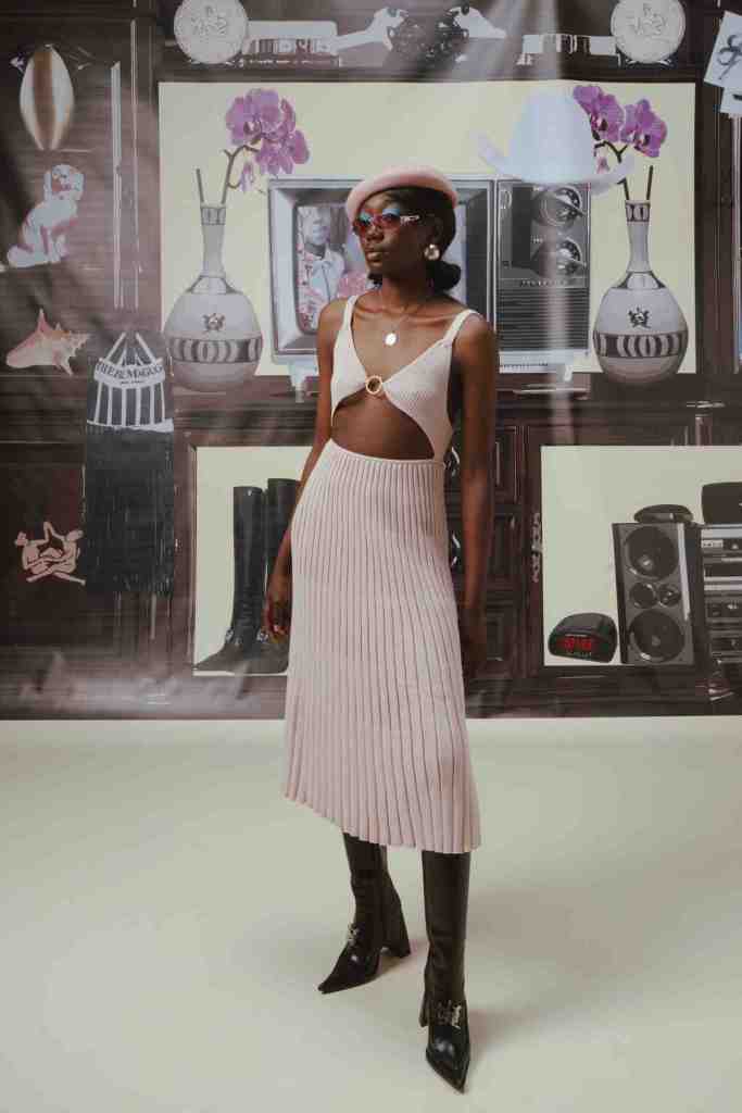 Thebe Magugu: This collection features striking playful silhouettes paired with some vibrant colors and a huge range of textures. Sleekly tailored clothes aim to elevate the individual’s everyday style not only with contemporary design aesthetics but a seamless blend of history and culture. This collection would make one would truly want to wear and live in; there is thoughtfulness behind each piece. There are standout prints, pleated skirts, feathers capes, tailored co-ords and elegant dresses that define this collection in a sea of separates.