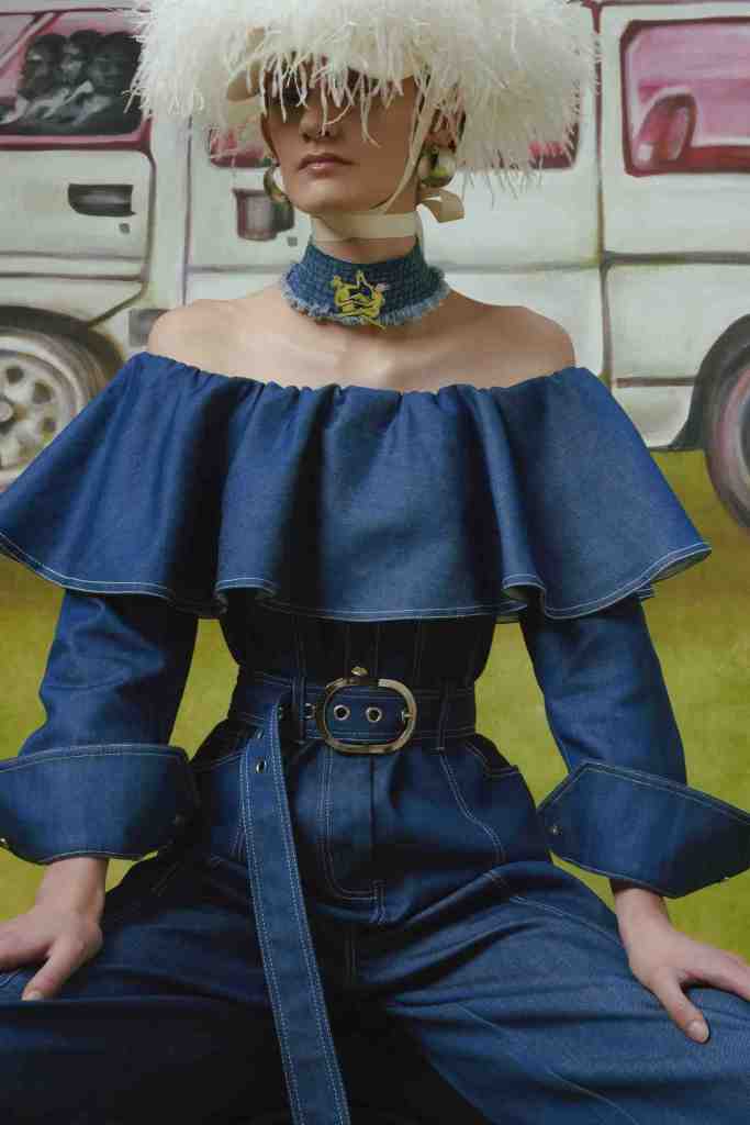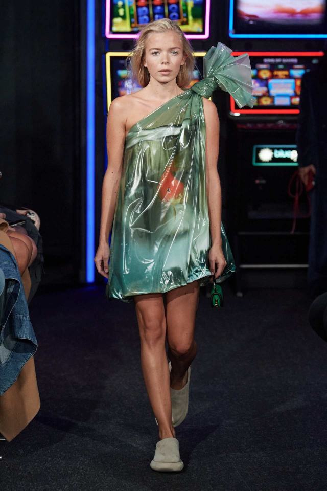 JW Anderson: This collection made us think about the gradual seamless blend between us and our phones. A deep dive into the inescapable technology in the world of Fashion. Halter neck tops created with keyboard buttons, tropical desktop wallpaper-like photographs plaster on garments, mini dresses wrapped around like plastic bags and some dainty asymmetrical maxis. Surrealism is a major part of Anderson’s design and we saw plenty of it here. Anderson does not only add humor but also real intrigue into concepts. In a creative landscape where everyone is trying hard to be different Anderson manages to do it is the utmost simplicity.