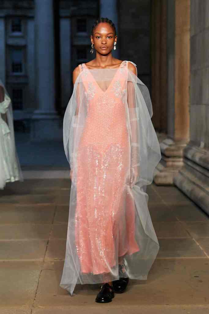 Harris Reed: Dramatic like never before and confident as ever! While this wasn’t his best it was a step in the right direction. The designer challenges the conventional outdated guidelines for debutante balls in this collection. He uses traditional motives of feminine dress-making and recreates them more acceptably and inclusively. My only concern was the grossly undone ironing; with outfits this gorgeous you simply can’t have creases. Harris Reed is moving ahead with his demi-couture performative garments ad looks like he is quite good at it.