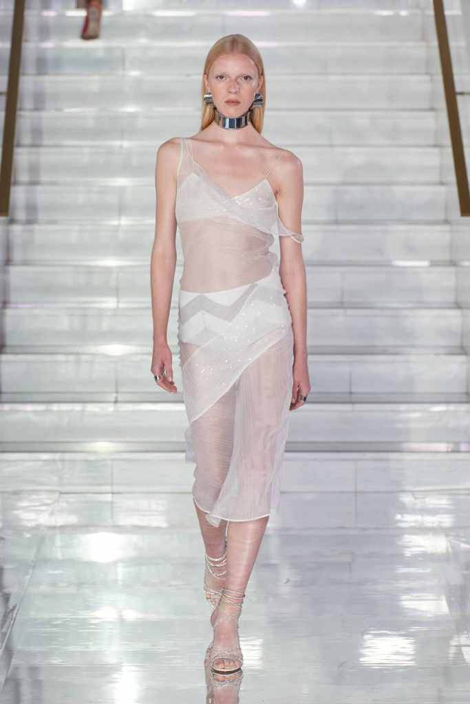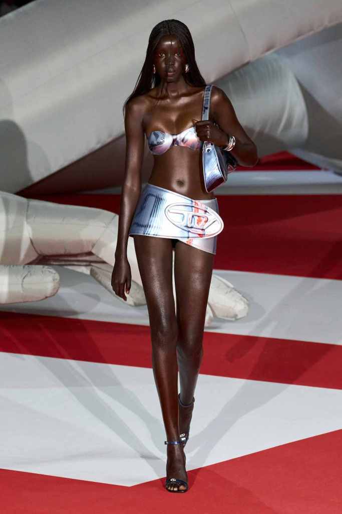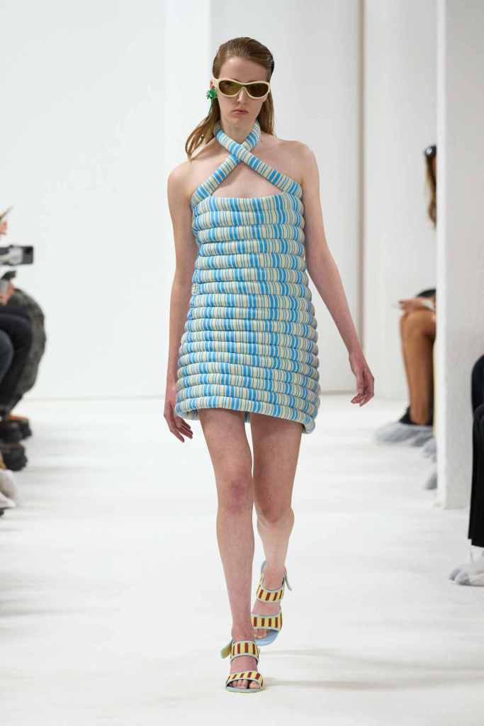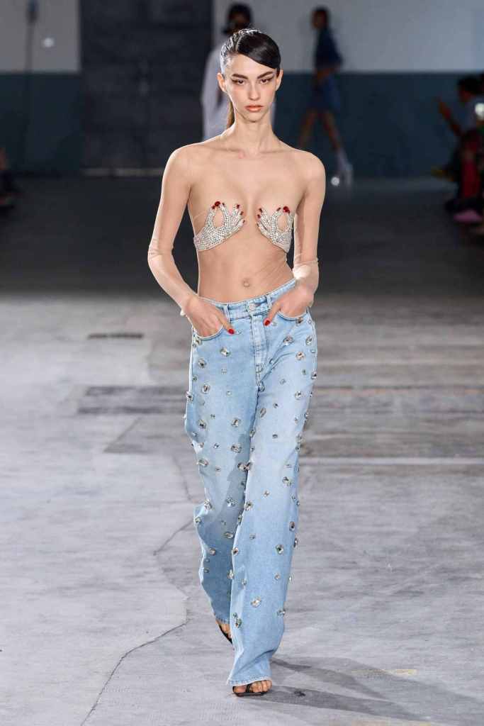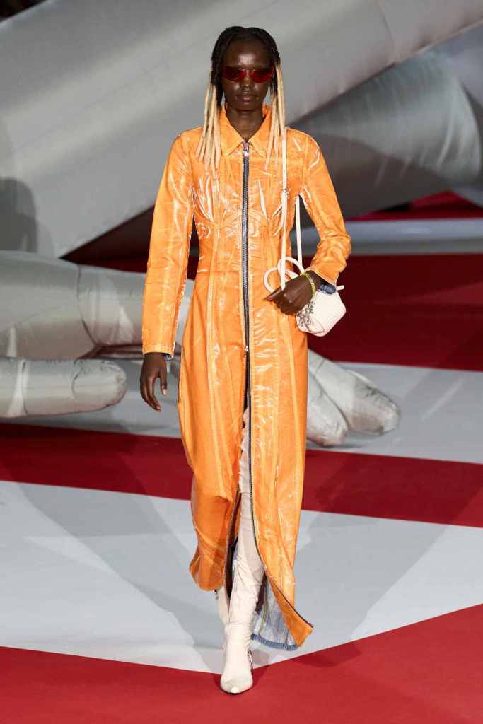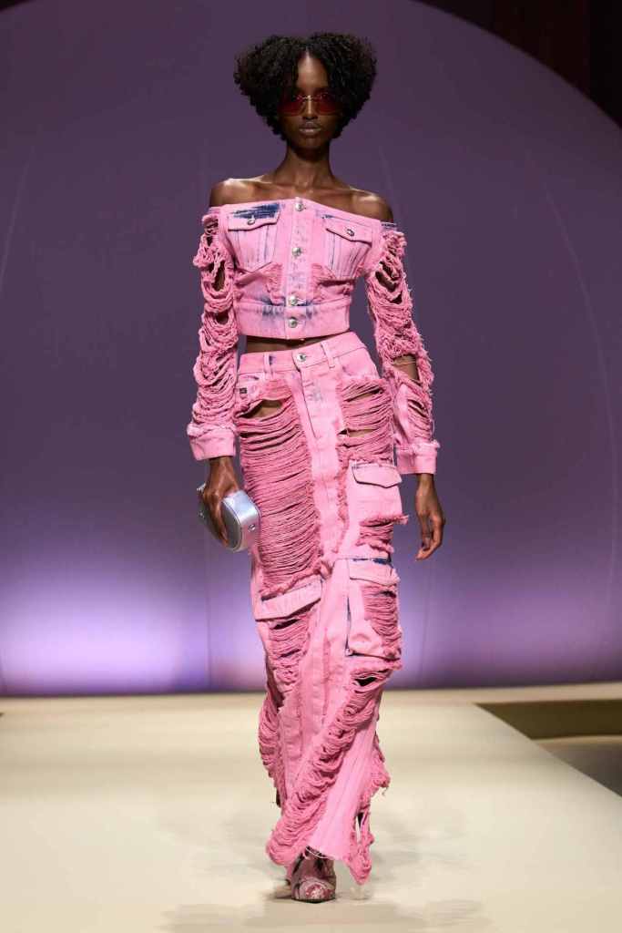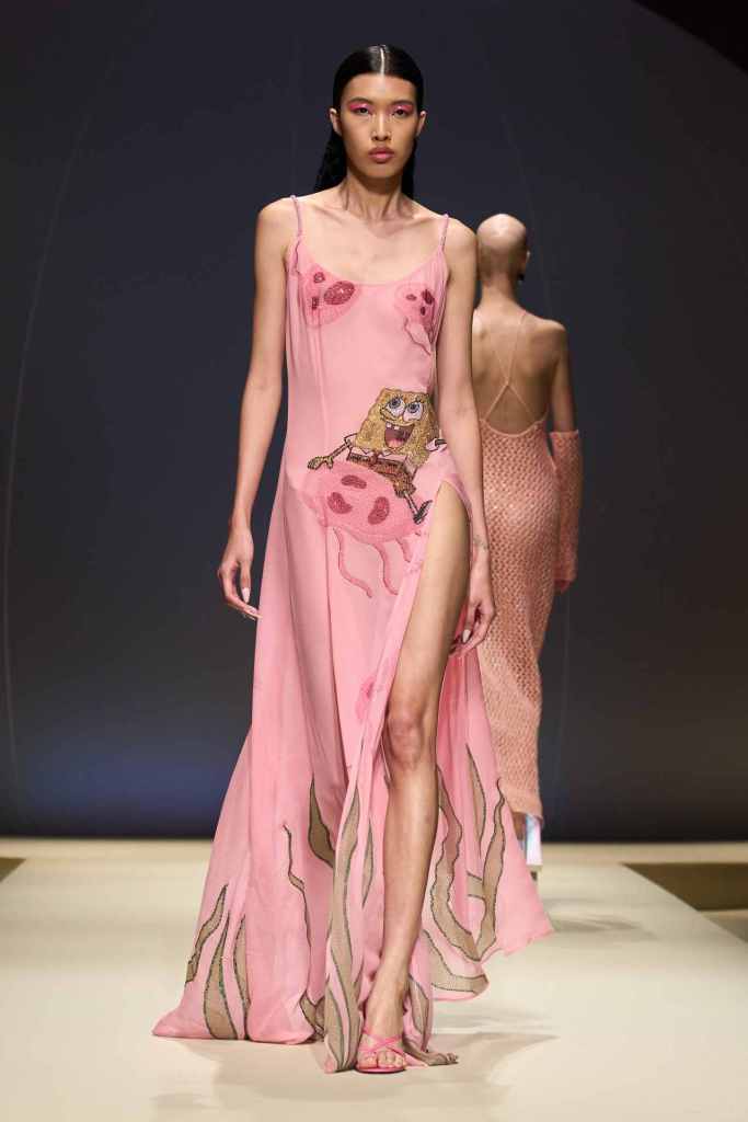 GCDS: We enter a world of sexy Bikini Bottom with this GCDS collection. Titled ‘Alien disco’ this collection is an exploration of feeling like an outsider aka alien via a quirky and playful approach. A lot of ultra-seductive second skin fits follow the brand aesthetic deeply and when paired with SpongeBob SquarePants motifs it not only adds humor but a sense of thoughtfulness. There were colorful mesh bodysuits, distressed Denim co words, bold swimwear and some seductive slip dresses. GCDS brought a much-needed sense of humor and relaxation this season.