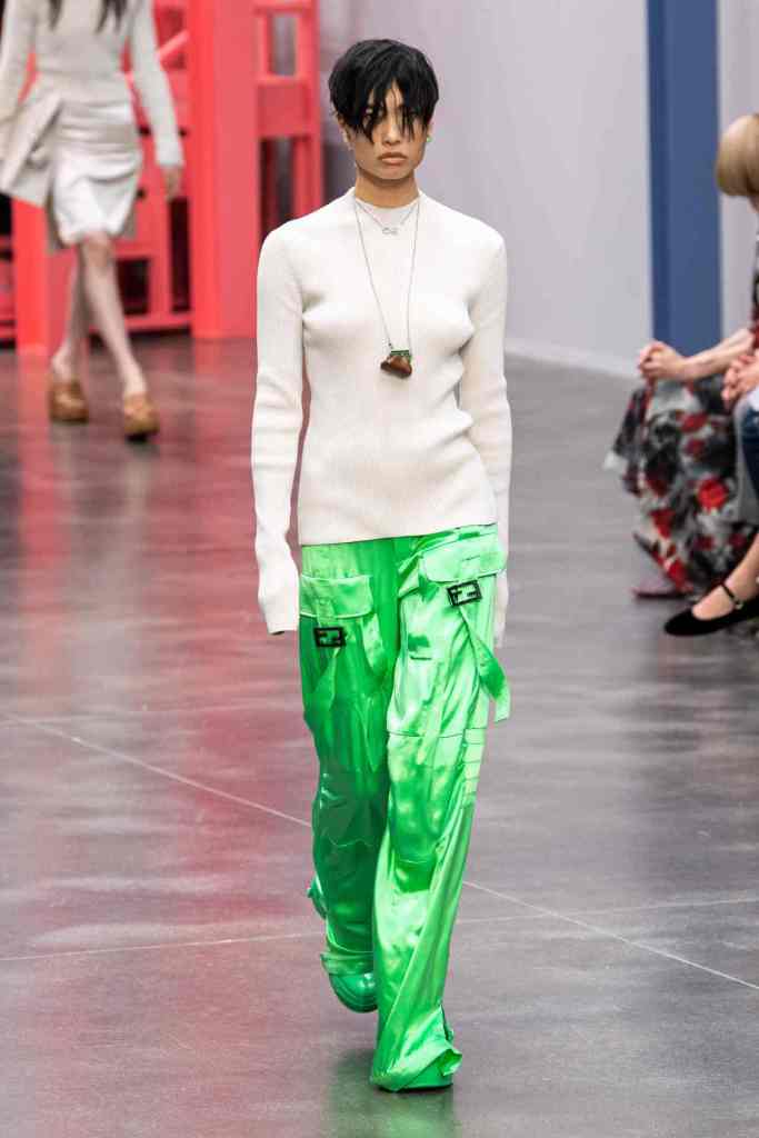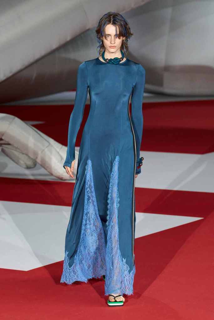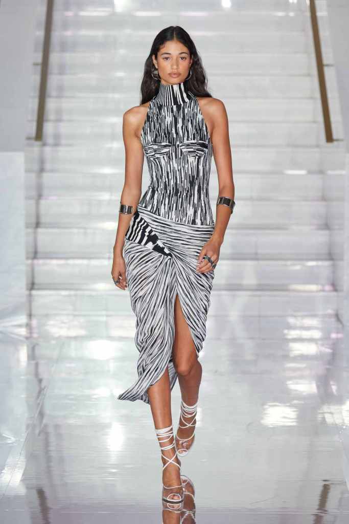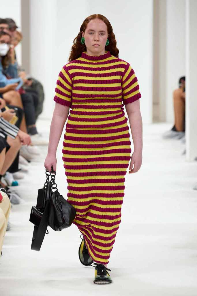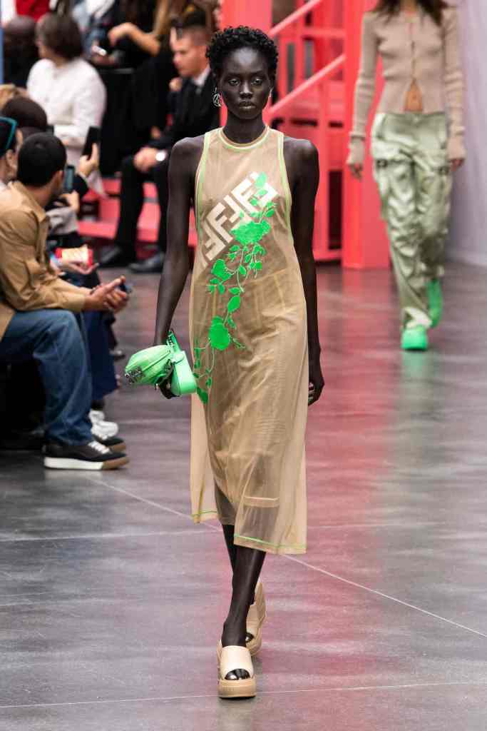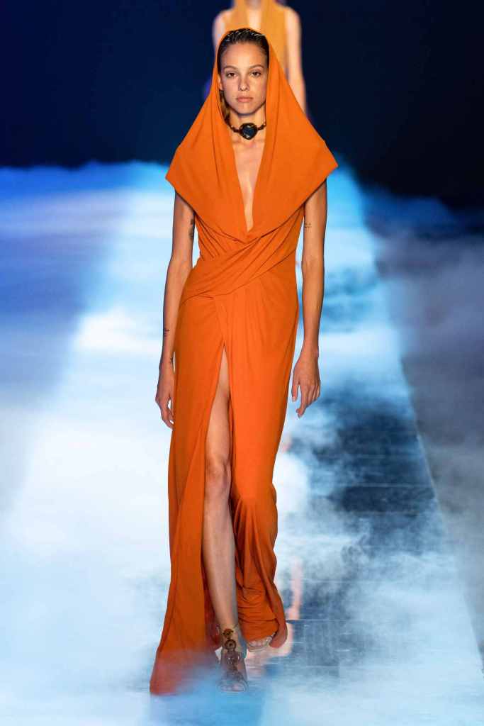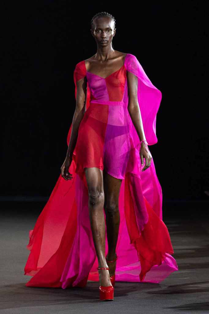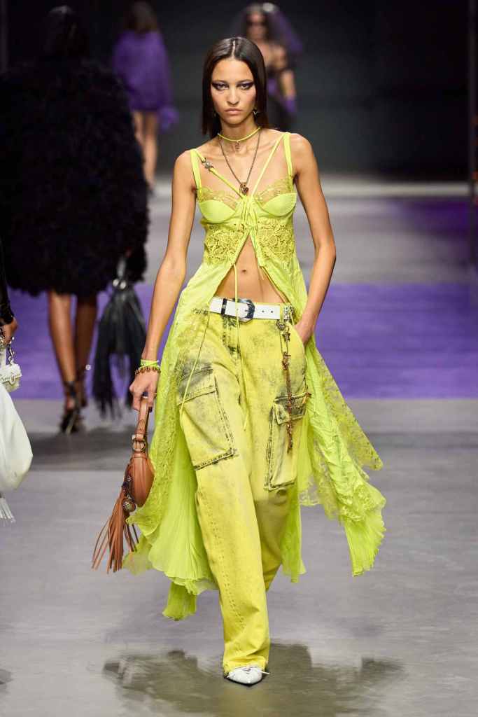 GCDS: We enter a world of sexy Bikini Bottom with this GCDS collection. Titled ‘Alien disco’ this collection is an exploration of feeling like an outsider aka alien via a quirky and playful approach. A lot of ultra-seductive second skin fits follow the brand aesthetic deeply and when paired with SpongeBob SquarePants motifs it not only adds humor but a sense of thoughtfulness. There were colorful mesh bodysuits, distressed Denim co words, bold swimwear and some seductive slip dresses. GCDS brought a much-needed sense of humor and relaxation this season.