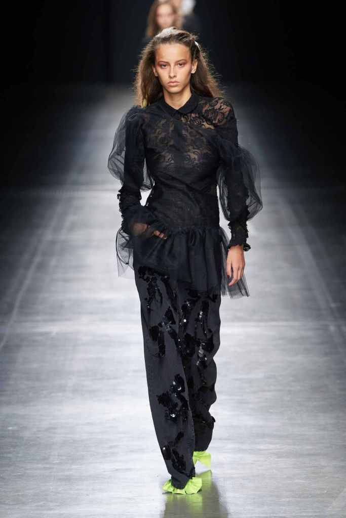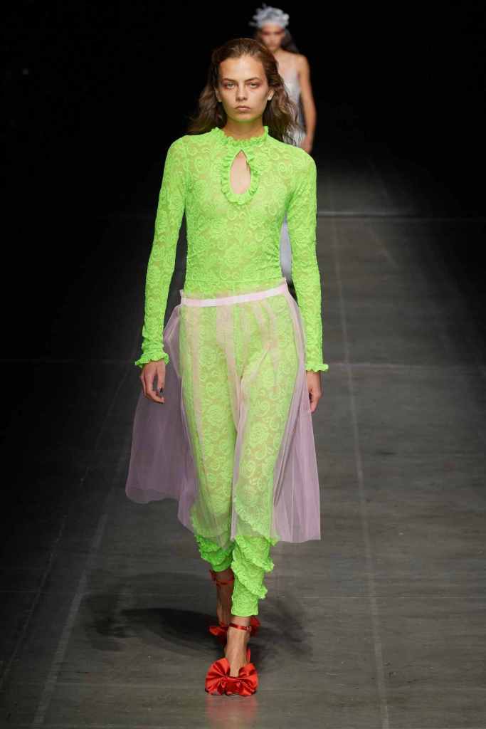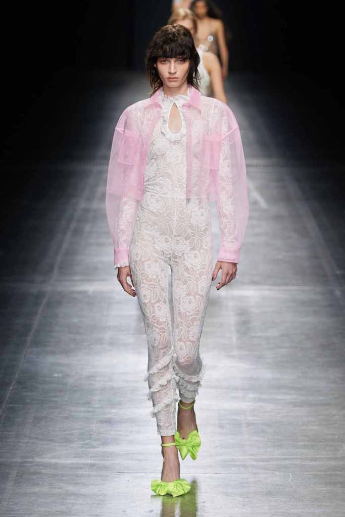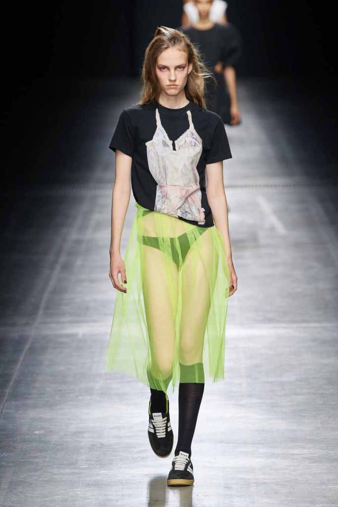 MSGM: This collection was a lot about love and weddings – the clothes reflected optimism, light and playful. There were sheer tulle skirts, heavily ruched dresses, lace leggings, ruffled mini dresses and tiny bikinis. There was a lot of transparency and lace in this collection – a blend of lingerie and bridal wear. The clothes were bold and uber sexy with the potential to be styled for any occasion.
