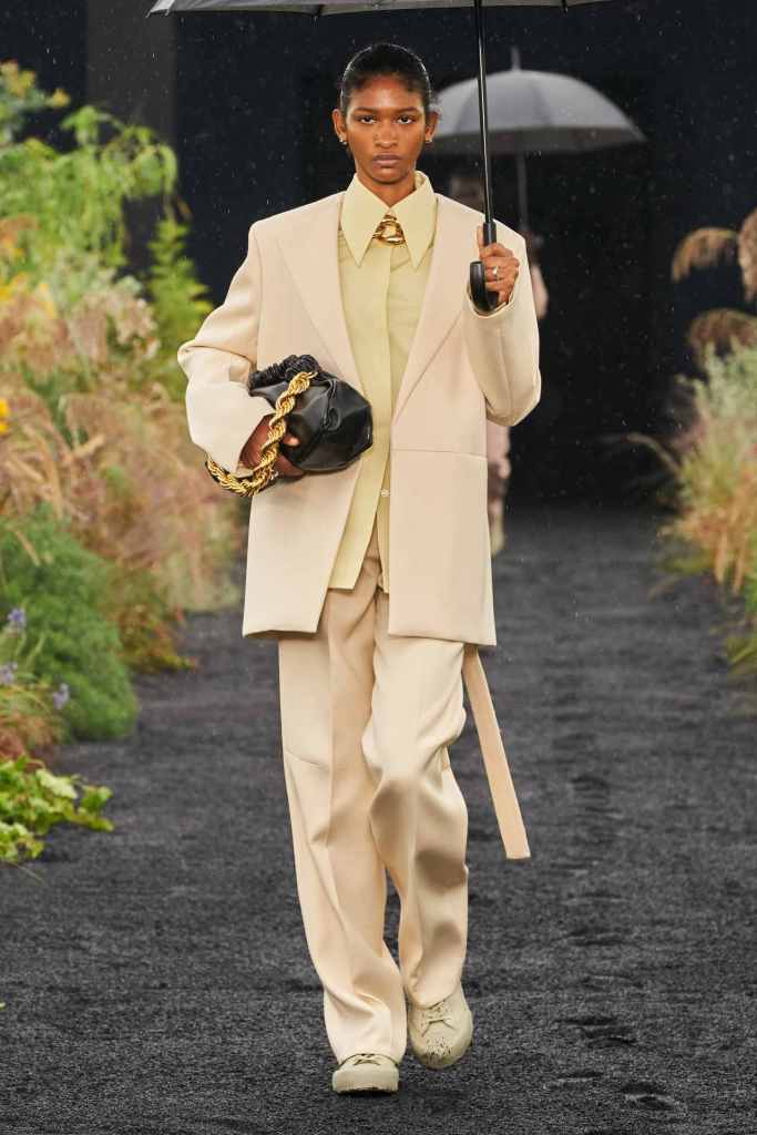 Bottega Veneta: Bottega is on its way back to becoming a pioneer in quite luxury; something that Daniel Lee wasn’t keen on. While he paved the way with viral ‘it’ products, it is Matthieu Blazy who will lead the brand into an enduring legacy. The construction and tailoring here are sublime and are an ode to the craftsmanship of the artists. This detailed work when paired with simple everyday garments elevates the sincerity and necessity of Bottega. There were some scrumptious leather bags and statement-making heels; of course, Bottega has to have some irresistible accessories.