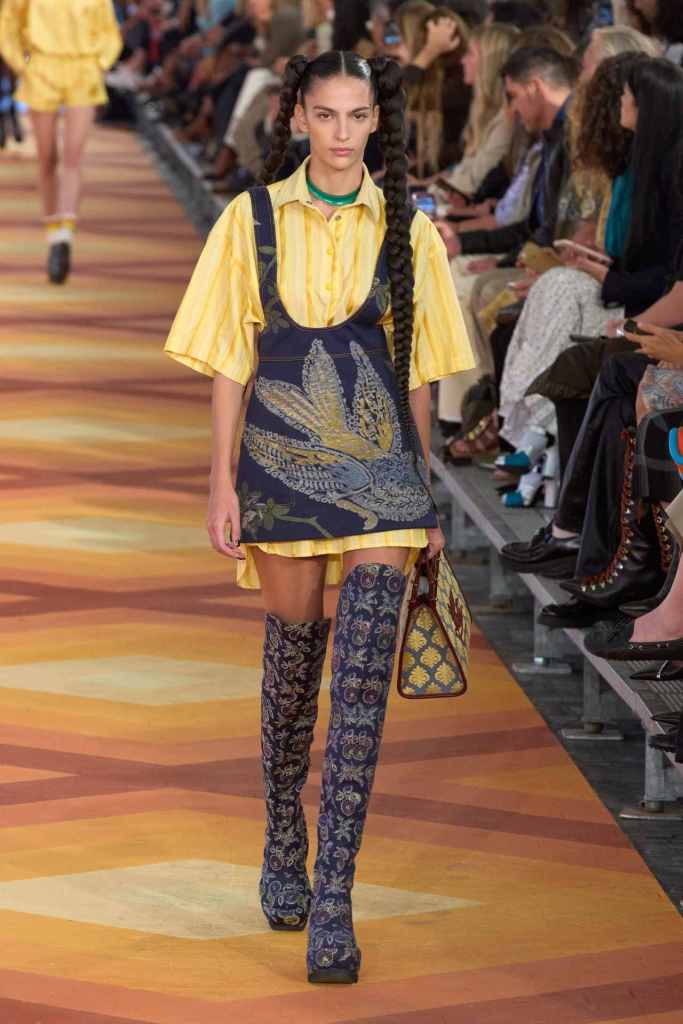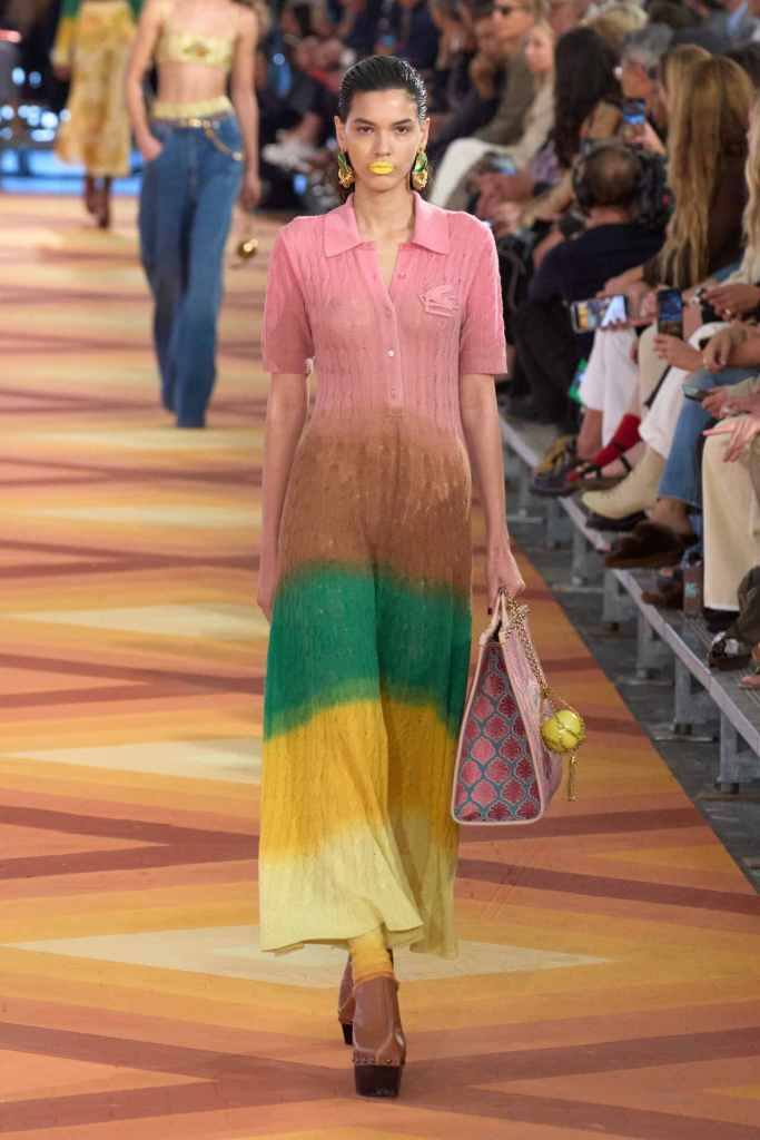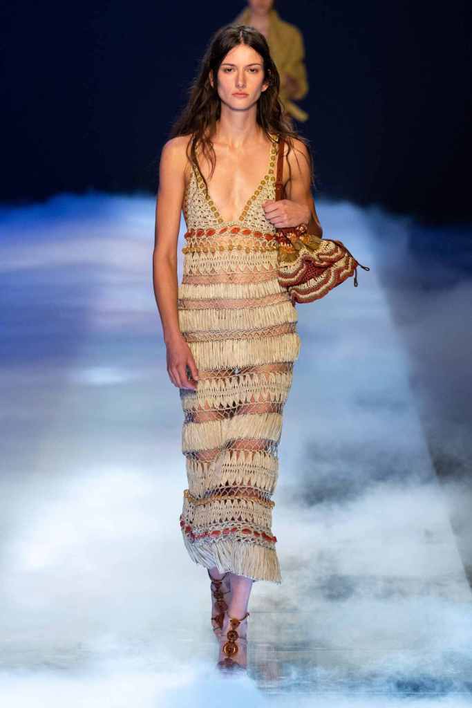 Etro: This collection was Marco de Vincenzo’s debut for Etro; one of the big debuts this spring 2023. This collection has indicators of a youthful and contemporary energy that the designer clearly aims to bring. With this connection Vincenzo hopes to explore more design aesthetics and signatures for the brand; it was a surprisingly delightful try. While time will tell how will this switch will perform commercially, they are the same potential and hope. Maybe now Etro can be more than a brand whose creative signature is ‘borrowed’ from another country. The clothes featured some gorgeous multicolor degrade knit dresses along with denim brocade, tiny bra tops, bold co-ords, boho-esque outerwear and ombre minidresses. An exquisitely crafted, simple yet powerful debut.