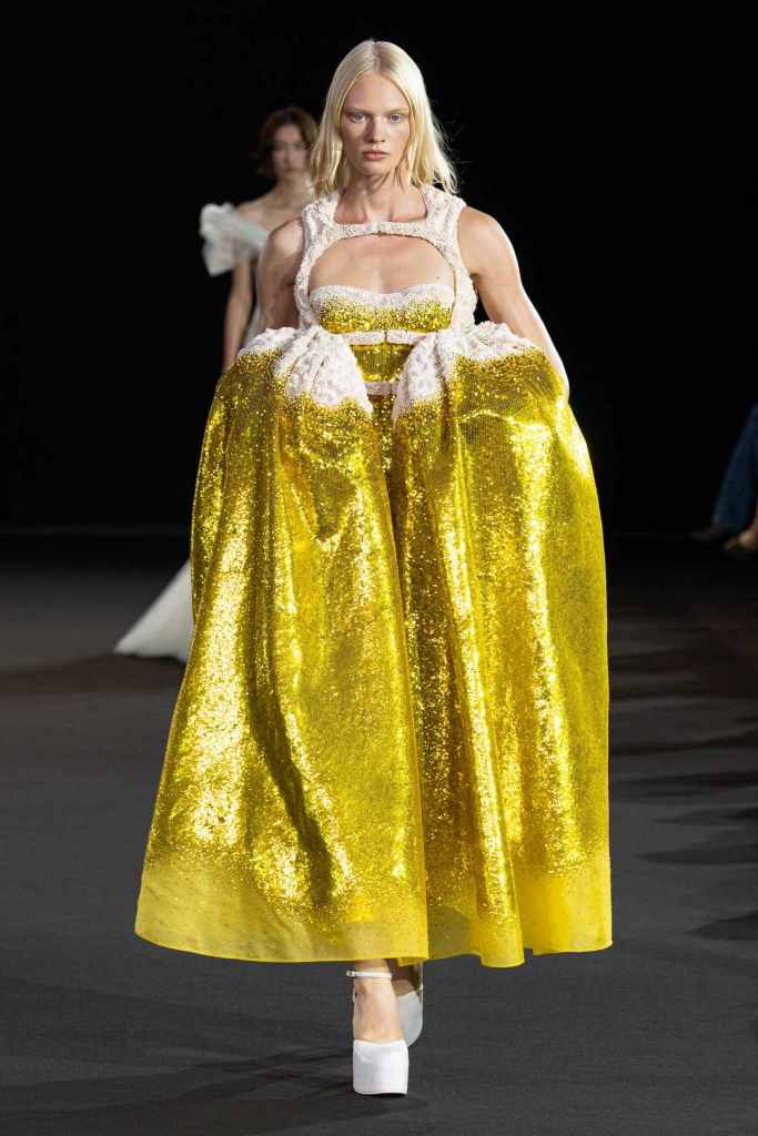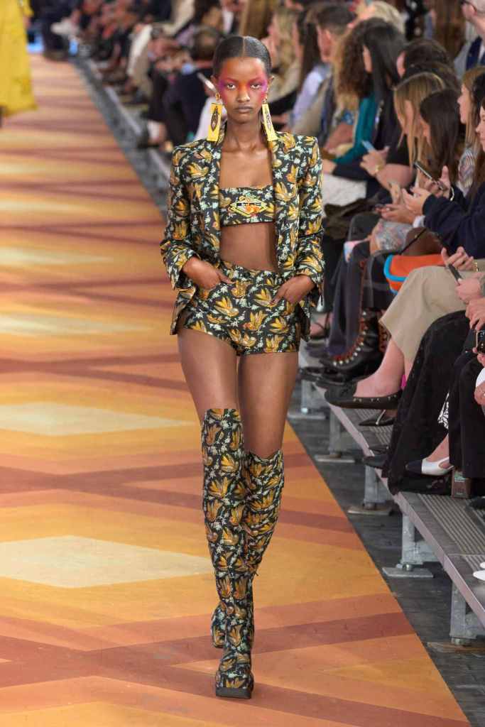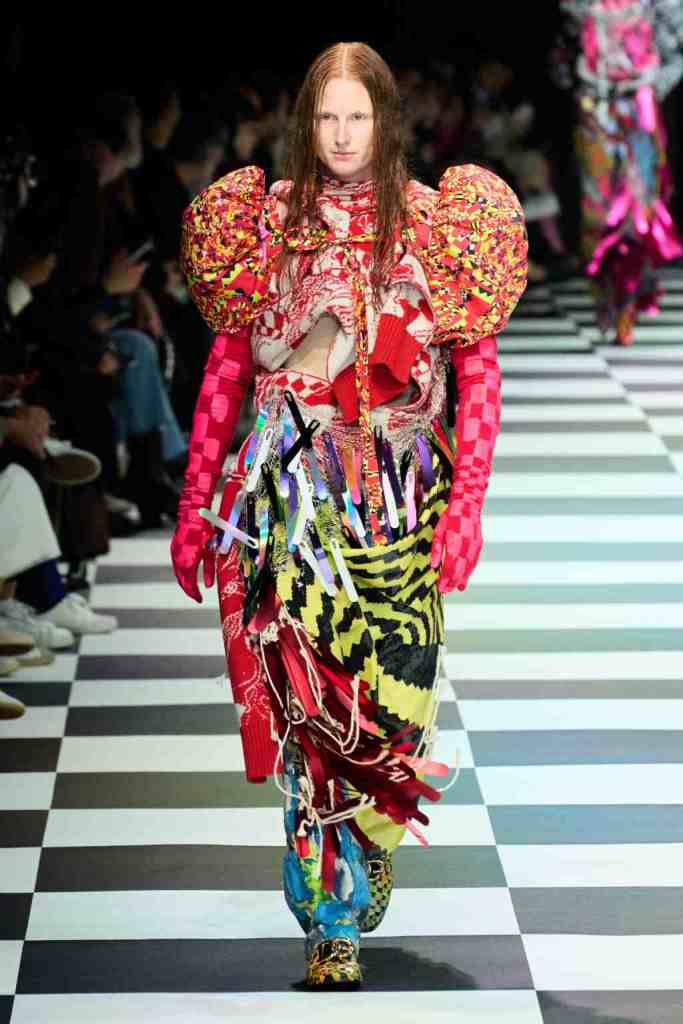Matty Bovan: Matty Bovan presented us with his most cohesive and thoughtful collection yet. The colors? Enchanting The silhouettes? Surreal! A psychedelic blend of raving statement-making prints and kaleidoscopic colors. The silhouettes were cinematic and overpowering; There was a load of corsets and D&G archival accessories completing the drama. This collection is the definition of maximalism.