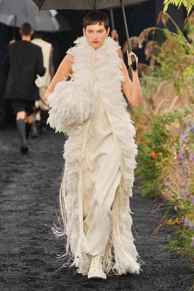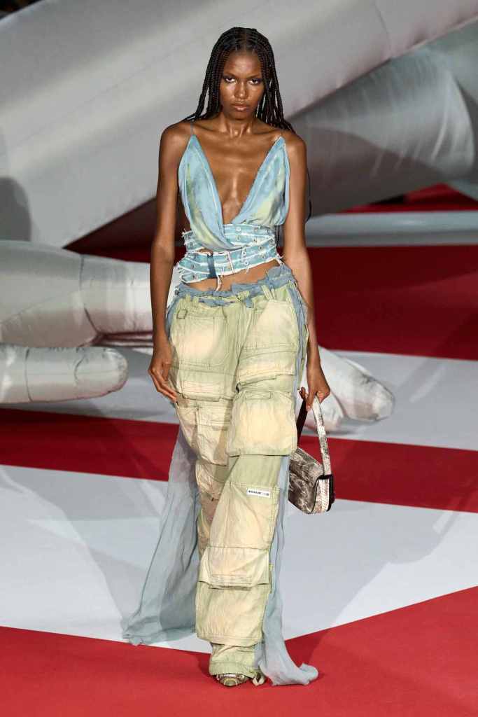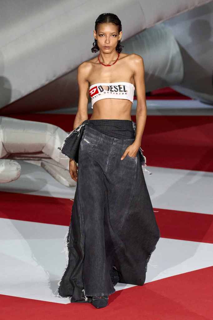 Diesel: Ladies and Gentlemen! Glenn Martens has done it again. No crumbs left. Years from now students in fashion colleges across the world would be studying Glenn Martens’s work. If you thought denim means jeans or an occasional jacket then this collection is here to change your mind. Denim is explored in countless ways both technically and conceptually. There were Denim corsets, sheer denim pieces and ruffled denim taking the form of fur among many others. A blend of street, Y2K, utility and couture come together to serve us with a collection to remember. Experimentation was at the heart of this collection and so was the craftmanship. The diesel team has elevated Denim to new heights under Martens’s vision, and keep in mind this is just the beginning.