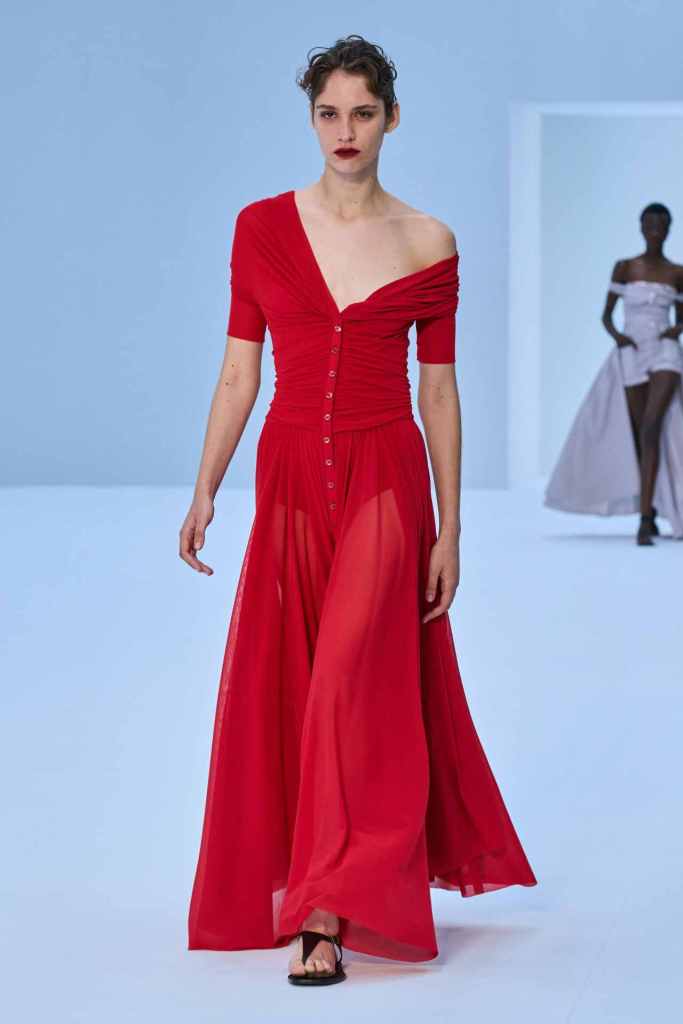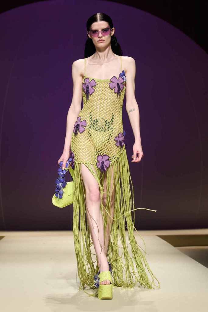 Alberta Ferretti: This collection was all Ferretti from the first look to the last one. With energetic natural colors and soft flowy silhouettes; this collection offered some statement everyday pieces. Some highlights included organza tops, macramé dresses, airy jackets, relaxed trousers and crocheted bodices. There were some signature eveningwear moments too! With this collection, the designer strikes the balance between daywear and eveningwear – something the brand has been keen on doing for a while. Even though this collection had hints of the Italian x early 2000s x gaudiness it serves as nostalgia rather than dismay.