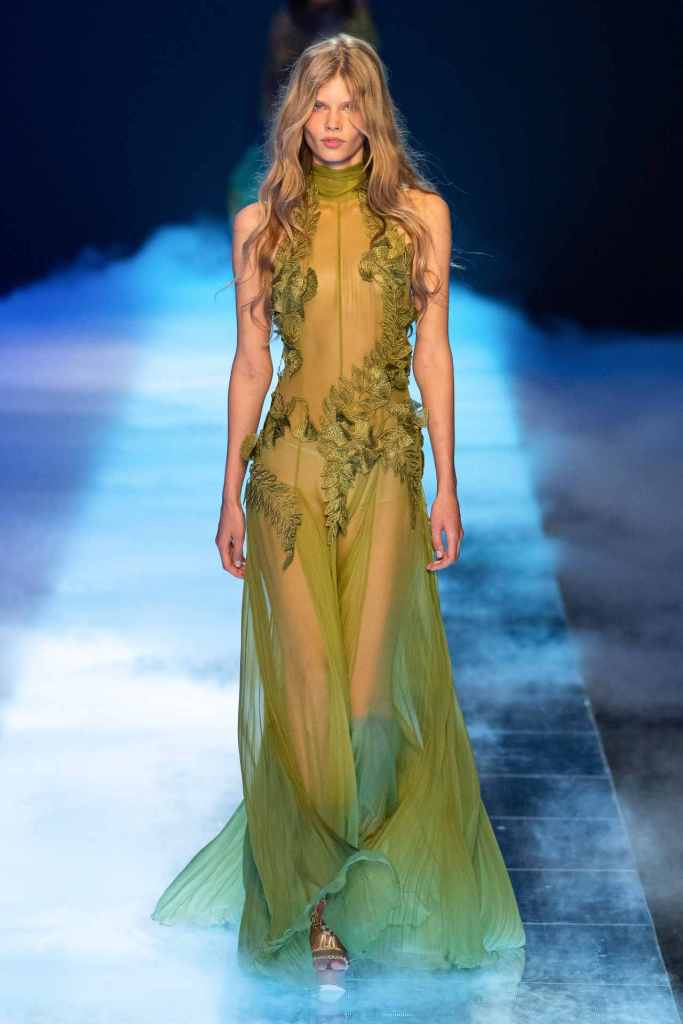 Emporio Armani: The theme for this collection was lightness. Lightness was communicated using various means like sequins, sheer textures, roomy garments and pastel hues. There were softly tailored blazers, sophisticated sarongs, relaxed trousers and utilitarian separates. The lineup ended with some translucent shimmery gowns – classic Armani yet very contemporary. Armani has always been a Pioneer in traditional elegant luxury; this collection proved the same.