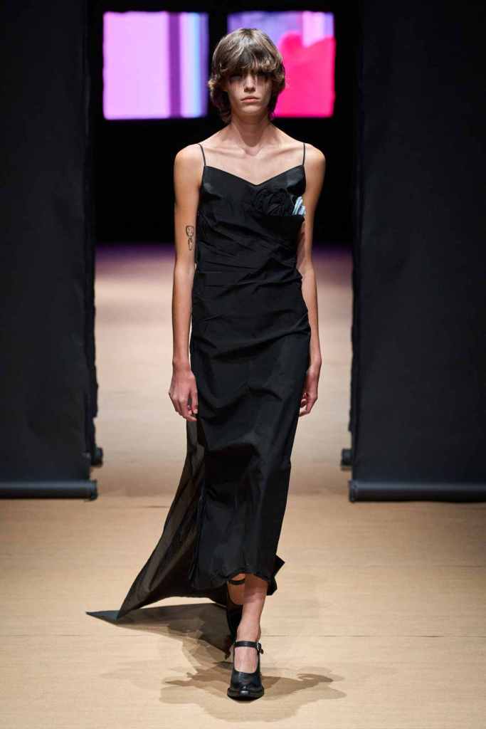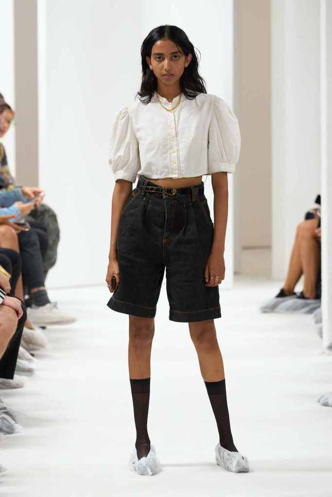 Sunnei: Sunnei used identical twins this season; first one twin walks the runway in their own personal clothing and then the other one comes dressed in Sunnei Spring 2023. This collection hopes to urge a person to think about fashion and its impact on individual identity. While the concept was quite interesting the clothes here were nothing to talk about. This Sunnei collection was bearable at best.