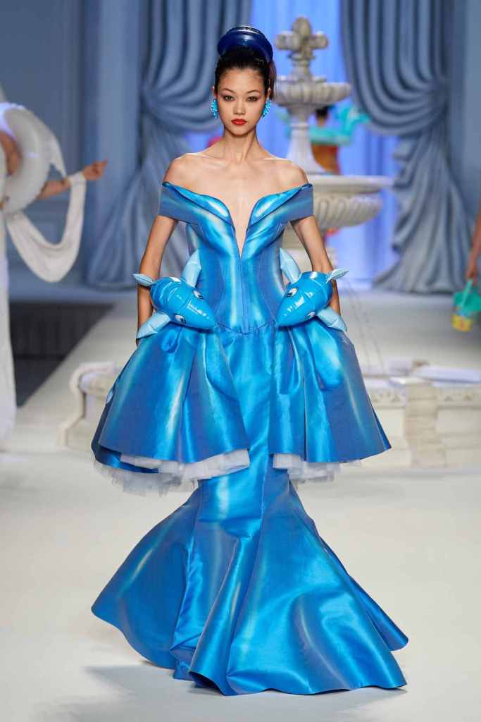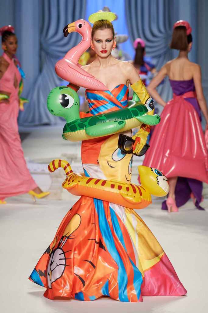 Moschino: This collection was just Moschino being Moschino! There was some colorful Inflatable high fashion and I’m very much here for it. The idea for inflatable fashion came to Jeremy Scott because of the rising costs and inflation rates around the world. I mean that’s just brilliant! In a frenzy of colors and extravaganza, the looks that surprisingly stood out were some simple black tailored pieces decorated with bright red hearts. A lot of 80s silhouettes, nautical references and dramatic inflatable eveningwear. Each piece is layered with thoughtful humor – something Scott now excels at. The charm of Moschino lies in its excess and this collection was excessively fun