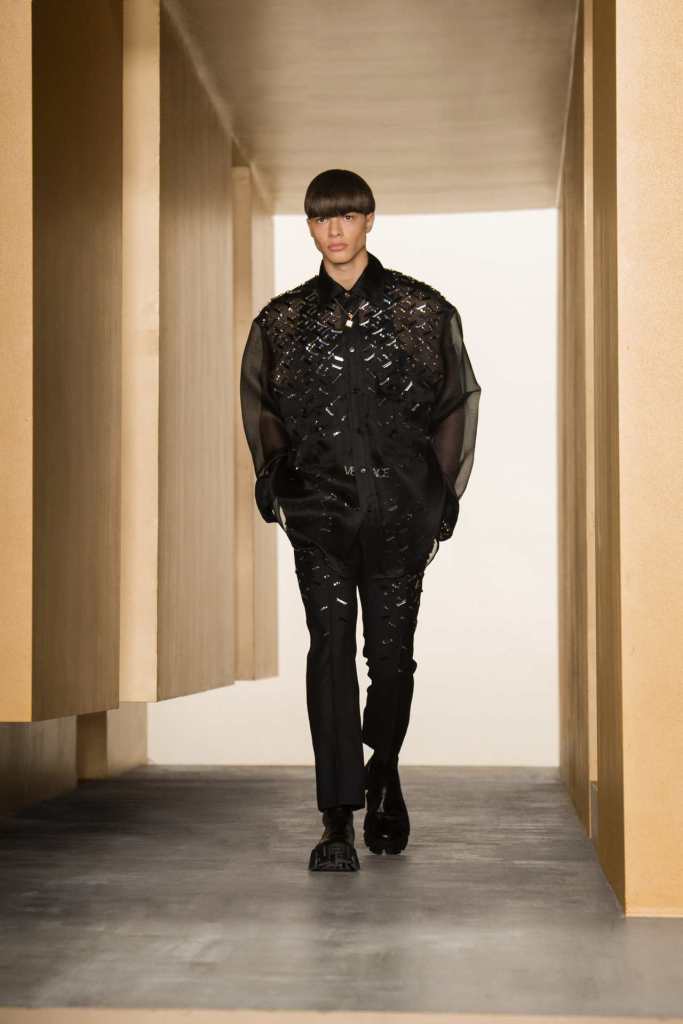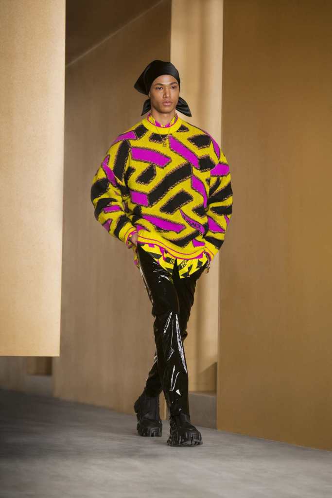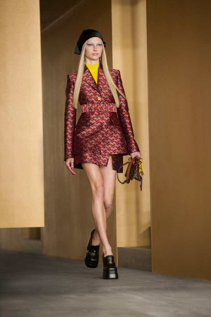 Versace’s ability to read the line with its 90s iconic moments two today’s GenZ trends it’s commendable. when this collection came out it ruled all over social media and I definitely did my part for it. the clothes were loaded with the brand’s new monogram; an attempt to ride the logomania wave. The monogram was surprisingly quite good – an immersive 3D maze print and versatile colors called ‘La Greca’. The labyrinth-like runway mirrors the monogram and creates a sense of mystery.