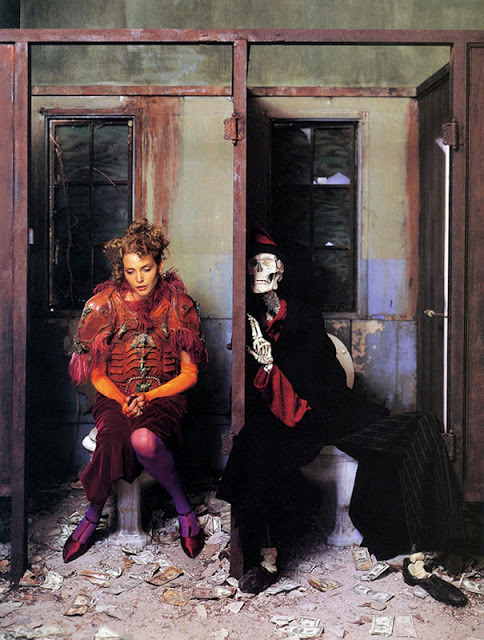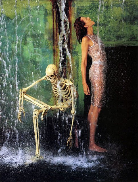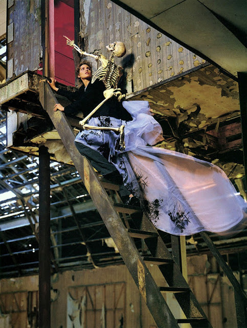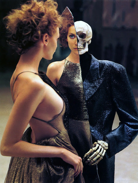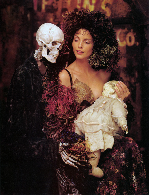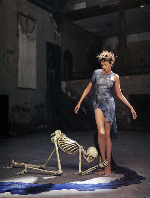 ‘In Memory of the Late Mr. and Mrs. Comfort’ Nadja Auermann & a skeleton companion photographed by Richard Avedon for The New Yorker November 1995