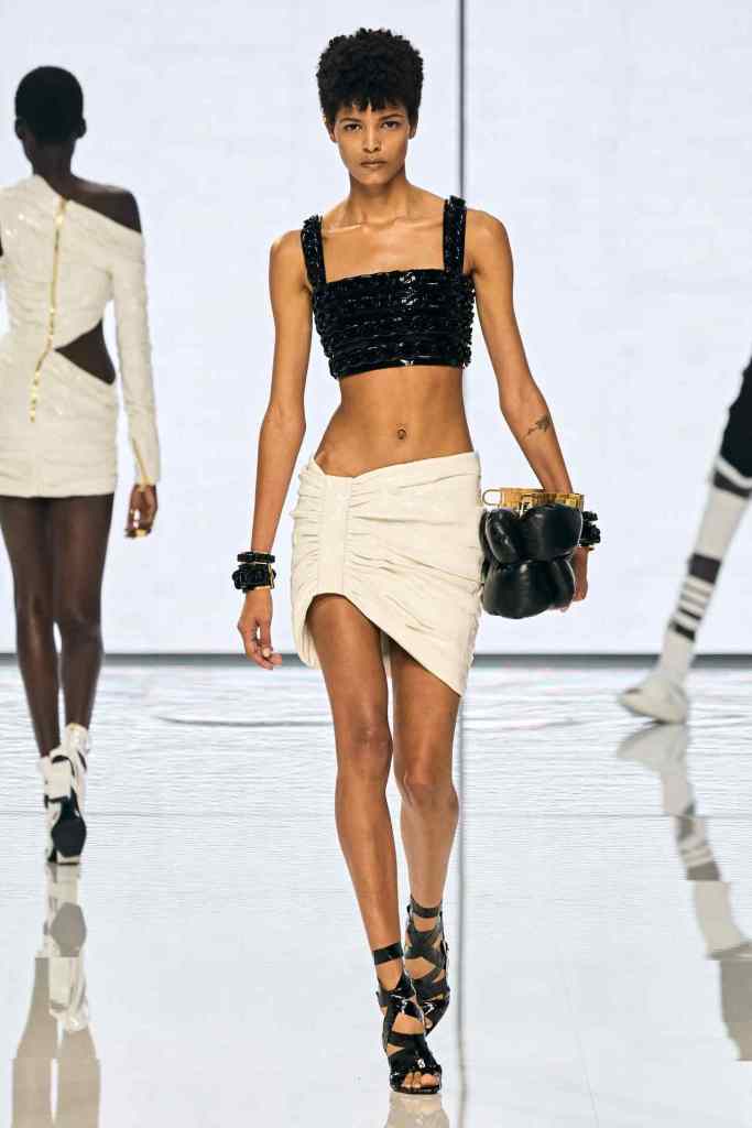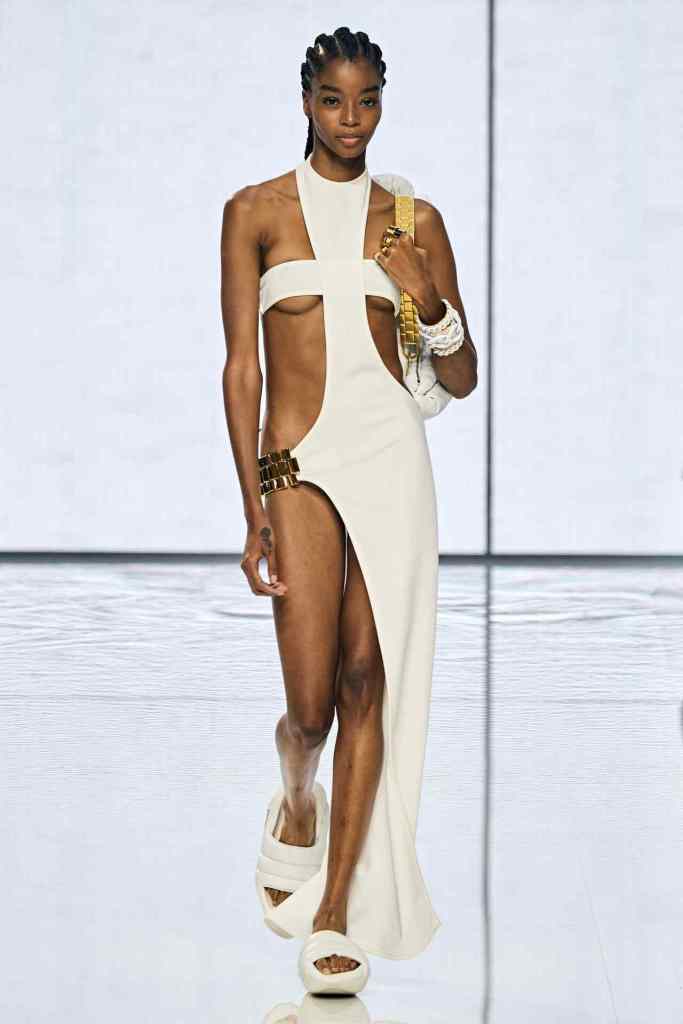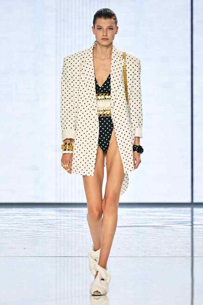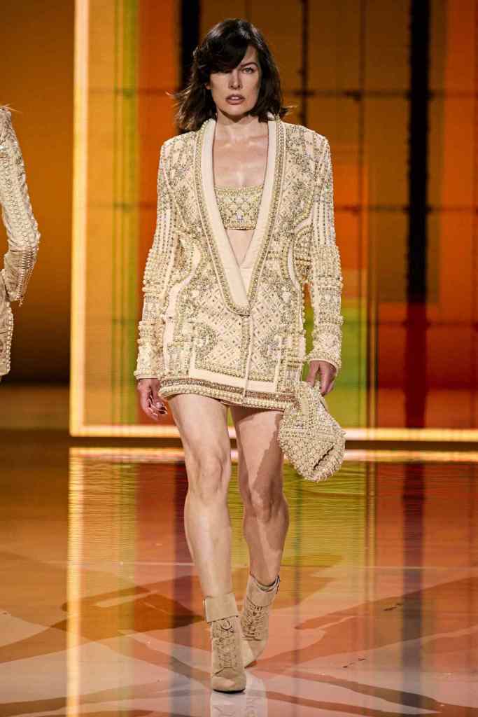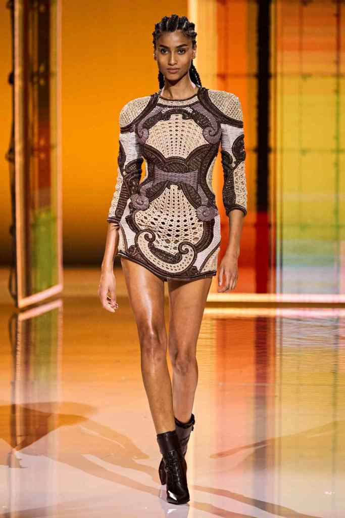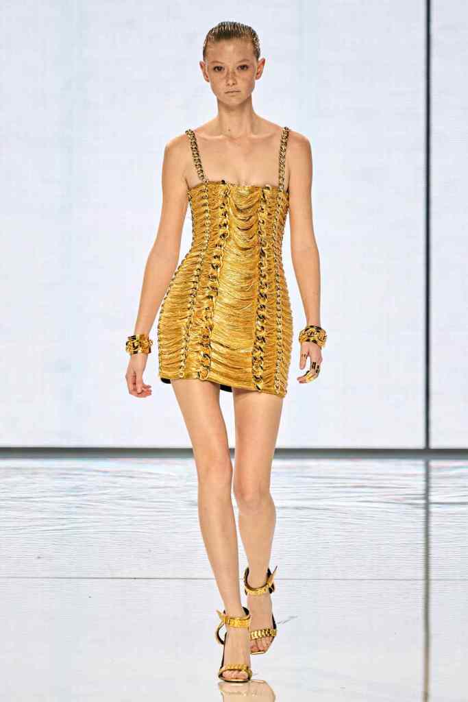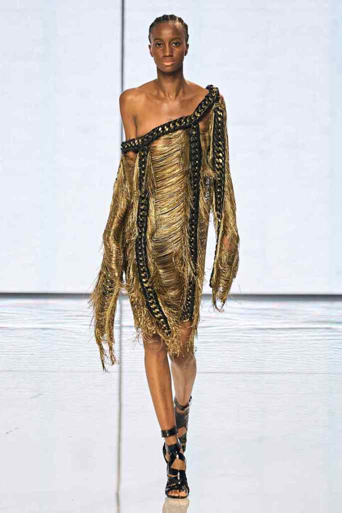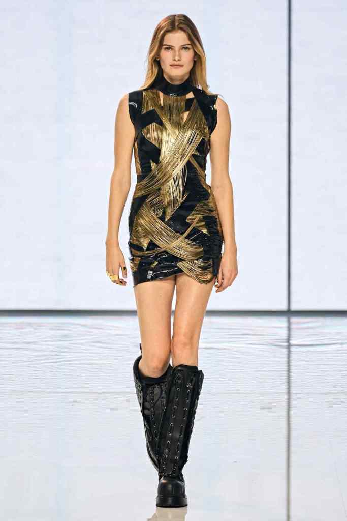 In his tenure, Rousteing has pulled off the ultimate balancing act – blending the iconic heritage while simultaneously introducing a steady stream of fresh concepts that have given him constant commercial hits. These garments are a true testament to the house’s revered savoir-faire, boasting elegant silhouettes, precise tailoring and jaw-dropping artisanship courtesy of the Balmain atelier. Most looks were paired with bold, larger-than-life gold accessories – adding to the drama and opulence.