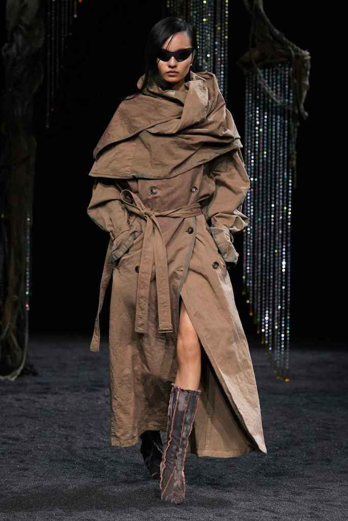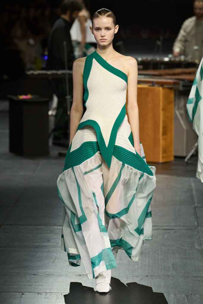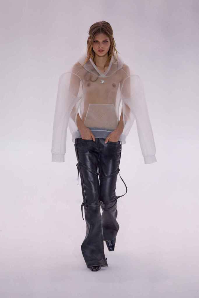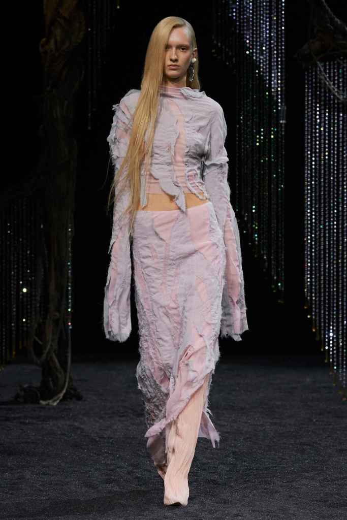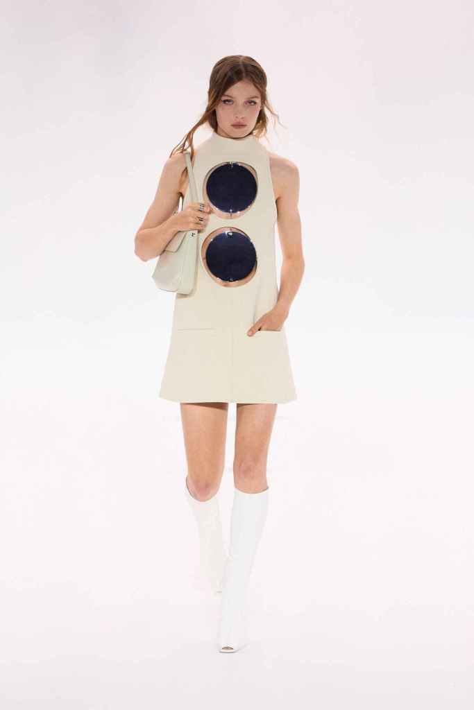 Courrèges: Nicolas di Felice Courrèges’s showcases a journey toward inner enlightenment through an evolving wardrobe. It blends rituals and daily routines to create a space that illuminates one’s true self. Nicolas presents a surreal and dystopian vision of nature, reflecting the taming of natural forces such as light, fog, and air. The ’60s-inspired collection had a space-age vibe that was reflected in the Technology blend but the futuristic set design. The show’s soundtrack features an AI voice asking if the sky is blue, a metaphor for questioning our reliance on technology. André Courrèges would have approved! Courrèges has maintained its innovative and futuristic roots under Nicolas’s leadership, which has led to the brand being fashion-forward once again. Nicolas’s designs are trendy, daring, and suited for today’s audience – what more could you need?