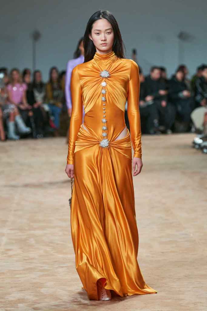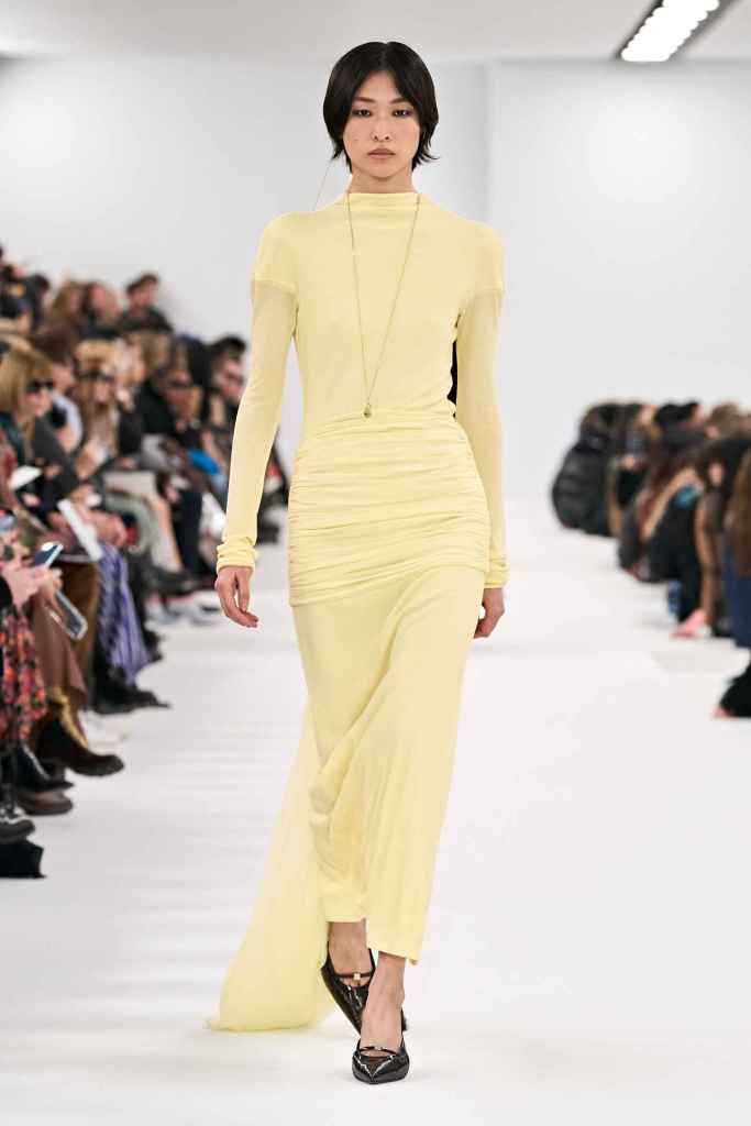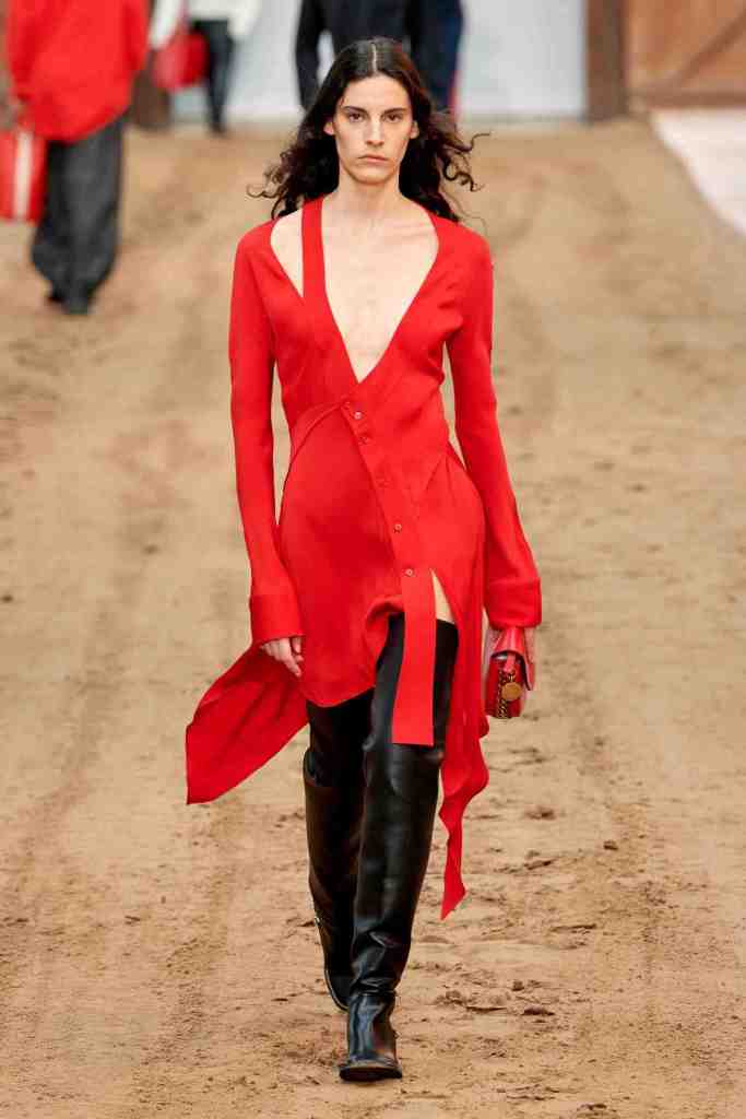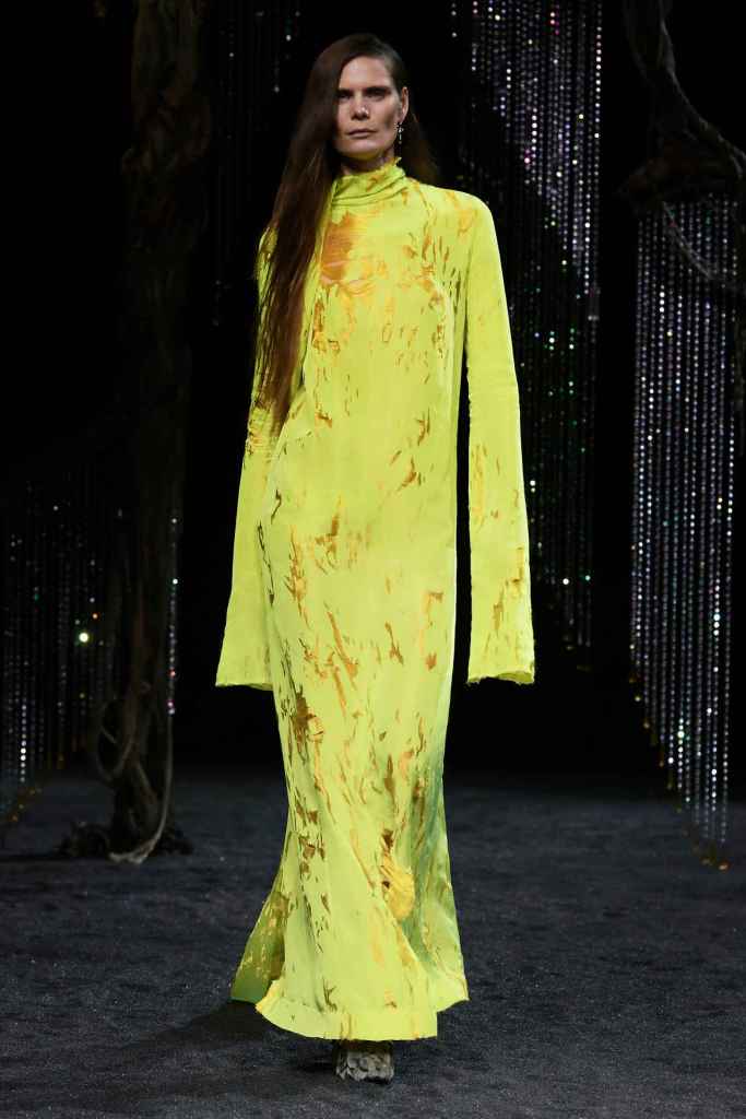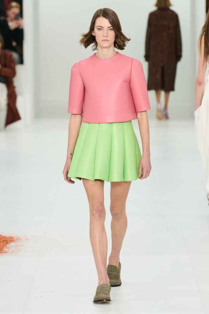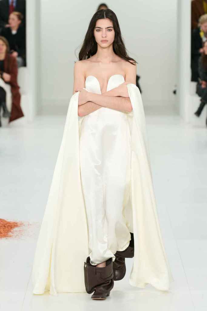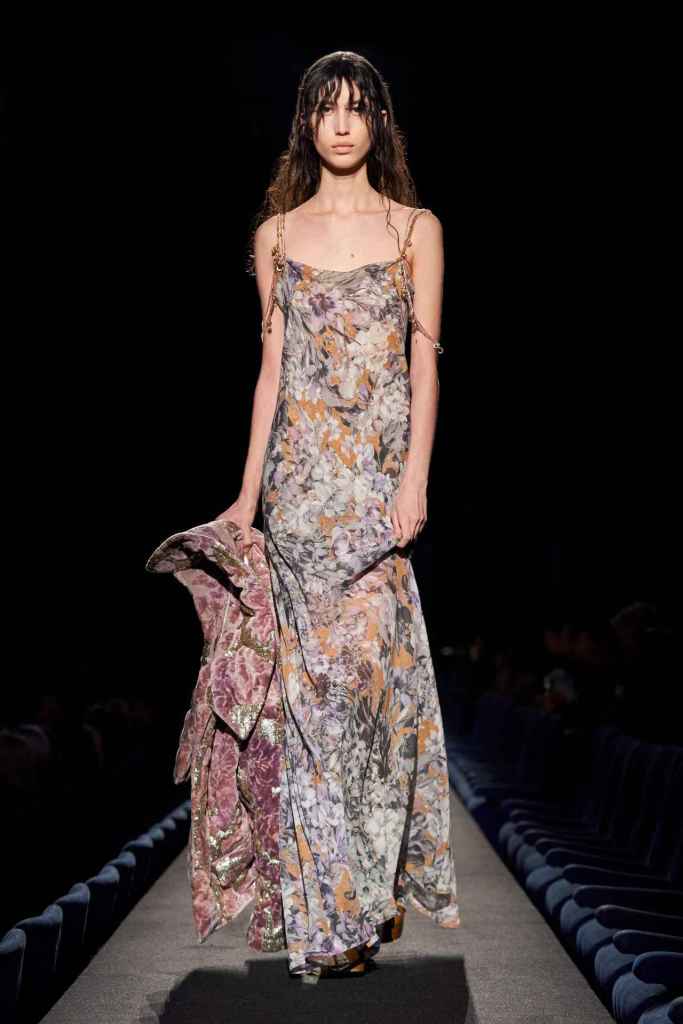 Chloe: Gabriela Hearst’s latest Chloé collection draws inspiration from Artemisia Gentileschi, a renowned Baroque painter who was often overlooked because of her gender. Hearst has a passion for telling the stories of underrepresented women, which also aligns with her focus on sustainability this season. The collection mainly features neutral shades and luxurious textures to highlight the sumptuous juxtaposition; The designs are intended to be timeless and long-lasting. Her interpretations of the collection vary from direct to more symbolic; just like the clothes reflect the multi-faceted nature of women. A standout multicolor patchwork dress all Chloe and 100% gorgeous. Hearst has successfully found and implemented the winning formula for Chloé.