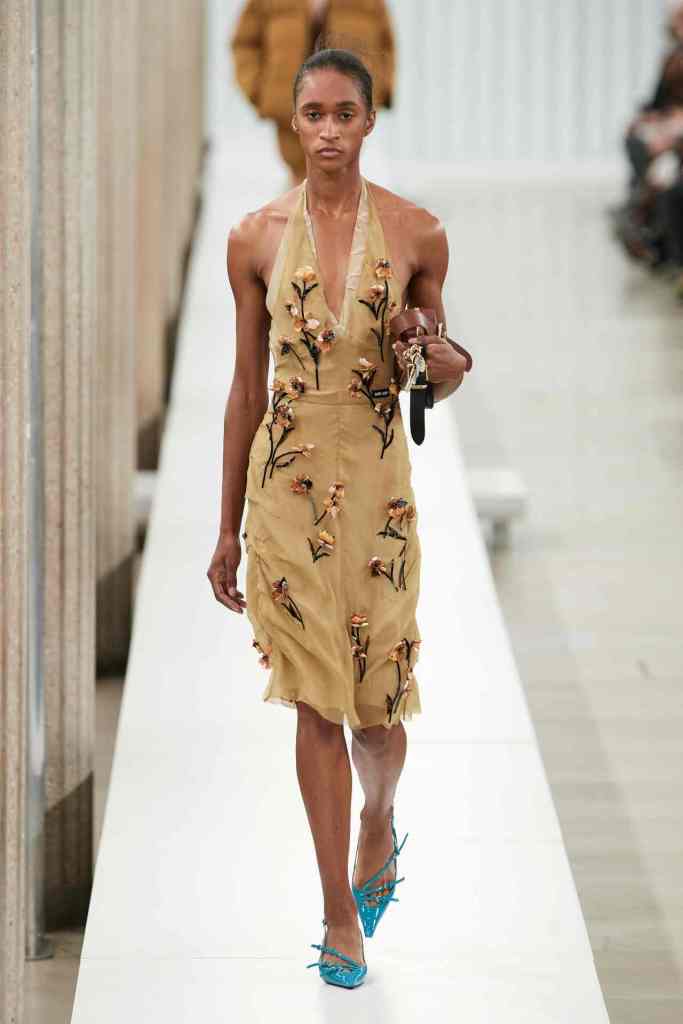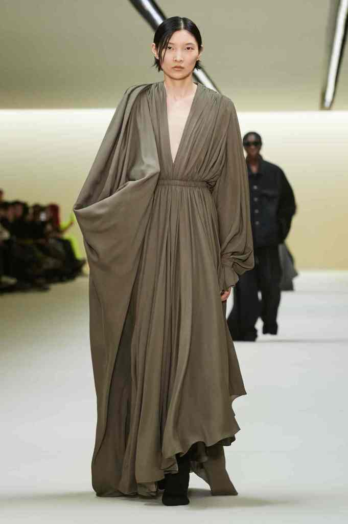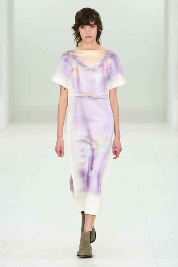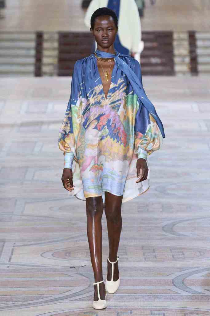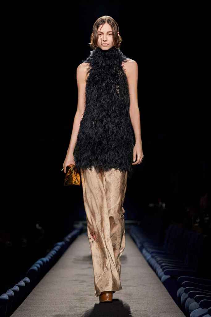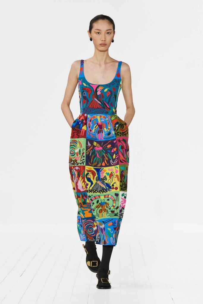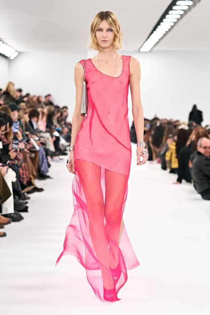 Chloe: Gabriela Hearst’s latest Chloé collection draws inspiration from Artemisia Gentileschi, a renowned Baroque painter who was often overlooked because of her gender. Hearst has a passion for telling the stories of underrepresented women, which also aligns with her focus on sustainability this season. The collection mainly features neutral shades and luxurious textures to highlight the sumptuous juxtaposition; The designs are intended to be timeless and long-lasting. Her interpretations of the collection vary from direct to more symbolic; just like the clothes reflect the multi-faceted nature of women. A standout multicolor patchwork dress all Chloe and 100% gorgeous. Hearst has successfully found and implemented the winning formula for Chloé.