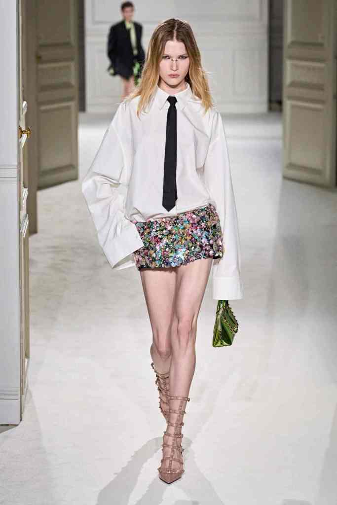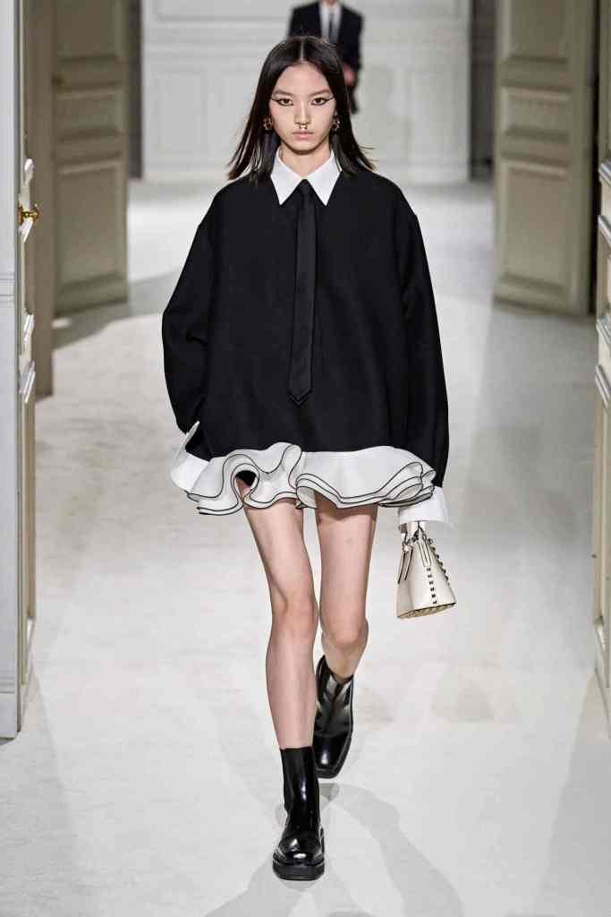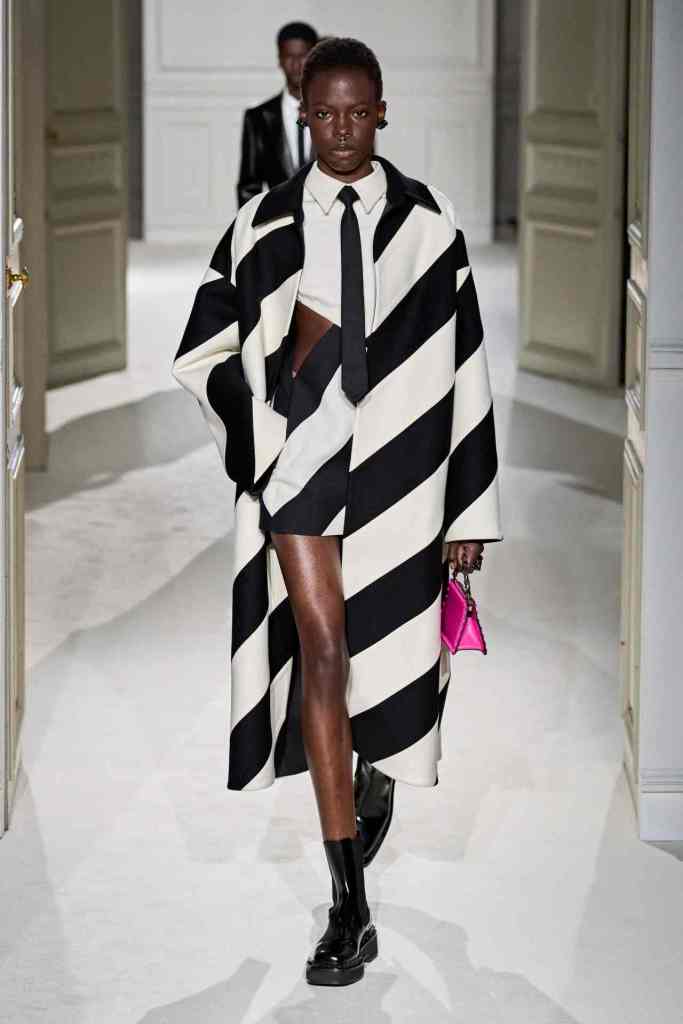 Valentino: The collection redefines modern black tie with 73 looks that reinvent classic formal staples such as the little black dress, tuxedo suit, and white button-down. Piccioli’s talent lies in transforming these timeless pieces into new and desirable items that feel relevant. The collection emphasizes tailoring, practical daywear, and a minimal color palette, balancing the Maison Valentino’s heritage with a dynamic aesthetic. This is perfectly exemplified by how Piccioli took the necktie, typically seen as a representation of conformity and redundancy, and reimagined it as a symbol of individuality and self-expression in countless ways. The show notes said “Black Tie. Here, a literal description, a codification, not a code.” This collection truly captures the energy of Valentino. This is why we love Piccioli