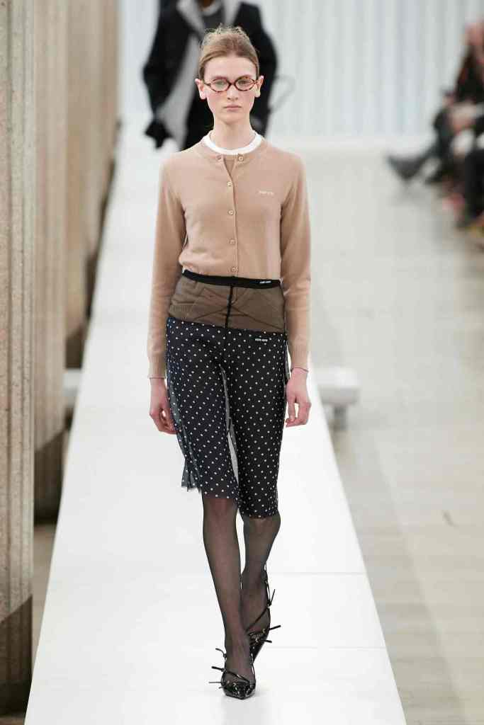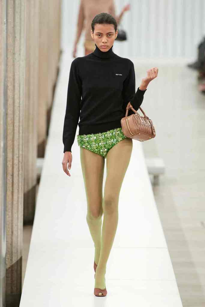 Miu Miu: The concept of observation impacts ideas of what is concealed and what is explored. Sheer chiffon fabric provides glimpses of typically hidden clothing items which necessitates a more attentive examination. The collection revolved around themes of autonomy, self-awareness, and dignity. Miuccia Prada is not afraid to poke fun at the fashion industry’s obsession with looking good, forgetting that clothes are also supposed to be functional and empowering. She’s sticking with her signature ugly-but-cool aesthetic, no matter what. While this collection was barely close to Prada’s past seasons at Miu Miu, the clothes were ultra-sensual and carried an aura of youth. These were items you would want in your closet – add some fun, add some statement.