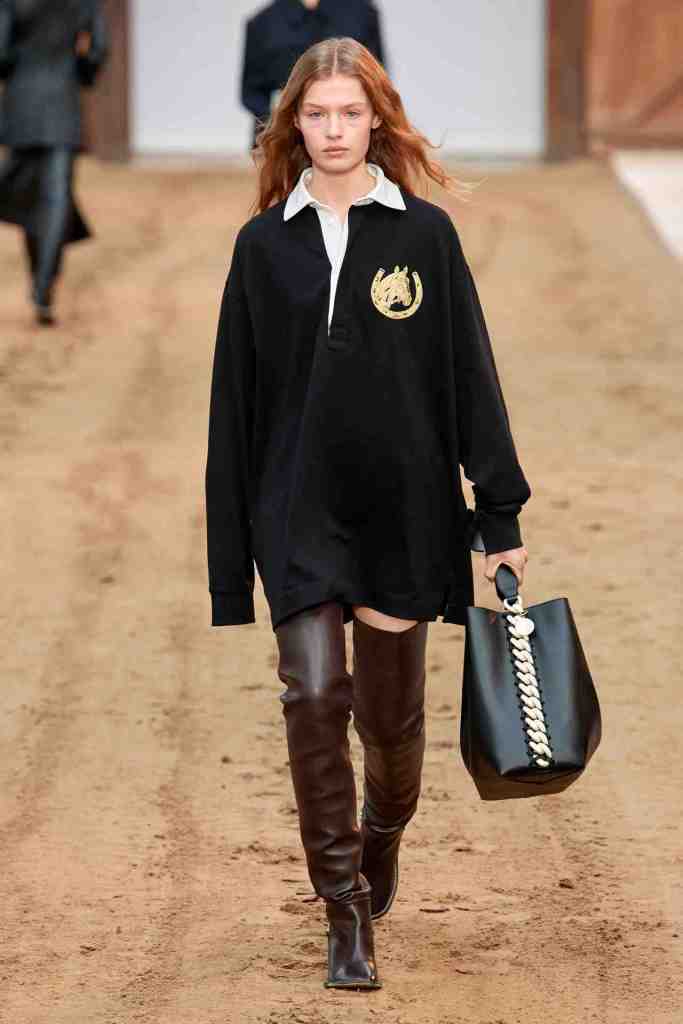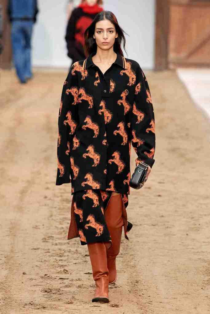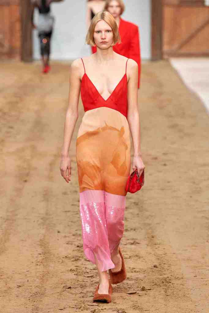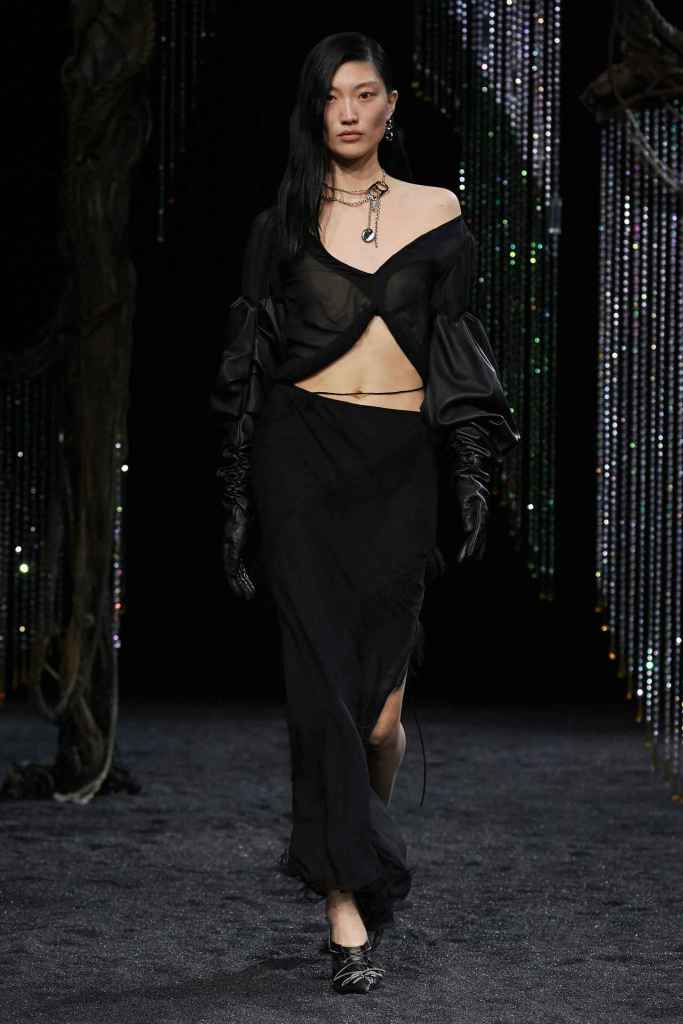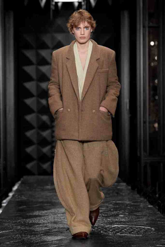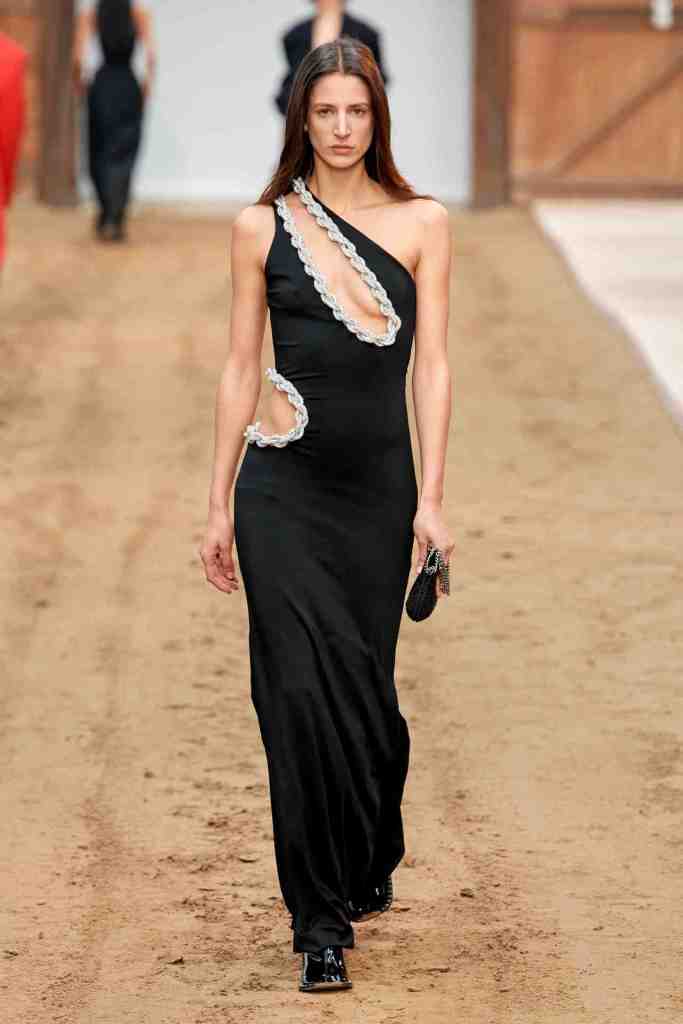 Stella McCartney: Titled “Horse Power’, Stella McCartney organized a horse show at the oldest riding school in France, featuring a captivating performance by wild horses. The clothes collection features a predominantly earthy color scheme. The designer emphasizes classic silhouettes such as two-piece suits and midi skirts, thigh-high boots paired with mini-skirt and dress slits and a lot of bedazzled chains adorning various pieces. Soft yet powerful tailoring elevated the looks with a touch of sophistication and sincerity with a much-needed fun touch of Y2K. McCartney has remained steadfast in her commitment to the brand’s sustainability values. This collection, made from 89 percent responsibly-sourced materials, reflects this dedication. All in all; Sublime Clothes that I’d die to wear!