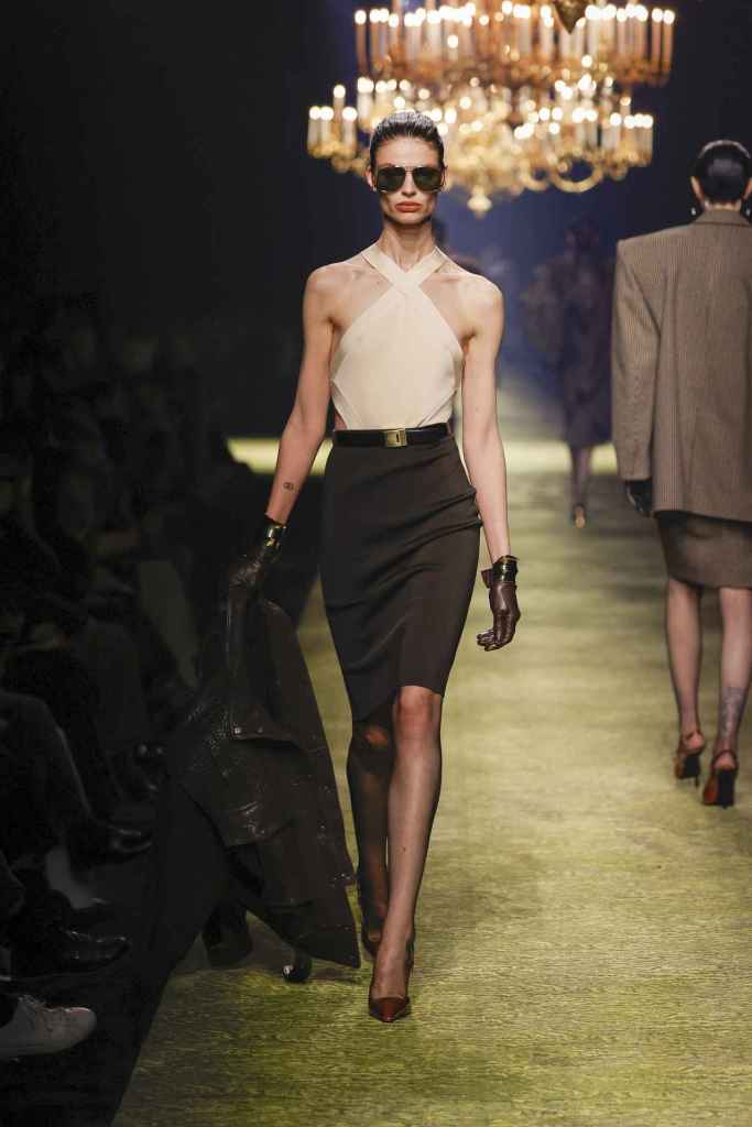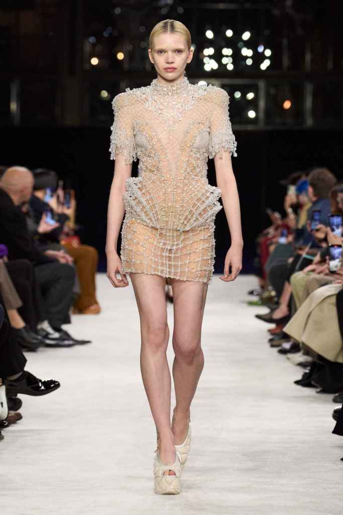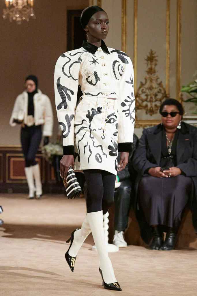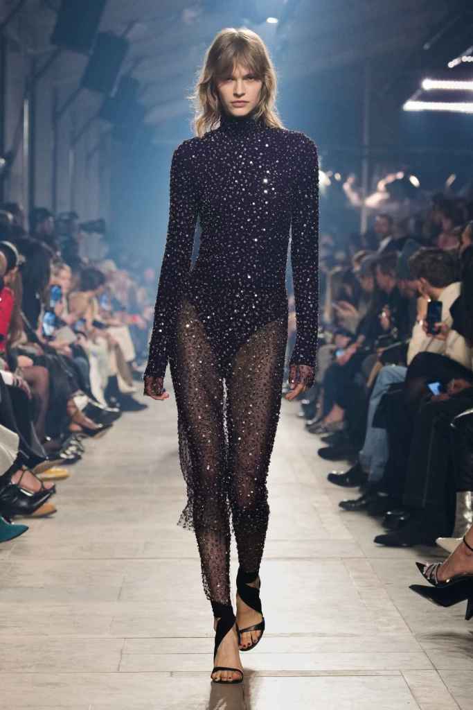 Balmain: Olivier Rousteing pays homage to Pierre Balmain and his luxurious French style that defined the brand decades ago. The collection reflects on Balmain’s lengthy history while simultaneously looking at the future. The archives of Balmain reveal that Pierre Balmain’s passion for architecture heavily influenced his work. Balmain often highlighted the connection between the work of an architect and that of a couturier. It draws inspiration from historical cues to showcase the transformational journey of the Balmain legacy. In contrast to the prevalent streetwear trend, Rousteing’s collection showcased elegance and timelessness, emphasizing the importance of quality and craftsmanship in the new gen of fashion. The clothes featured impeccable tailoring with feminine sensual necklines, elegant problems, tuxedo-inspired dresses, monogrammed pieces and suede suiting. The show featured a few heavily pearl-embellished looks toward the end. Bravo, Balmain!