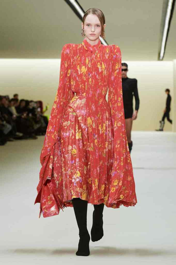 Balenciaga: Balenciaga made a comeback after a publicized advertising scandal with this collection, and the creative director, Demna, wanted to refocus on the art of making clothes. The show featured incredible shapes and innovative tailoring, with classic Balenciaga signatures such as high-necked sequin gowns and big-shouldered blazers. It was notably devoid of the brand’s controversial gimmicks. Overall, the show represented a return to the brand’s origins, with a somber tone. One could even be confused between this collection and his earlier Balenciaga work. Coming to the clothes – sharply tailored, big silhouettes and restrained colors (with some lively floral dresses of course). The clothes indeed were well made; just like the designer intended. But maybe it’s too soon to like Balenciaga again. I am still not over some of the wildly unnecessary antics; takes more than one collection to truly believe.