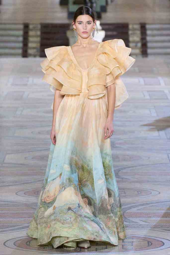 Zimmermann: Taking inspiration from the artworks of Australian painter Rupert Bunny, Nicky Zimmermann incorporated them into her designs this season. This collection exhibits her deliberate effort to blend fresh designs with established favorites. Zimmermann’s signature designs get a relaxed update with tweed, leather, and wool layers. Delicate dresses are paired with blue jeans peeking out from beneath the sheer layers to create a standout fusion look. The collection’s laid-back vibe and denim focus make it an easy choice for effortless dressing this season. The collection represents the merging of art and fashion, demonstrating Zimmermann’s talent for designing garments that strike a balance between being unpretentious and luxurious. If this is a glimpse of what’s to come, then I can’t wait for future Zimmermann.