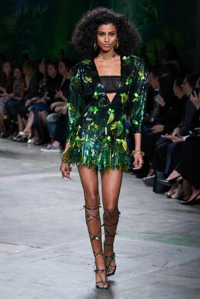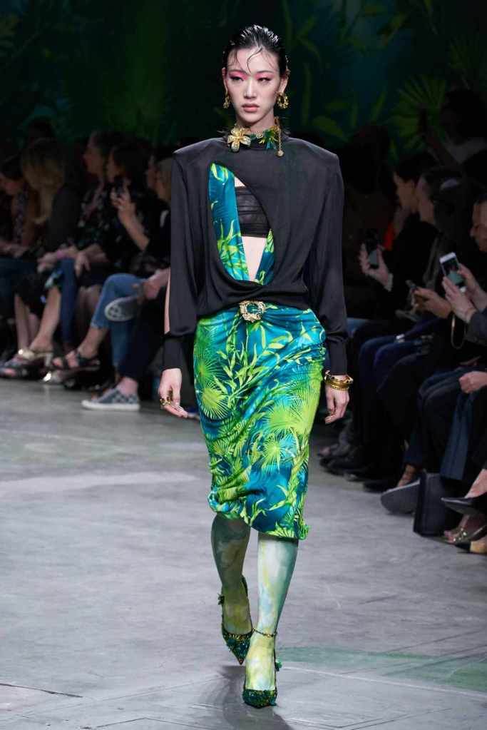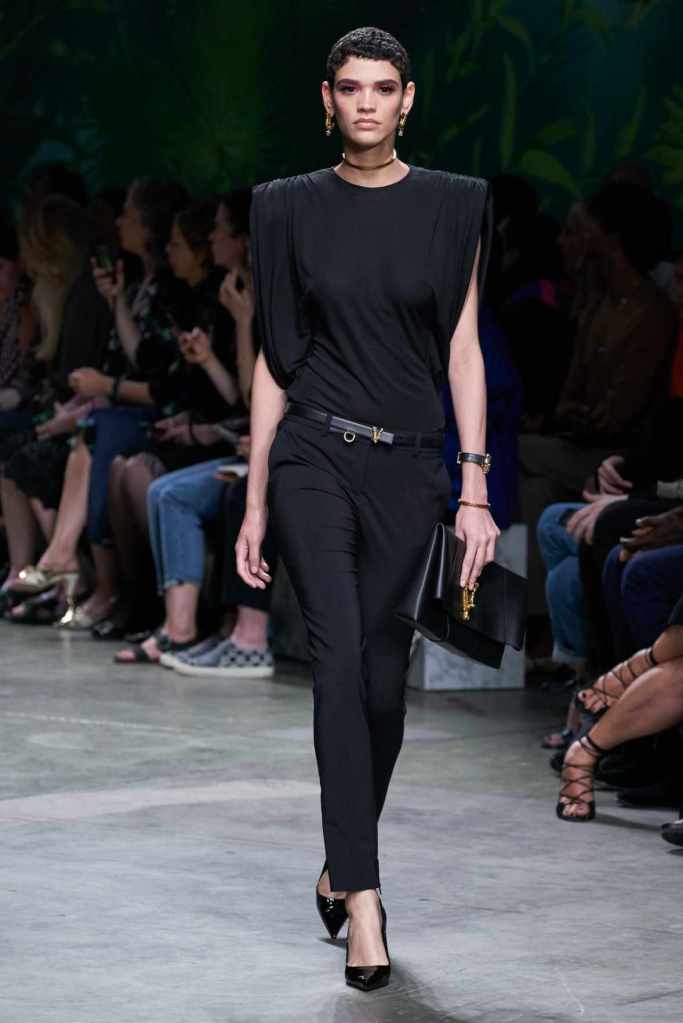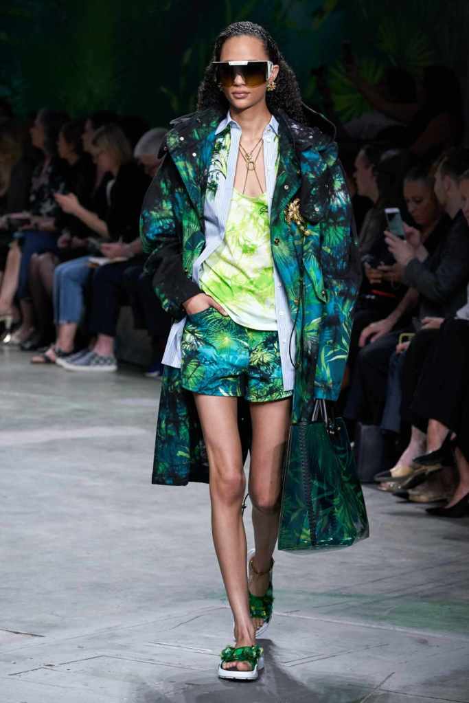 Donatella killed it with this collection, bringing that signature Versace ultra-sexy energy to new heights. Each piece exuded sophistication and elegance, leaving no doubt that they were Versace masterpieces. The sharp and sexy designs felt relatable with a late ’90s vibe. The cool-girl collection had everything a Versace woman could need, from strong-shouldered jackets and button-downs to little black dresses with signature gold hardware. The denim, tie-dye, and jungle print in classic green and bold new pink, red, and orange combos gave a casual-but-polished feel. Through it all, the collection maintained its modern spirit, giving the Versace woman a feeling of power and strength no matter the occasion.