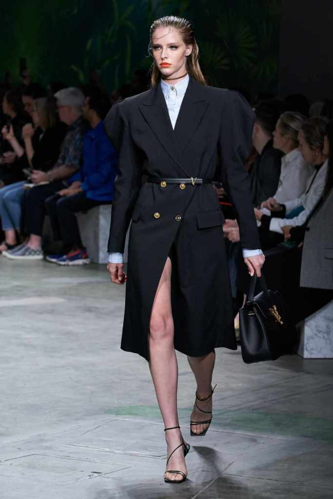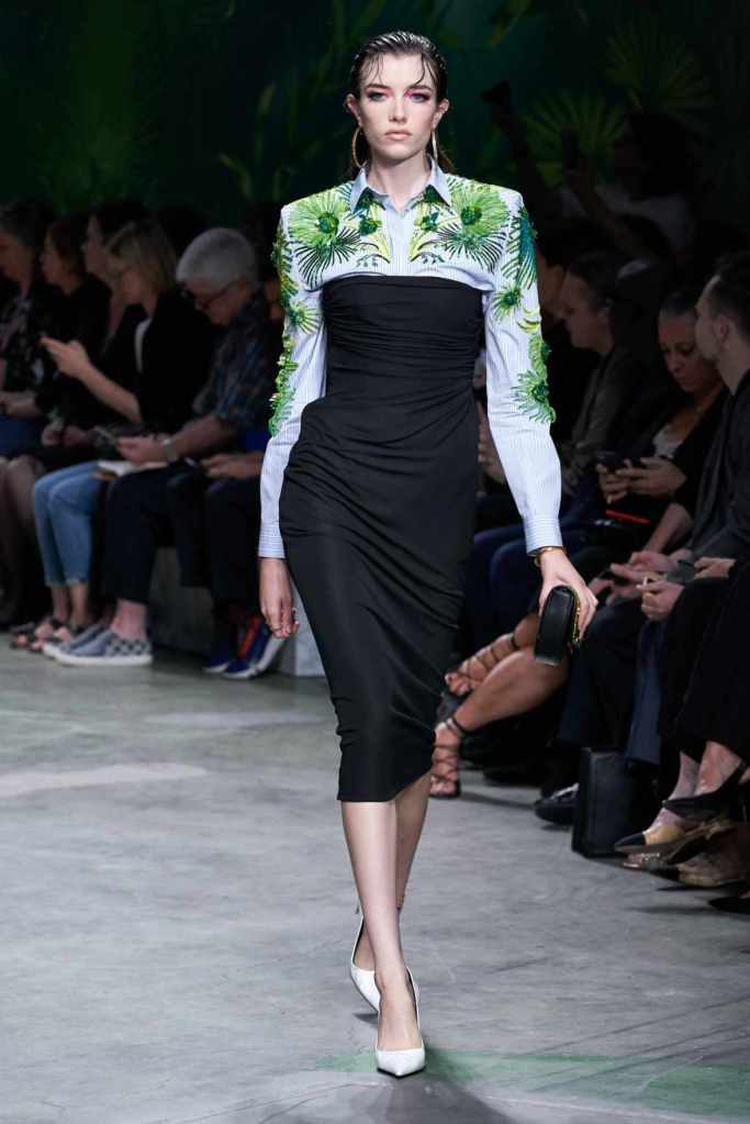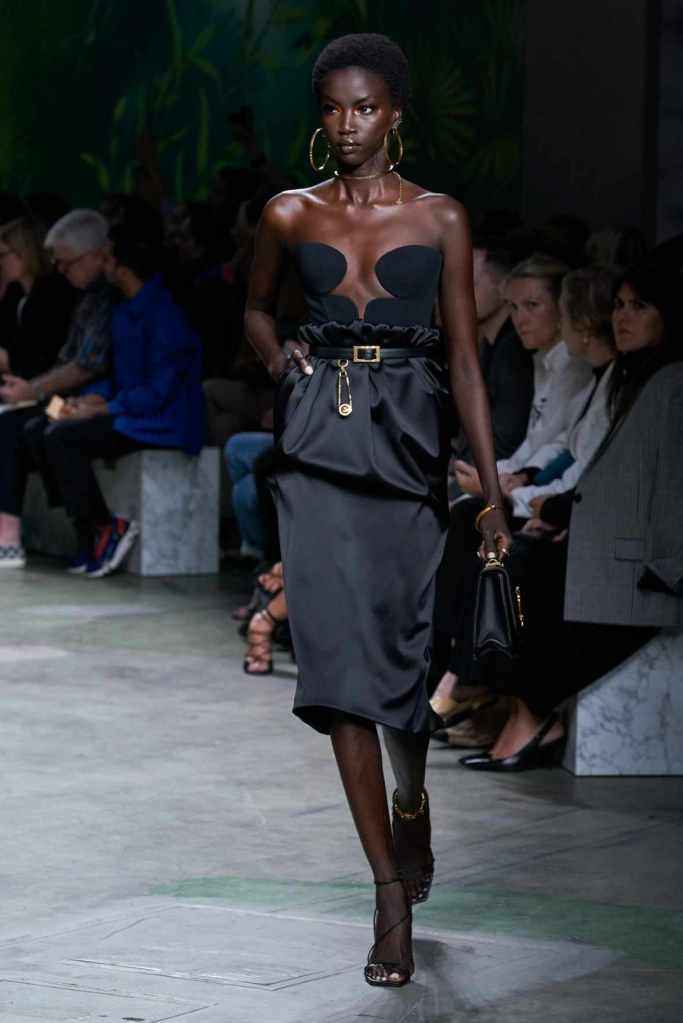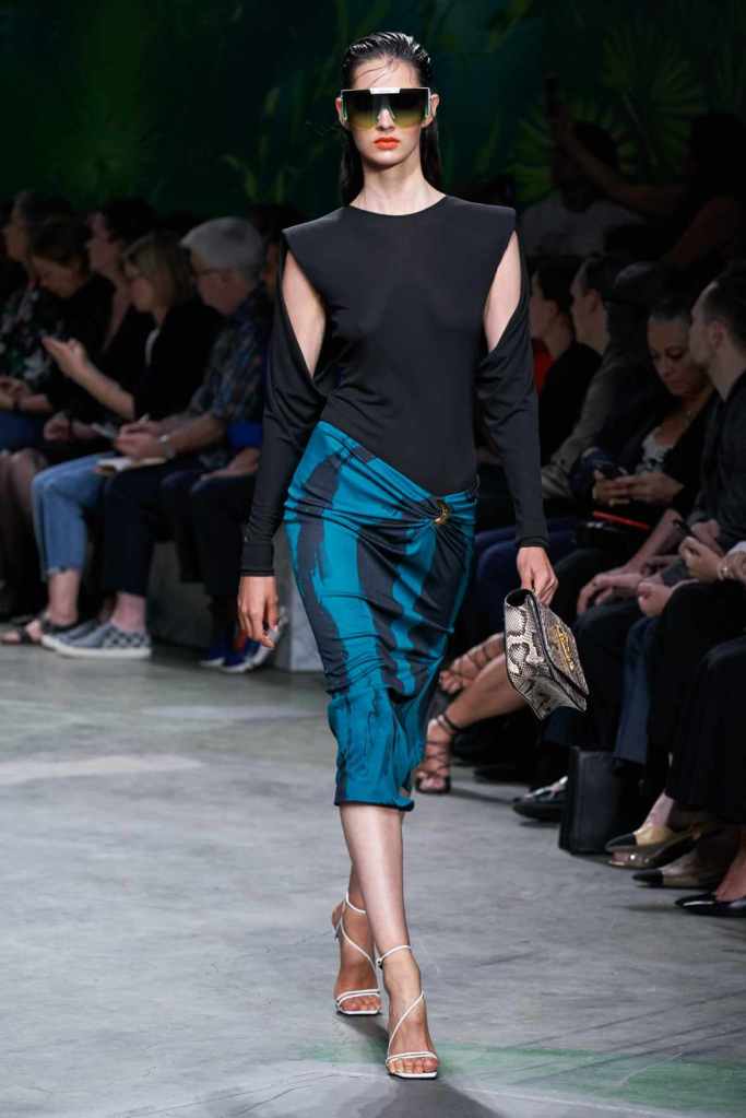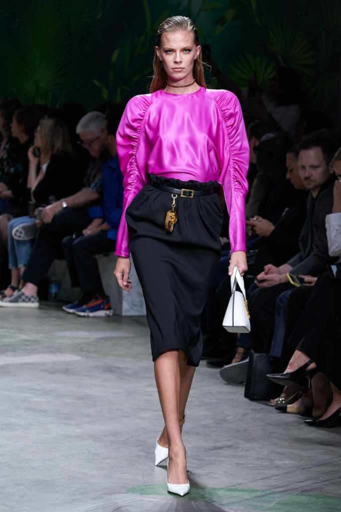 Donatella killed it with this collection, bringing that signature Versace ultra-sexy energy to new heights. Each piece exuded sophistication and elegance, leaving no doubt that they were Versace masterpieces. The sharp and sexy designs felt relatable with a late ’90s vibe. The cool-girl collection had everything a Versace woman could need, from strong-shouldered jackets and button-downs to little black dresses with signature gold hardware. The denim, tie-dye, and jungle print in classic green and bold new pink, red, and orange combos gave a casual-but-polished feel. Through it all, the collection maintained its modern spirit, giving the Versace woman a feeling of power and strength no matter the occasion.