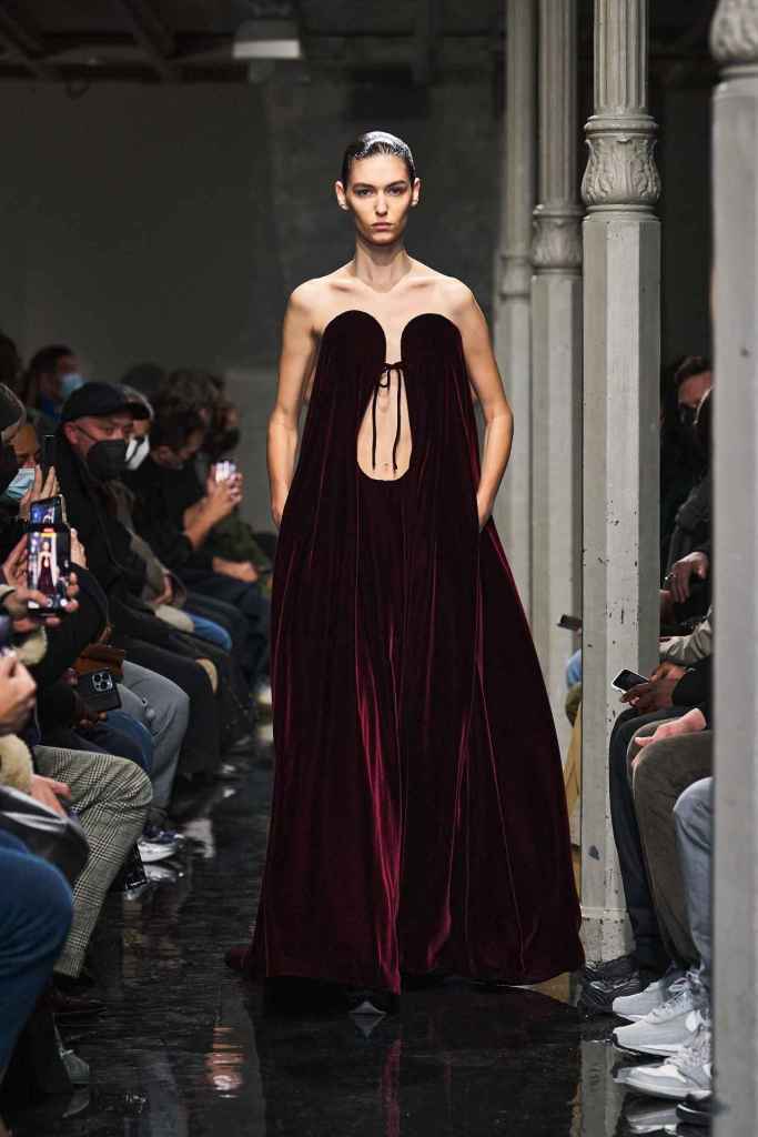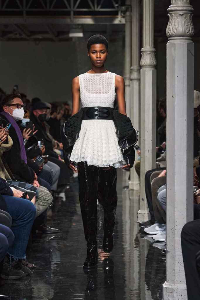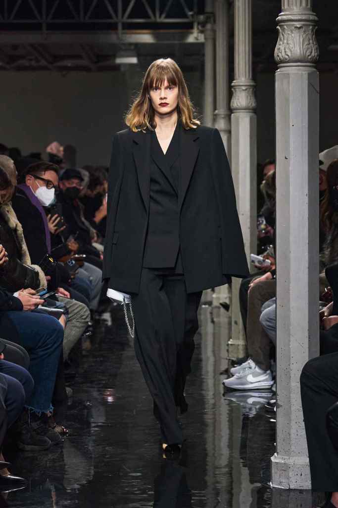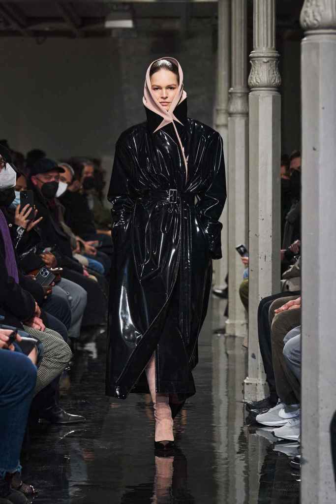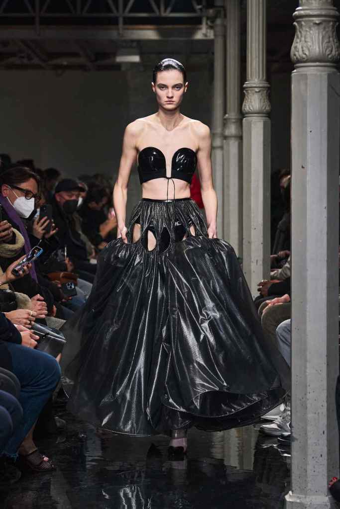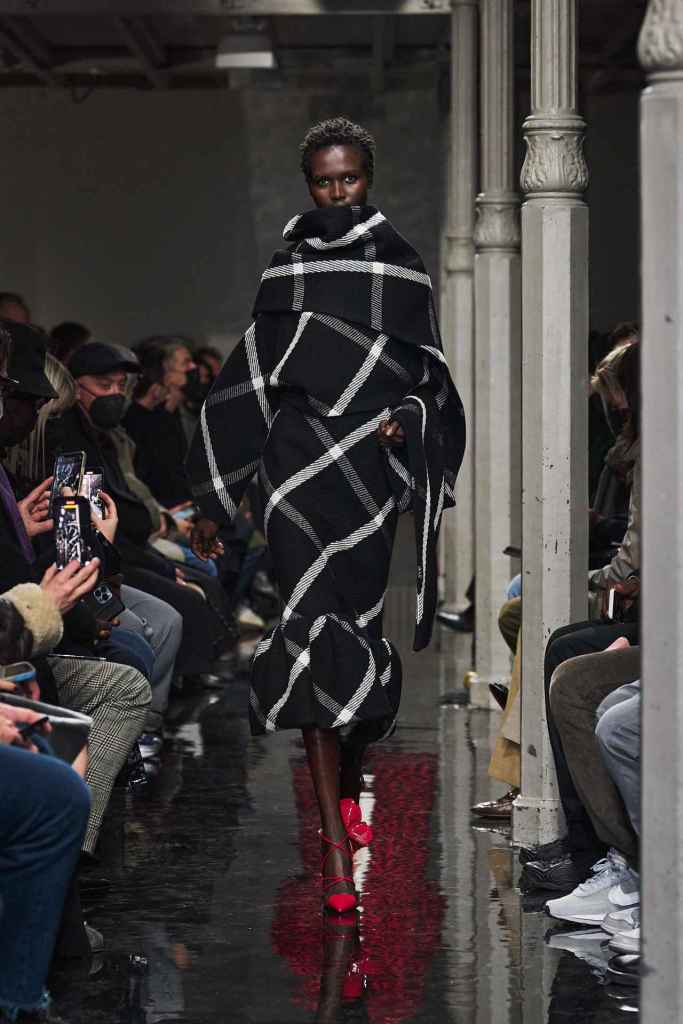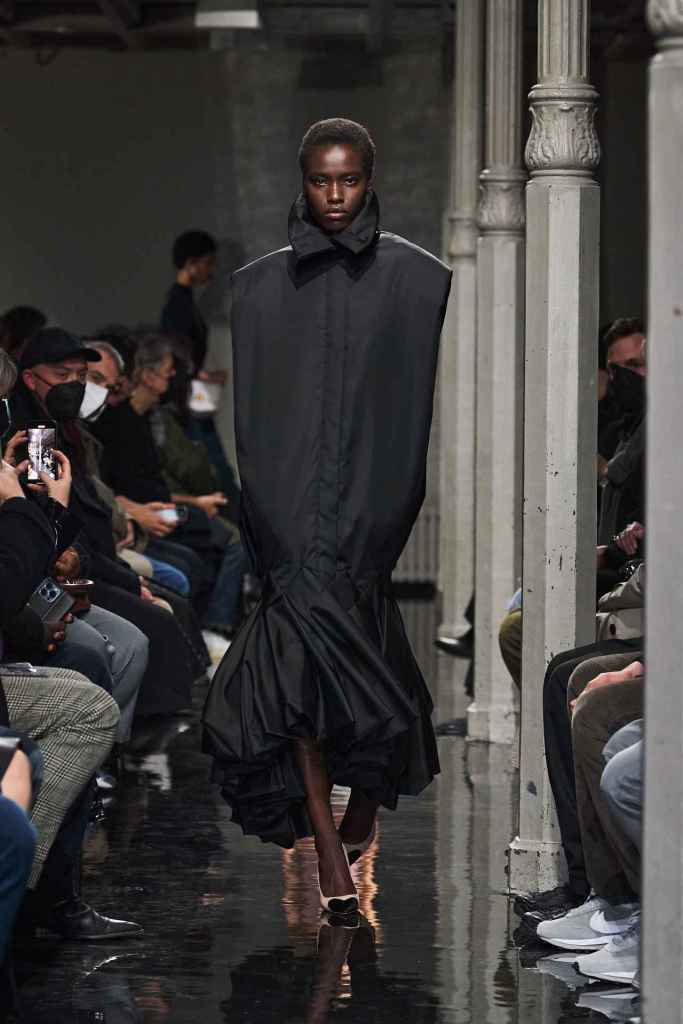 This collection features extreme proportions, avant-garde cuts, and impeccable tailoring techniques. We were blessed with new proportions and voluminous structures that defy all norms. The color game was restrained and sophisticated – white, black, and nude reign supreme. The clothes boasts boxy yet tailored coats, cinched silhouettes, and flowy bottoms that will leave you in awe. Maxi, fluffy, voluminous pant legs are reminiscent of Spanish-inspired skirts. Exaggerated necklines, hoods, and coat lapels set the stage for more experimental and technical pieces, teasing at the brand’s new direction. The outwear plays with oversized lines borrowed from menswear while maintaining a bold feminine silhouette.