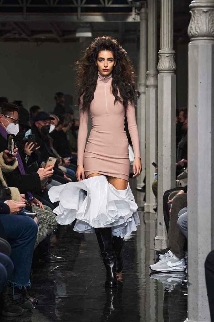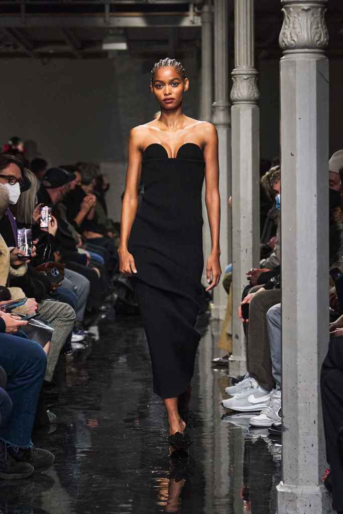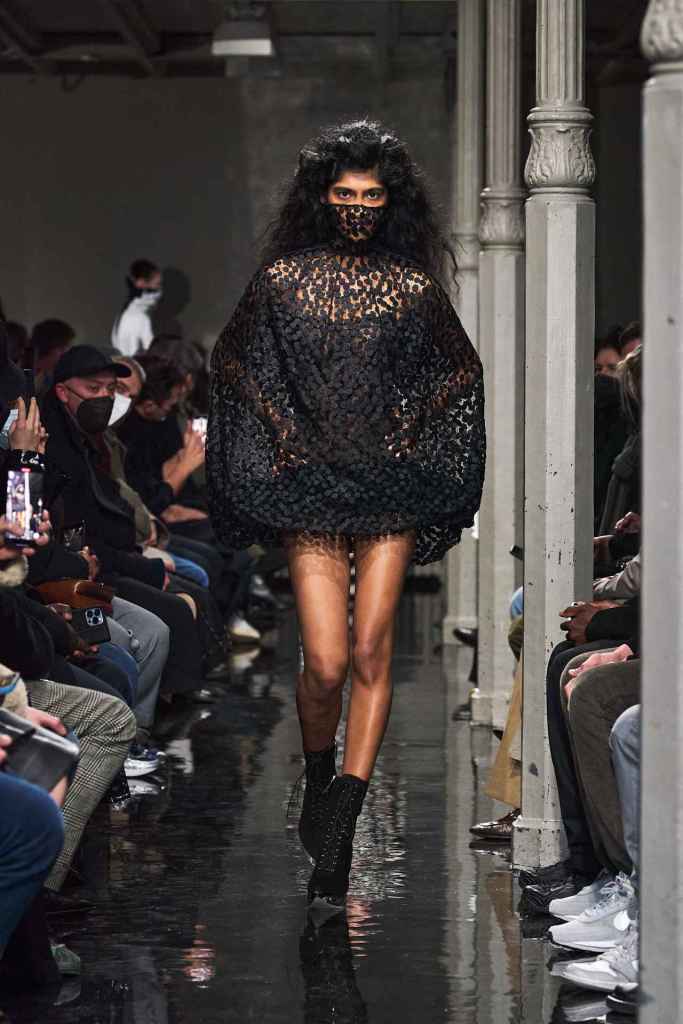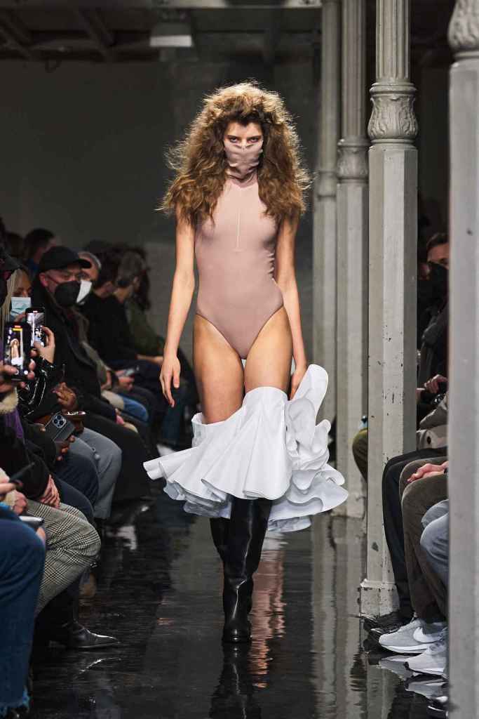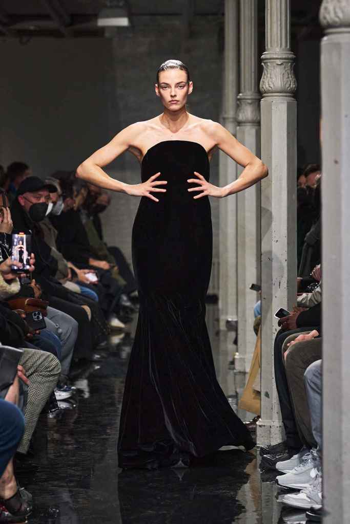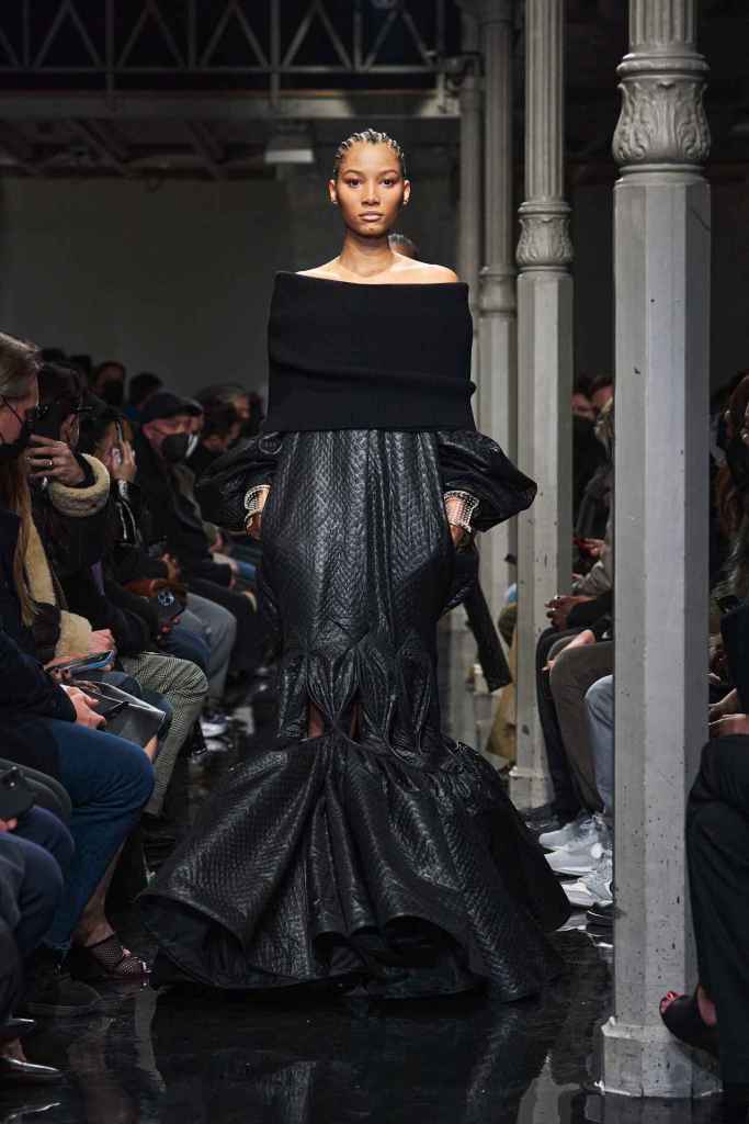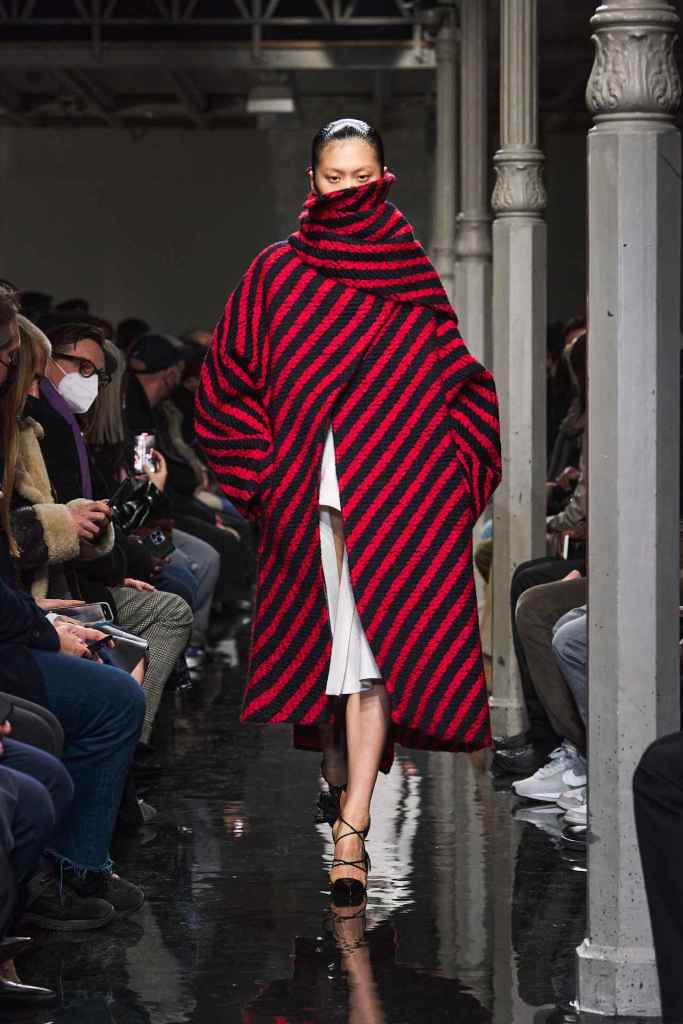 This collection features extreme proportions, avant-garde cuts, and impeccable tailoring techniques. We were blessed with new proportions and voluminous structures that defy all norms. The color game was restrained and sophisticated – white, black, and nude reign supreme. The clothes boasts boxy yet tailored coats, cinched silhouettes, and flowy bottoms that will leave you in awe. Maxi, fluffy, voluminous pant legs are reminiscent of Spanish-inspired skirts. Exaggerated necklines, hoods, and coat lapels set the stage for more experimental and technical pieces, teasing at the brand’s new direction. The outwear plays with oversized lines borrowed from menswear while maintaining a bold feminine silhouette.