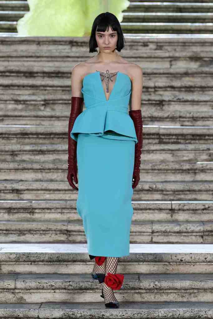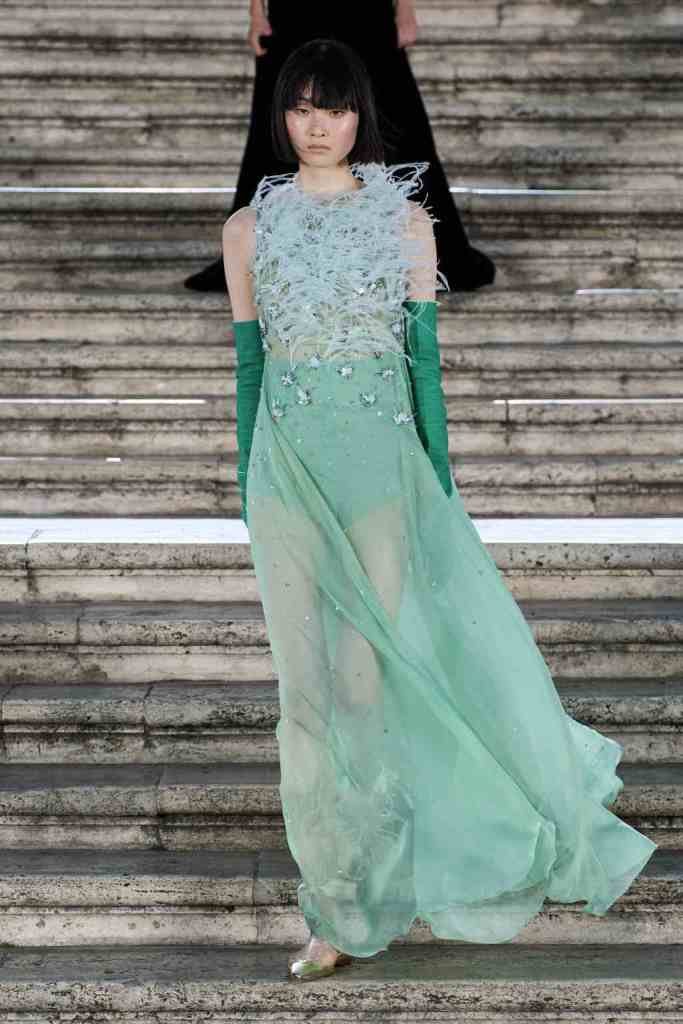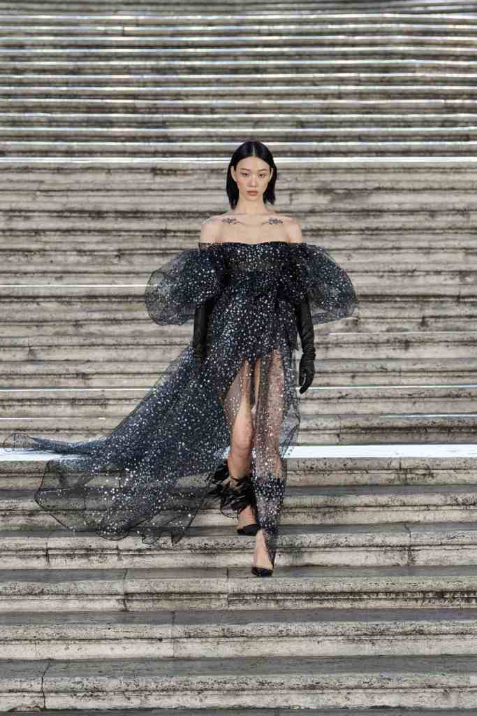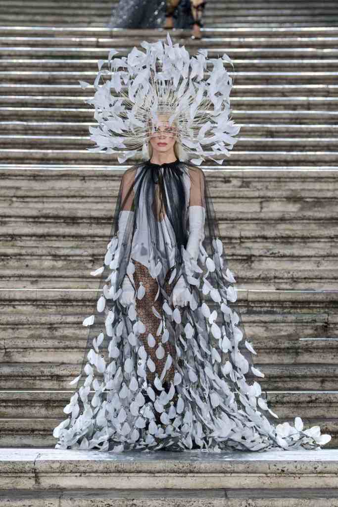 Valentino, a quintessential Italian brand, fearlessly embraces grand gestures and celebrates the city’s Alta Moda heritage. This collection is a tribute to both the past and the future, showcasing the skill of the designer and Valentino atelier. Piccioli stands out by impressing with both technique and inspiration, rather than simply showcasing craftsmanship or historical revival. While he often manages to resurrect the golden-age of couture, he leaves us breathless too. Pierpaolo Piccioli truly outdid himself.