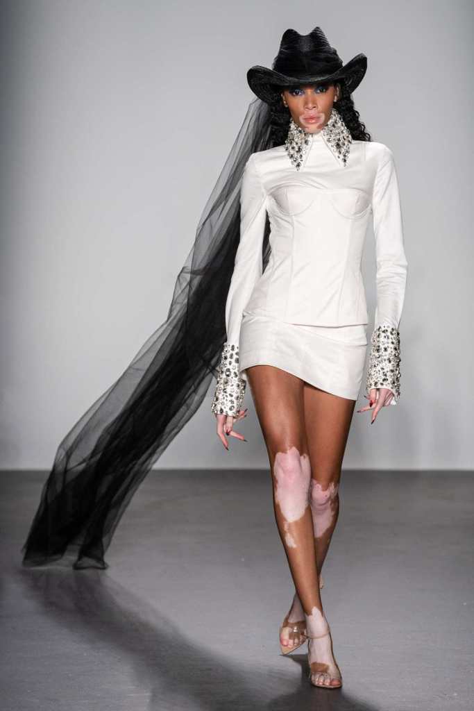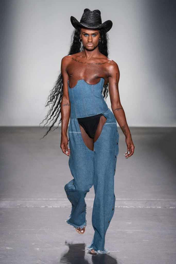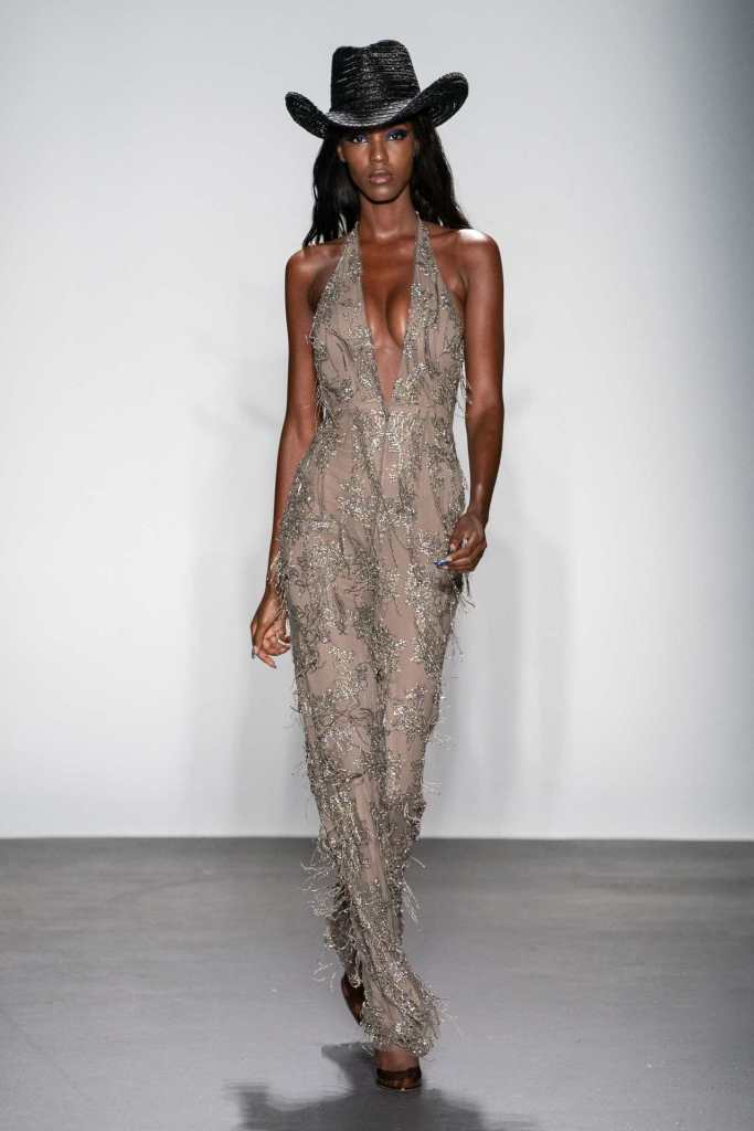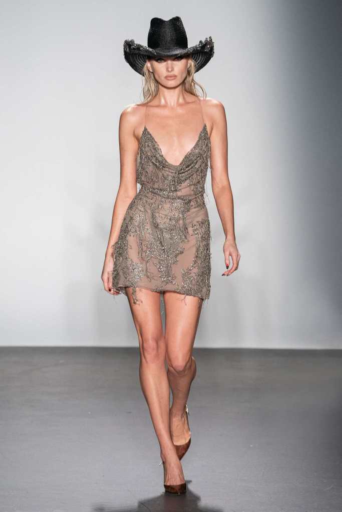 it was a celebration of empowered women who aren’t afraid to embrace their inner badass. His haute ‘hoedown’ theme brought a fresh twist to western-inspired fashion, combining rugged leather, distressed denim, and cowboy boots with feminine frills, lace, and lingerie-inspired details. The collection included hats, belt buckles, and corsetry, and standout pieces incorporated lingerie into evening wear with French-cut bodysuits, fringed slips, and pearl-encrusted boy shorts.