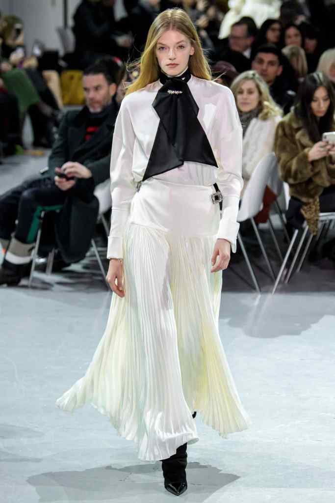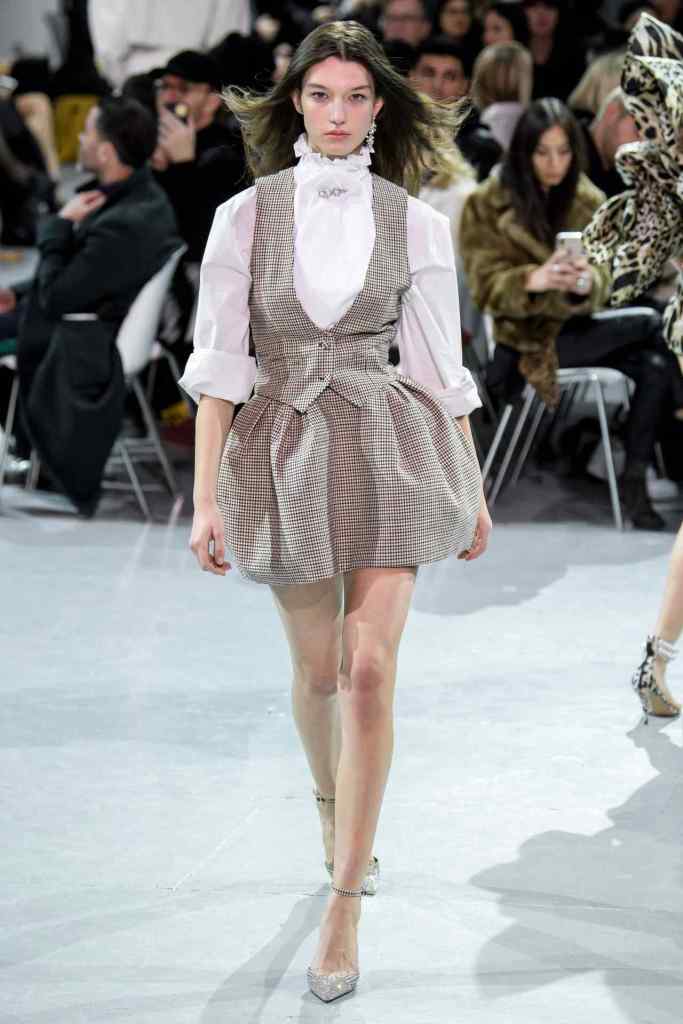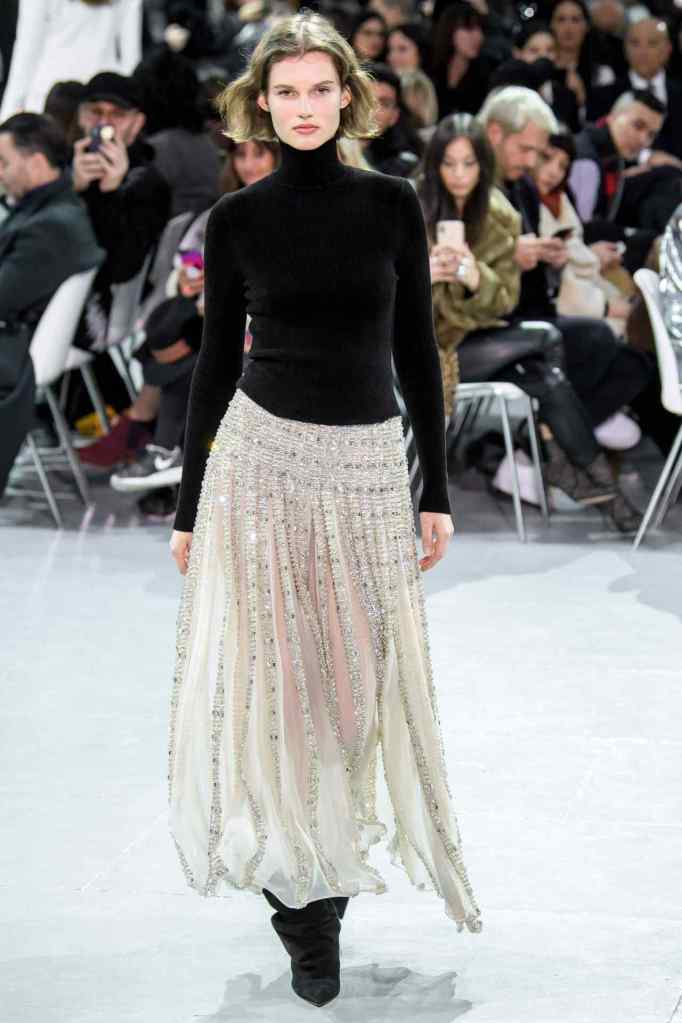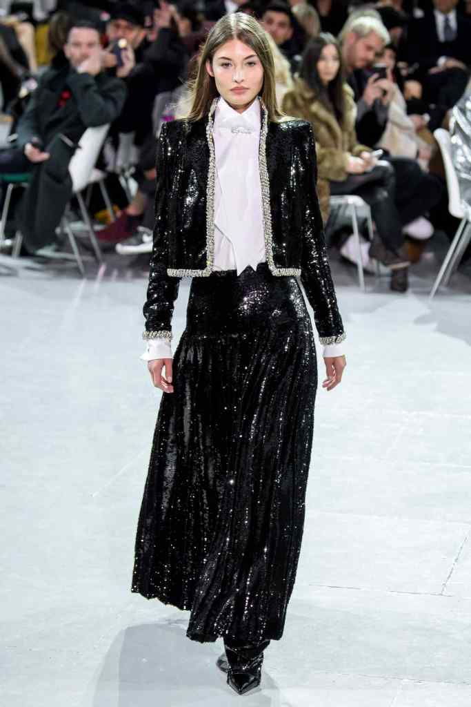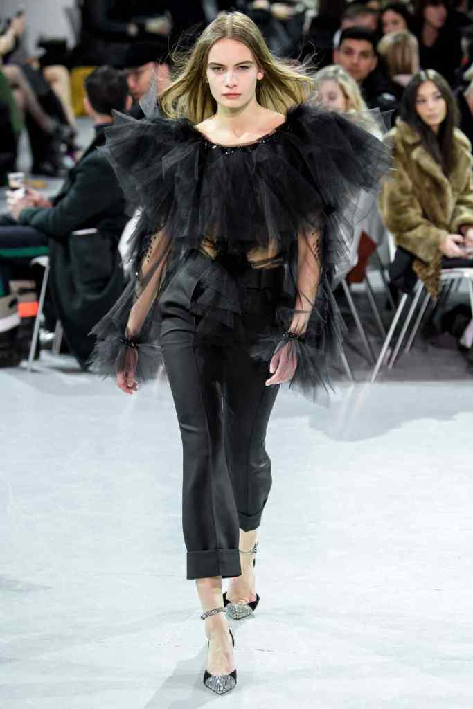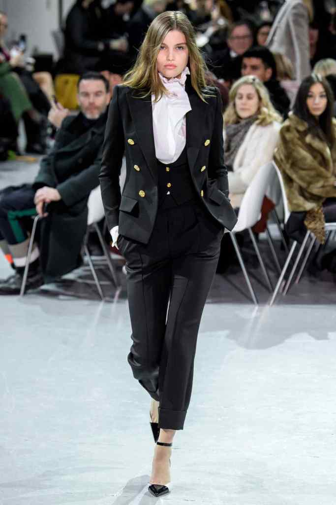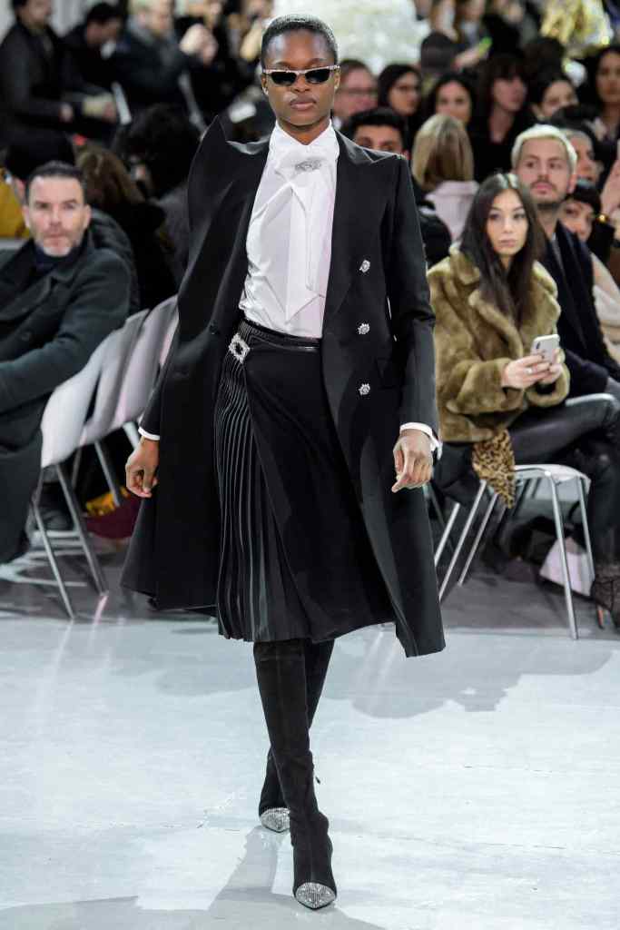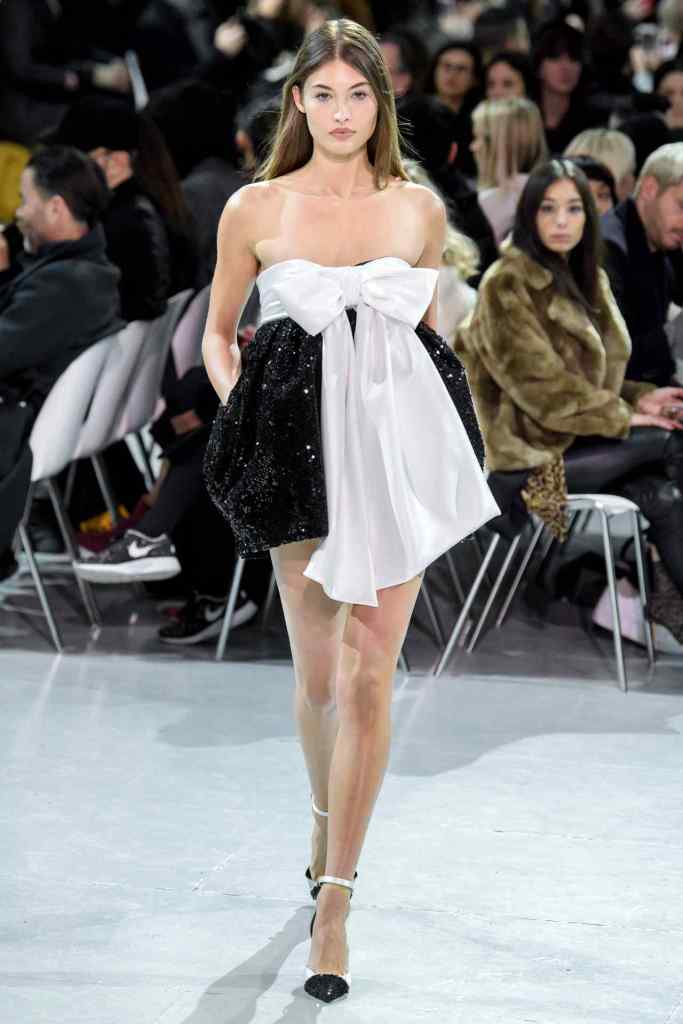 Vauthier’s collection embodies French glamour with a focus on allure, tailoring and balance between restraint and glamour. The silhouettes range from 60s-inspired styles balancing masculine and feminine accents. Ruffles, bows and scarfs were used for detailing throughout the collection. The collection also features a more fluid and sensual silhouette inspired by Françoise Hardy, with sharply tailored pantsuits. Dramatic glamour bodysuits also make their mark in this collection. A white satin button-down with massively billowing sleeves remains one of my favorite pieces to date along with a striking green shimmery dress with coordinated boots. For me, this collection was a turning point in Vauthier’s trajectory; this collection solidified his contemporary unique take on traditional French glam.
