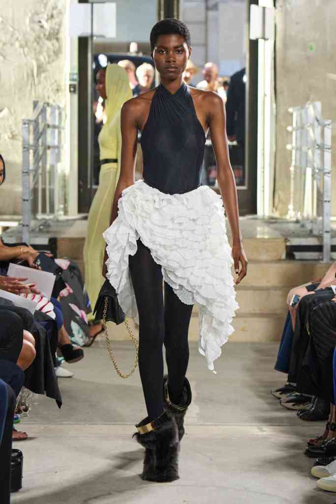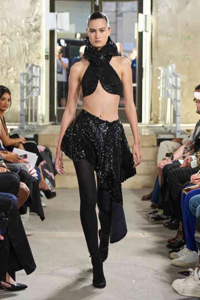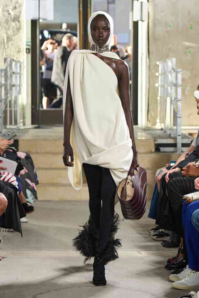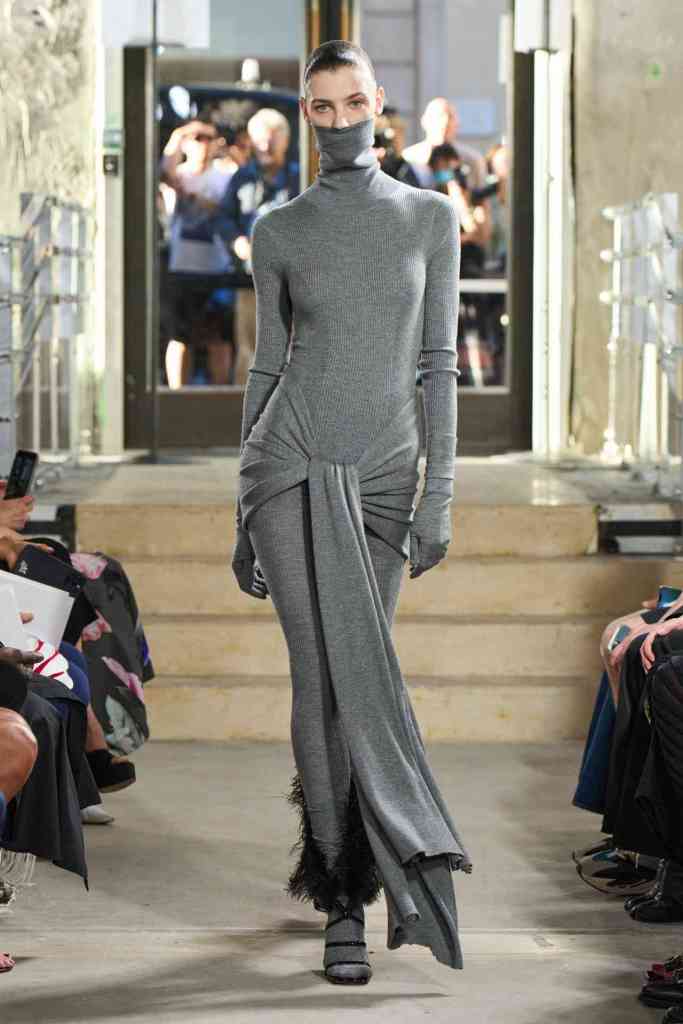 It’s all about simplicity and complexity at the same time. Rooted in the traditions of haute couture, Alaïa combines the meticulousness of tailoring with the freedom of fabric that moves with the body. The collection featured delicious draping, sheer fabrics and second akin silhouettes. Some standout items were impeccably crafted outerwear, pearl-loaded necks, tempting midriff cutouts and elegant mermaid skirts. From jersey to leather to sequins – every material was draped precisely. Mulier adds a timeless touch to every look, reminding us that Alaïa’s legacy is always thriving.