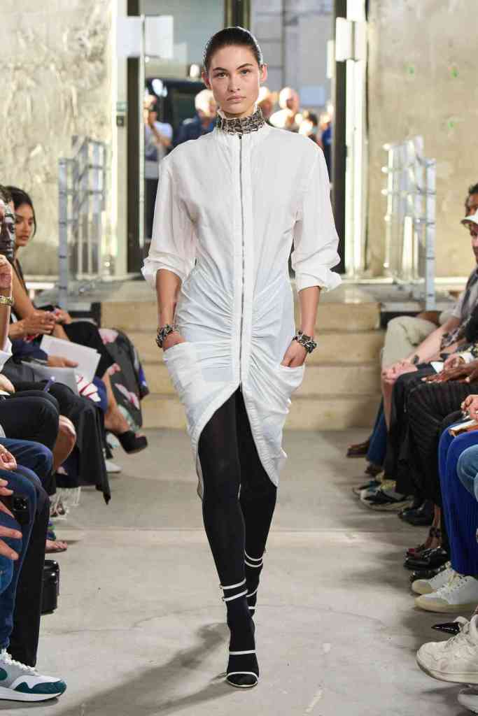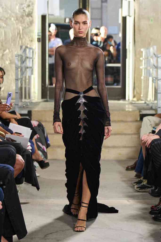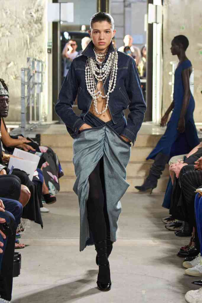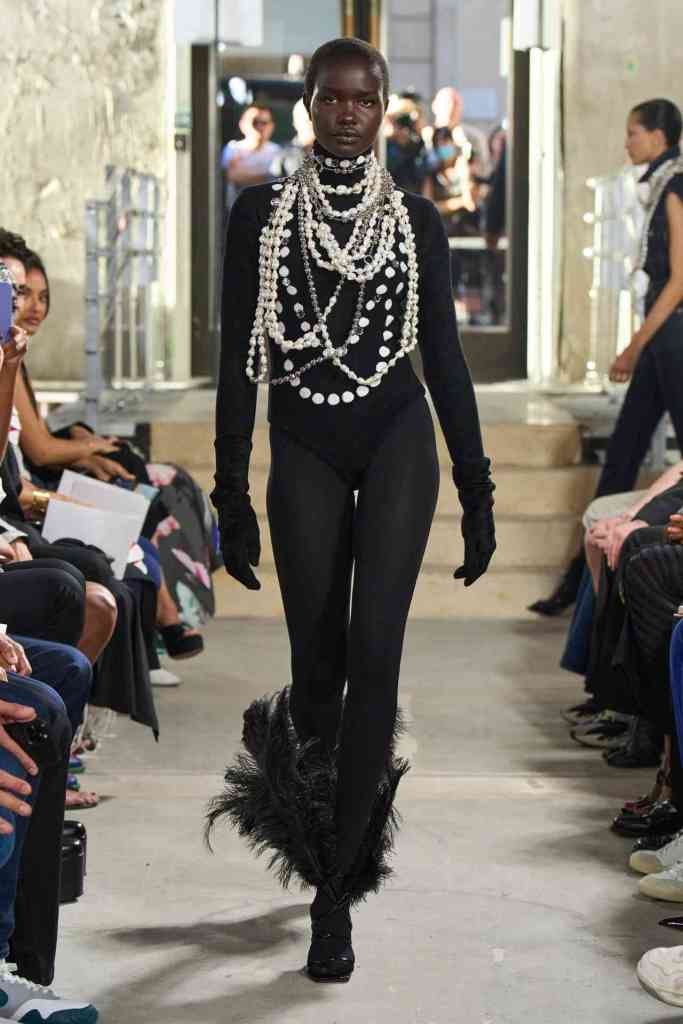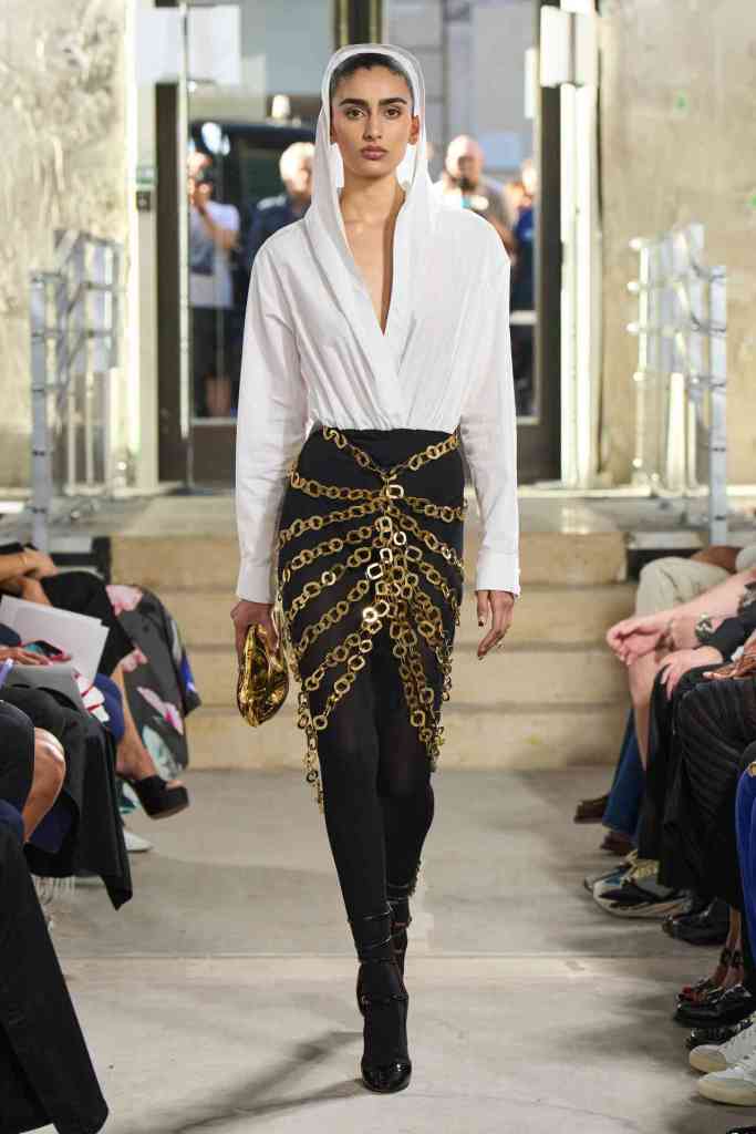 It’s all about simplicity and complexity at the same time. Rooted in the traditions of haute couture, Alaïa combines the meticulousness of tailoring with the freedom of fabric that moves with the body. The collection featured delicious draping, sheer fabrics and second akin silhouettes. Some standout items were impeccably crafted outerwear, pearl-loaded necks, tempting midriff cutouts and elegant mermaid skirts. From jersey to leather to sequins – every material was draped precisely. Mulier adds a timeless touch to every look, reminding us that Alaïa’s legacy is always thriving.